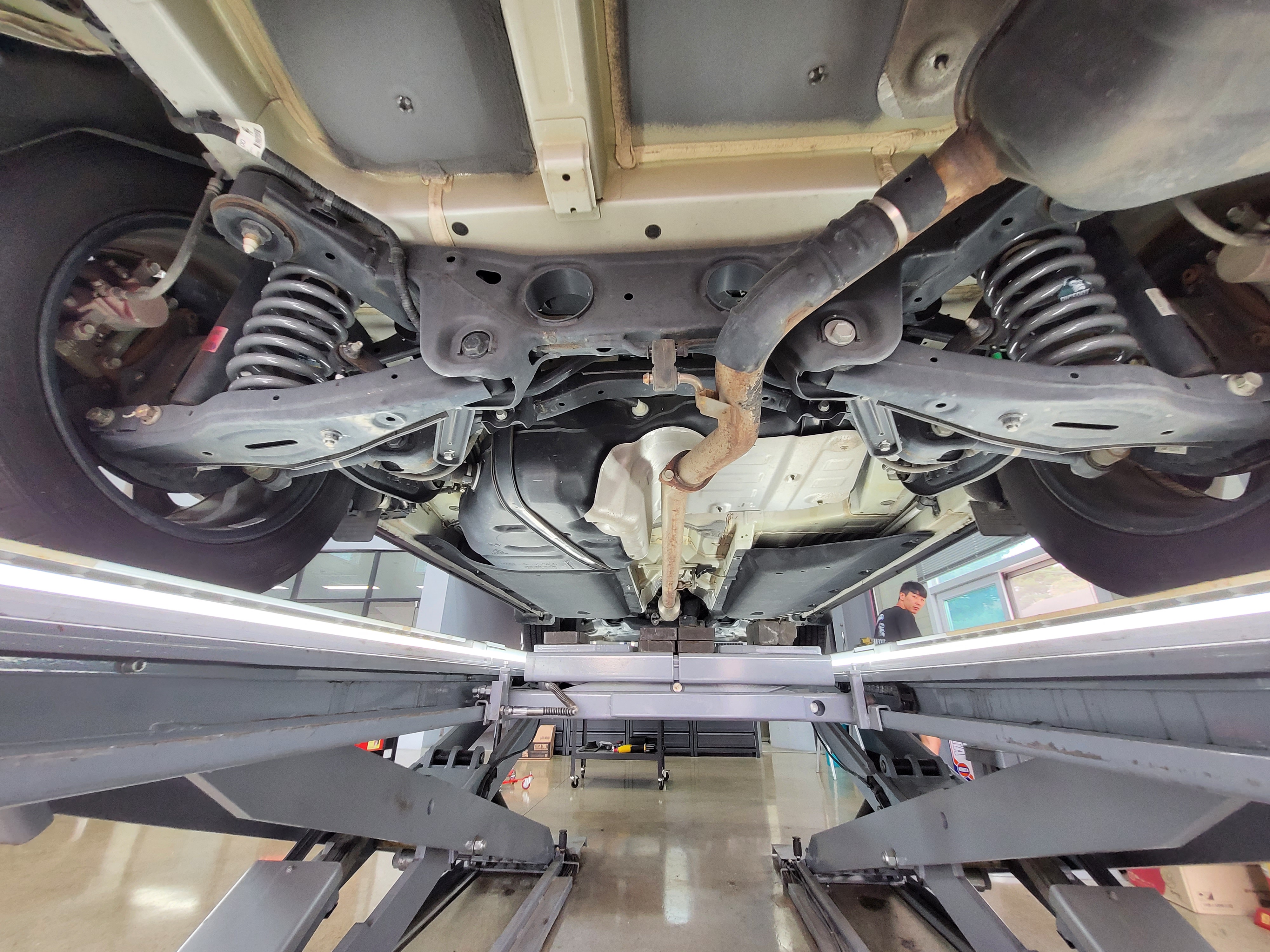 기아자동차 더뉴쏘렌토 차량의 후륜 멀티링크 서스펜션의 스프링을 탈거해 보겠습니다