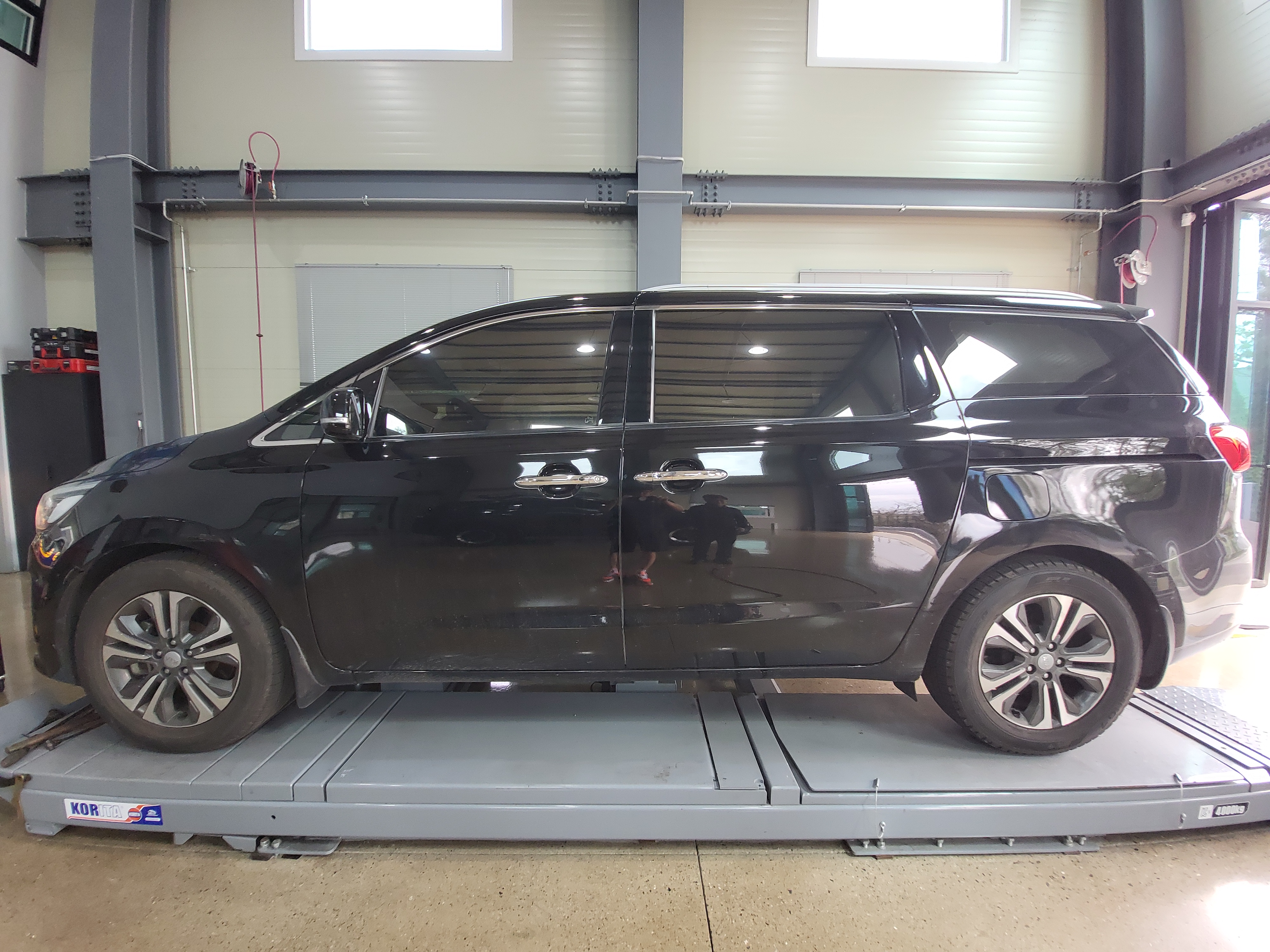 기아자동차 올뉴카니발 차량의 후륜 차고가 조금 낮긴 합니다만 많이 쳐지거나 하지는 않습니다