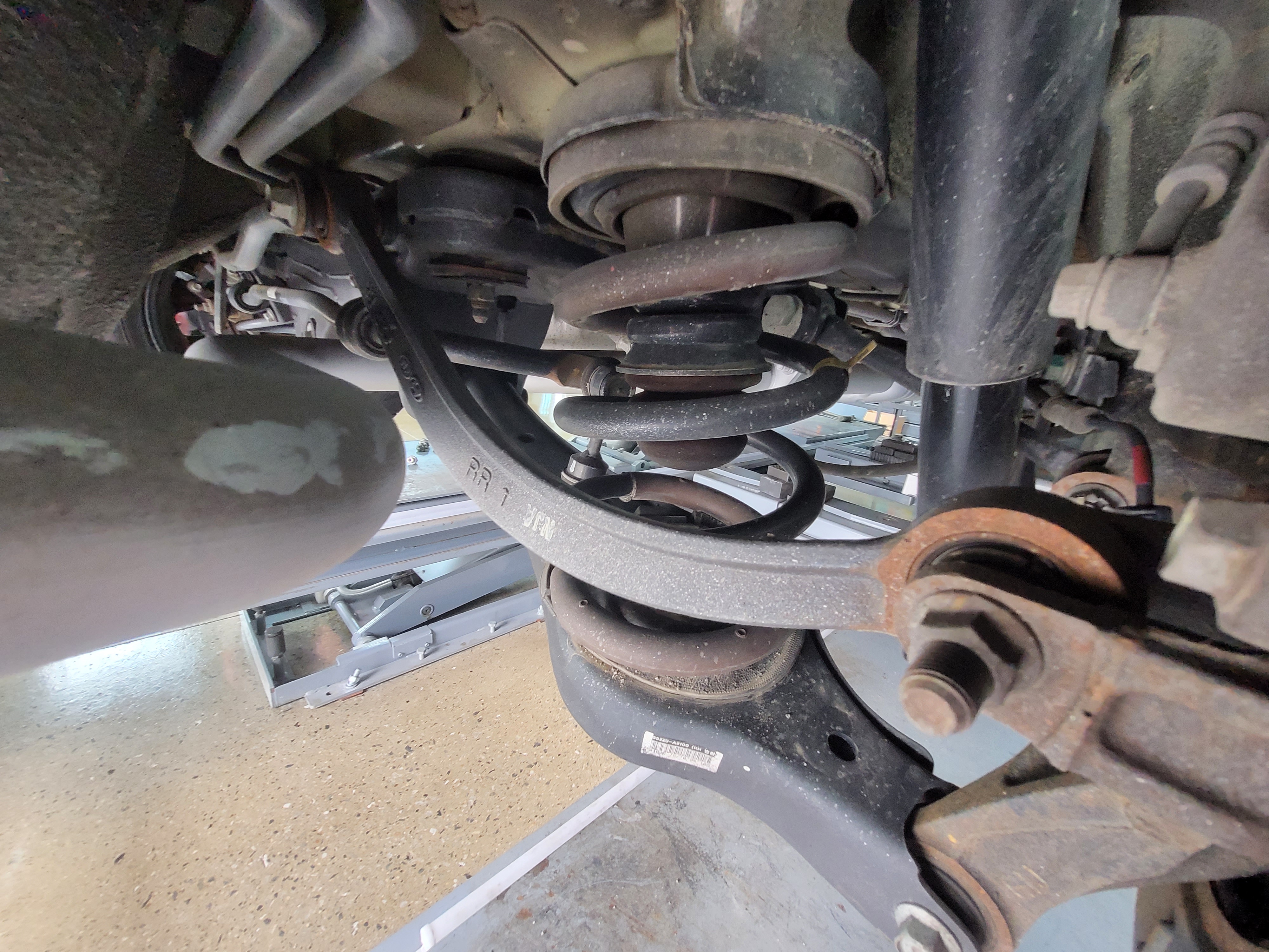 기아자동차 올뉴카니발 차량의 우측 리어 스프링의 하단 고무가 삐져나오면서 찢어집니다