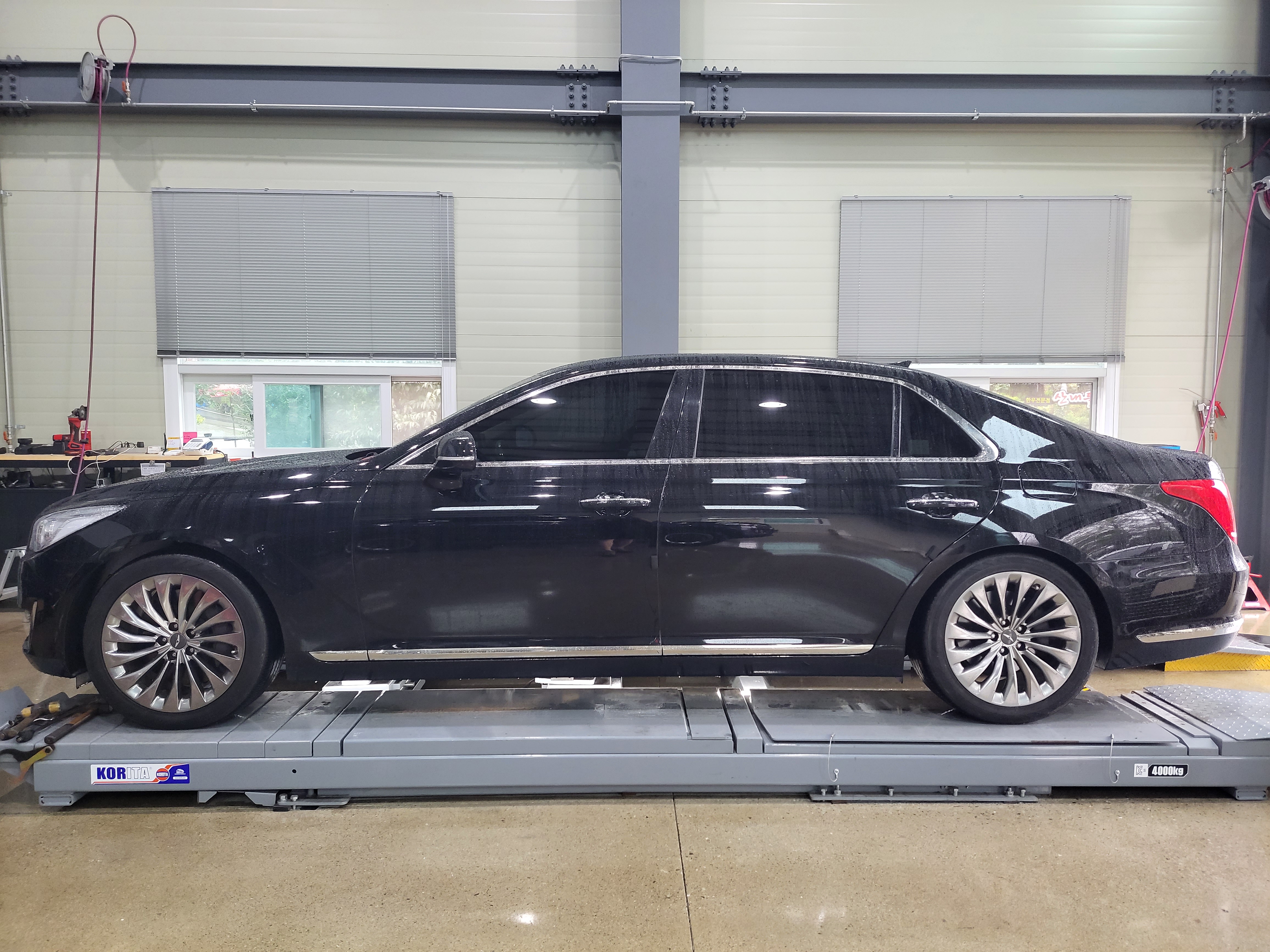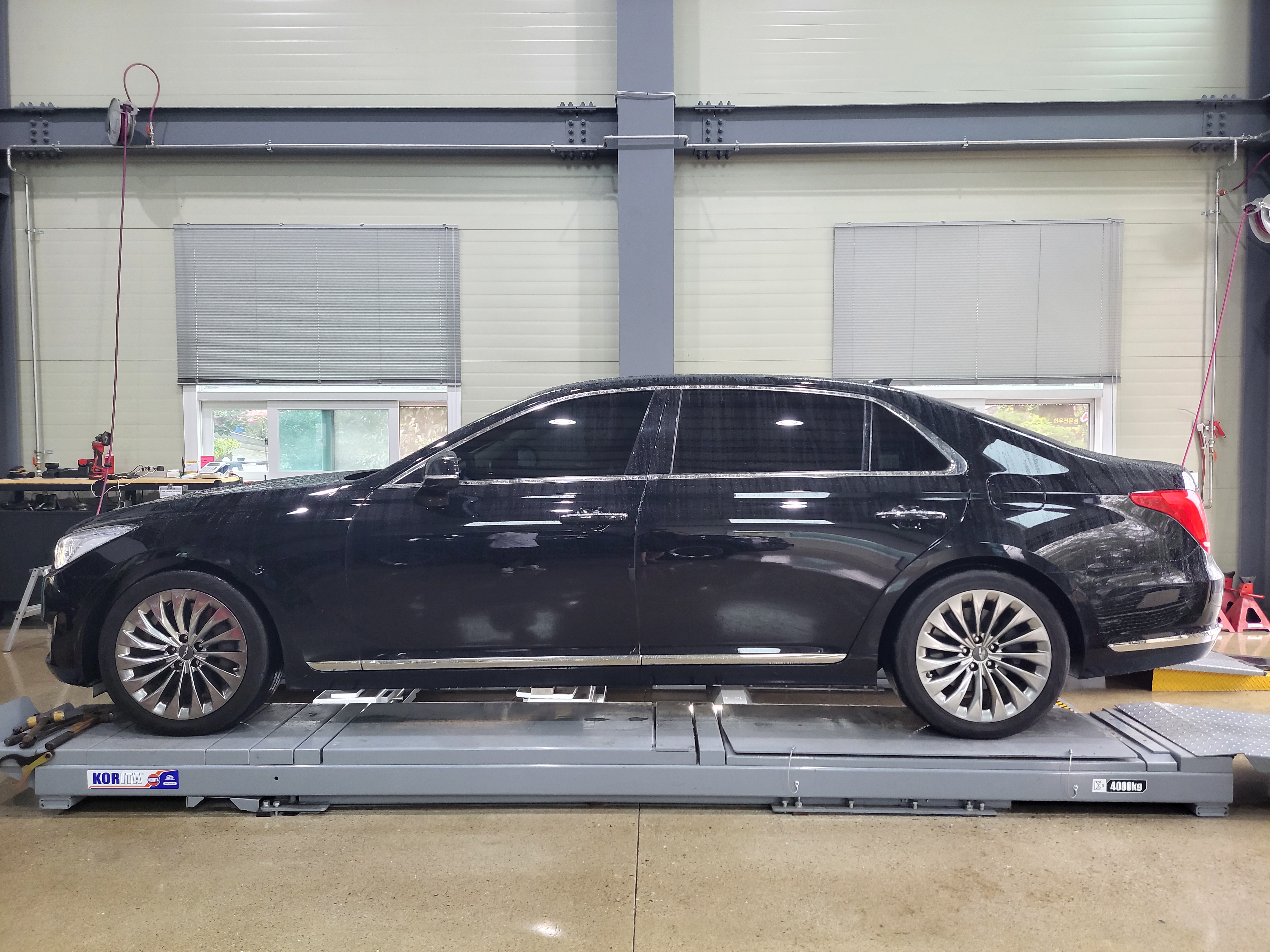 현대자동차 제네시스 EQ900 차량의 앞뒤 차고 밸런스가 이제야 좋아졌습니다