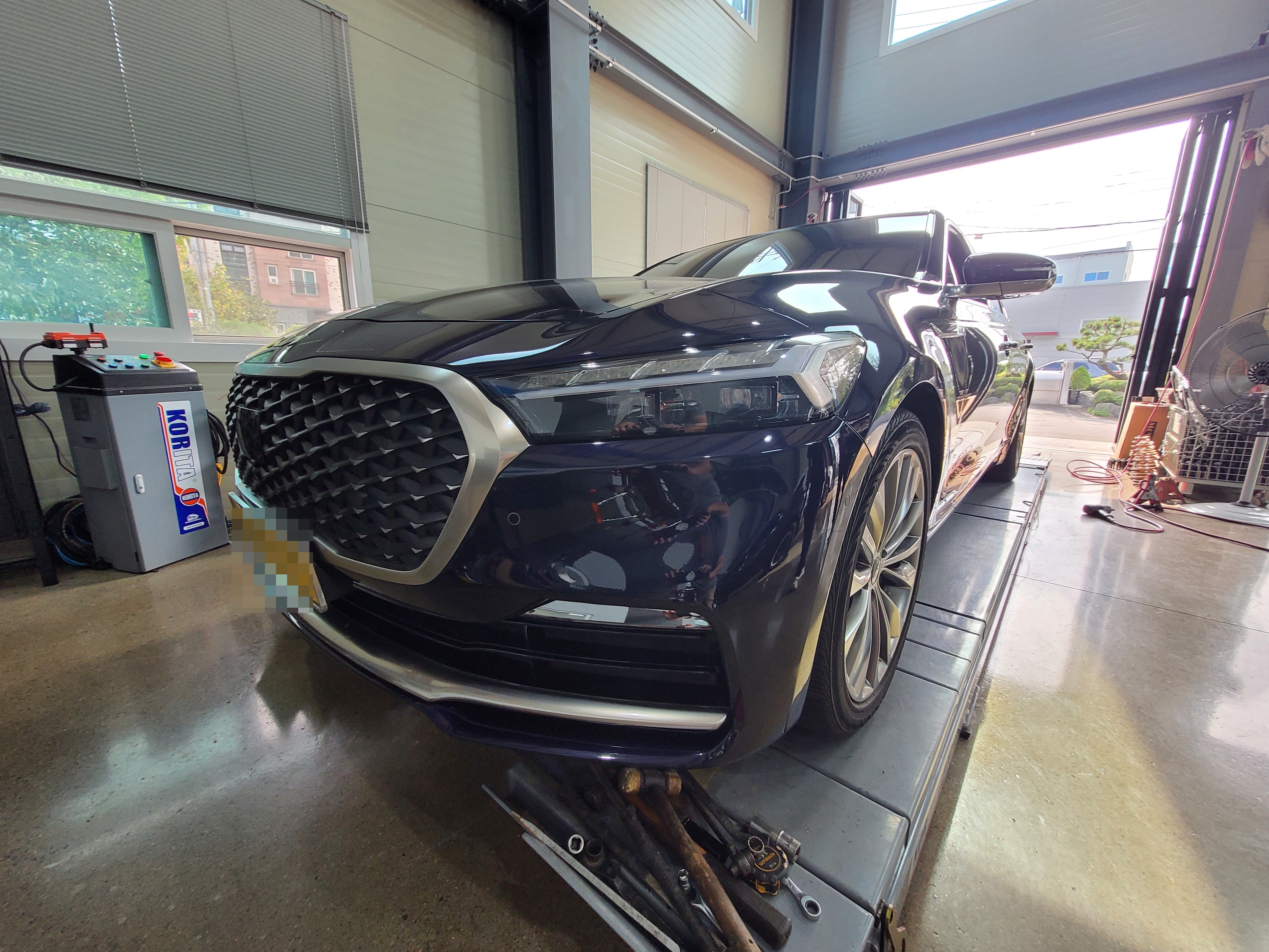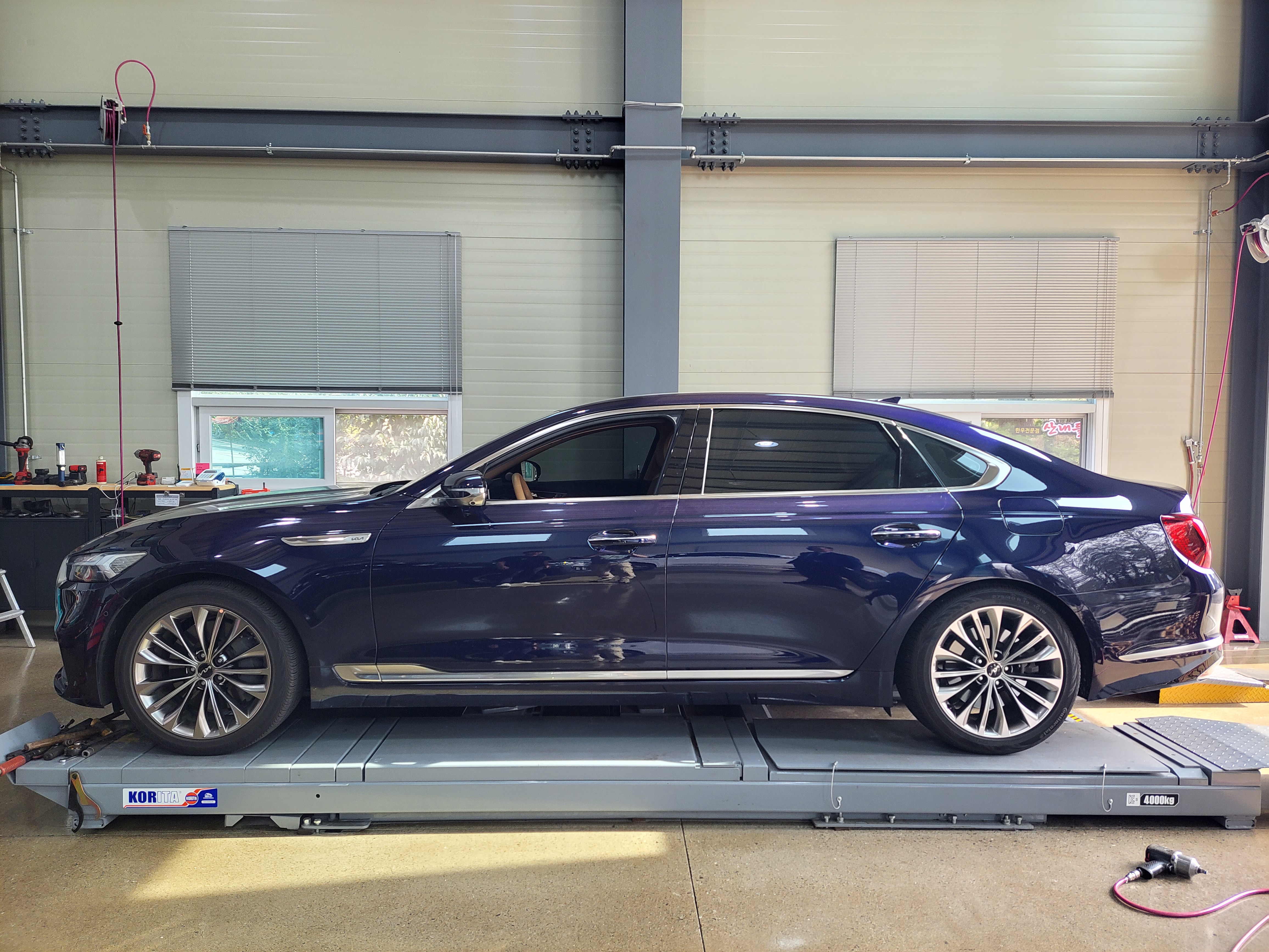 기아자동차 더뉴K9 고급택시 딥크로마블루 색상 차량 빅풋스프링 후륜 차고