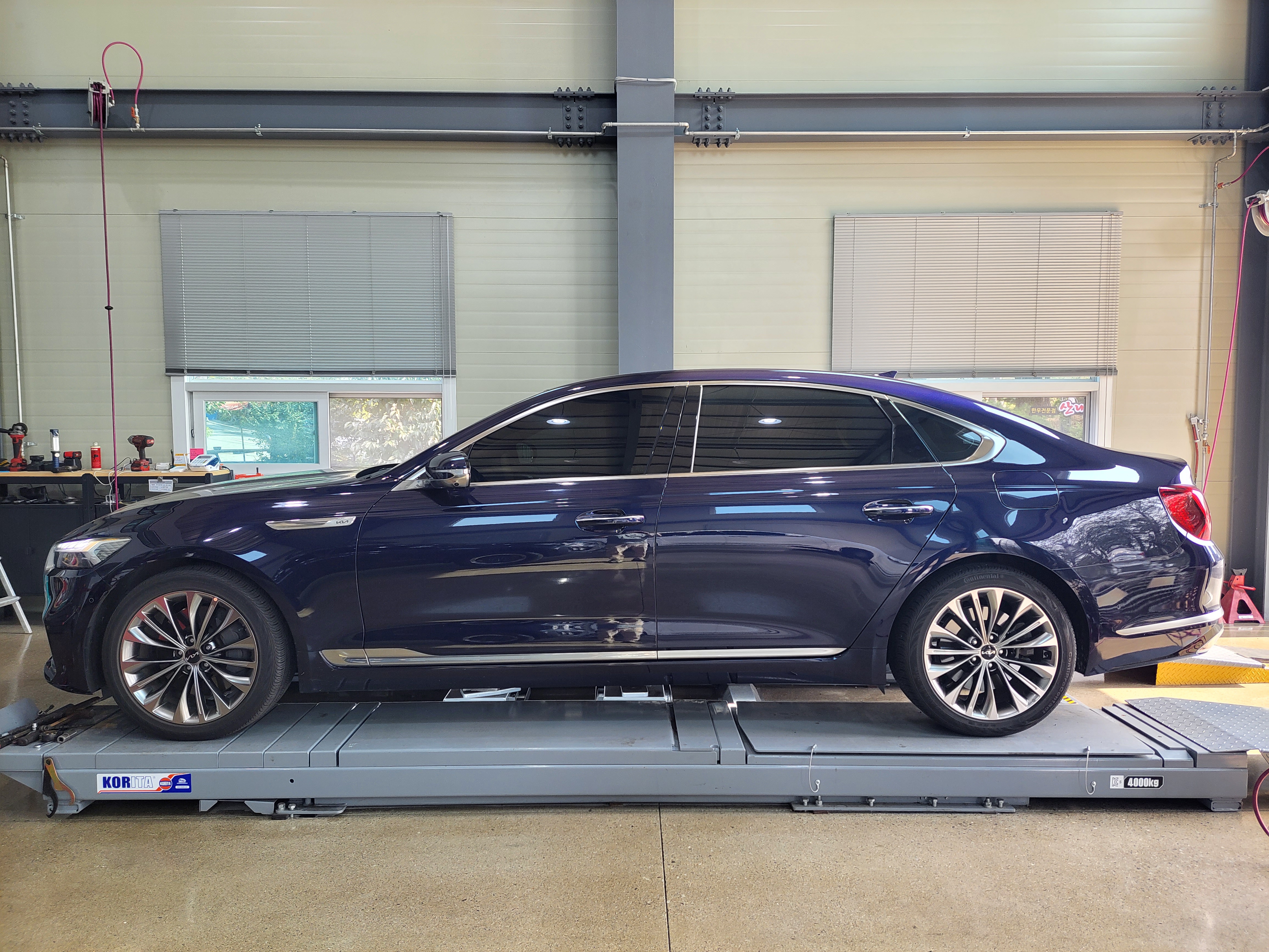 기아자동차 더뉴K9 고급택시 딥크로마블루 색상 차량 순정 전륜 차고 720mm