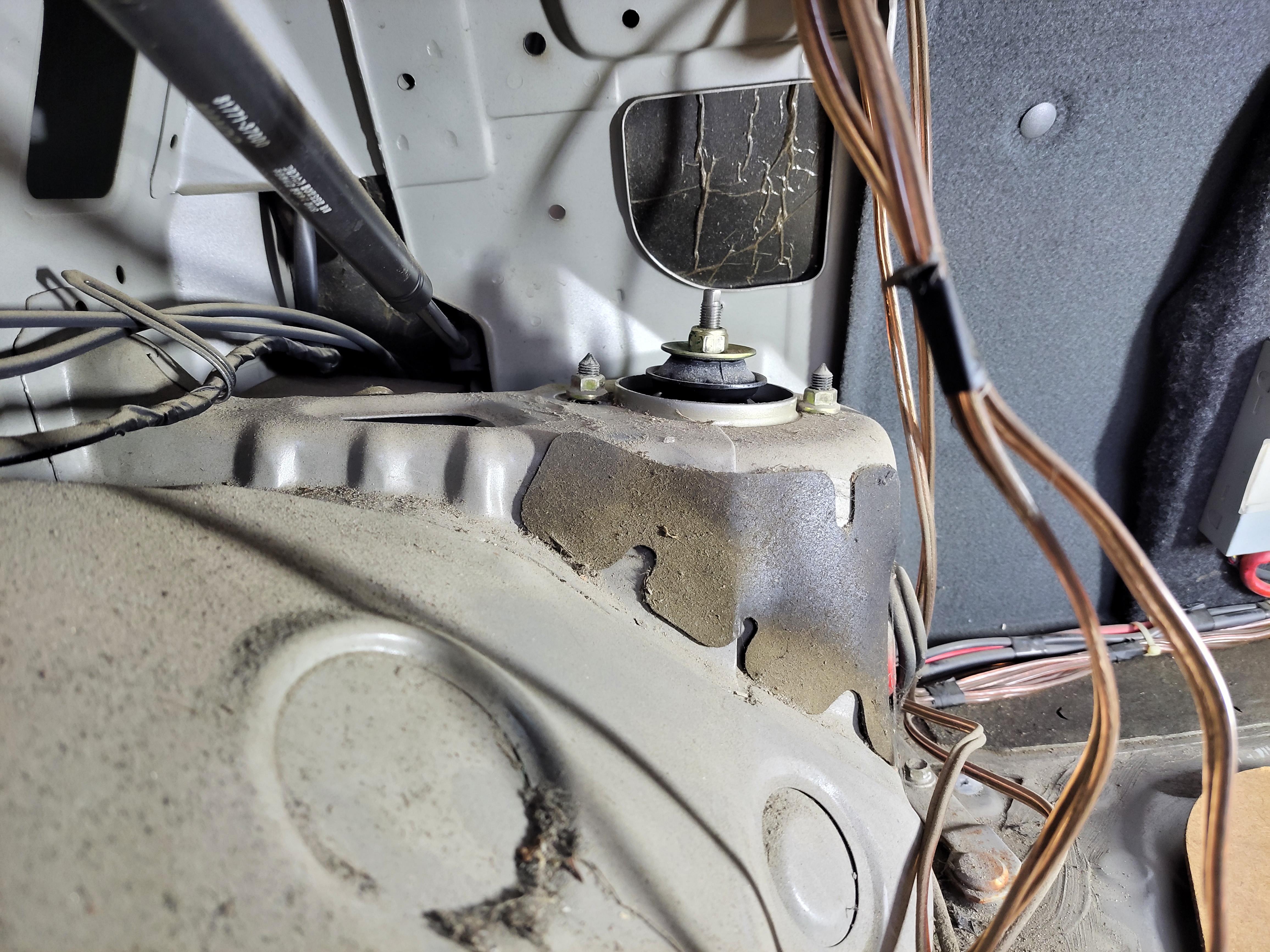 이렇게 트렁크 내장제를 탈거하면 후륜 쇼바마운트 볼트너트가 나옵니다