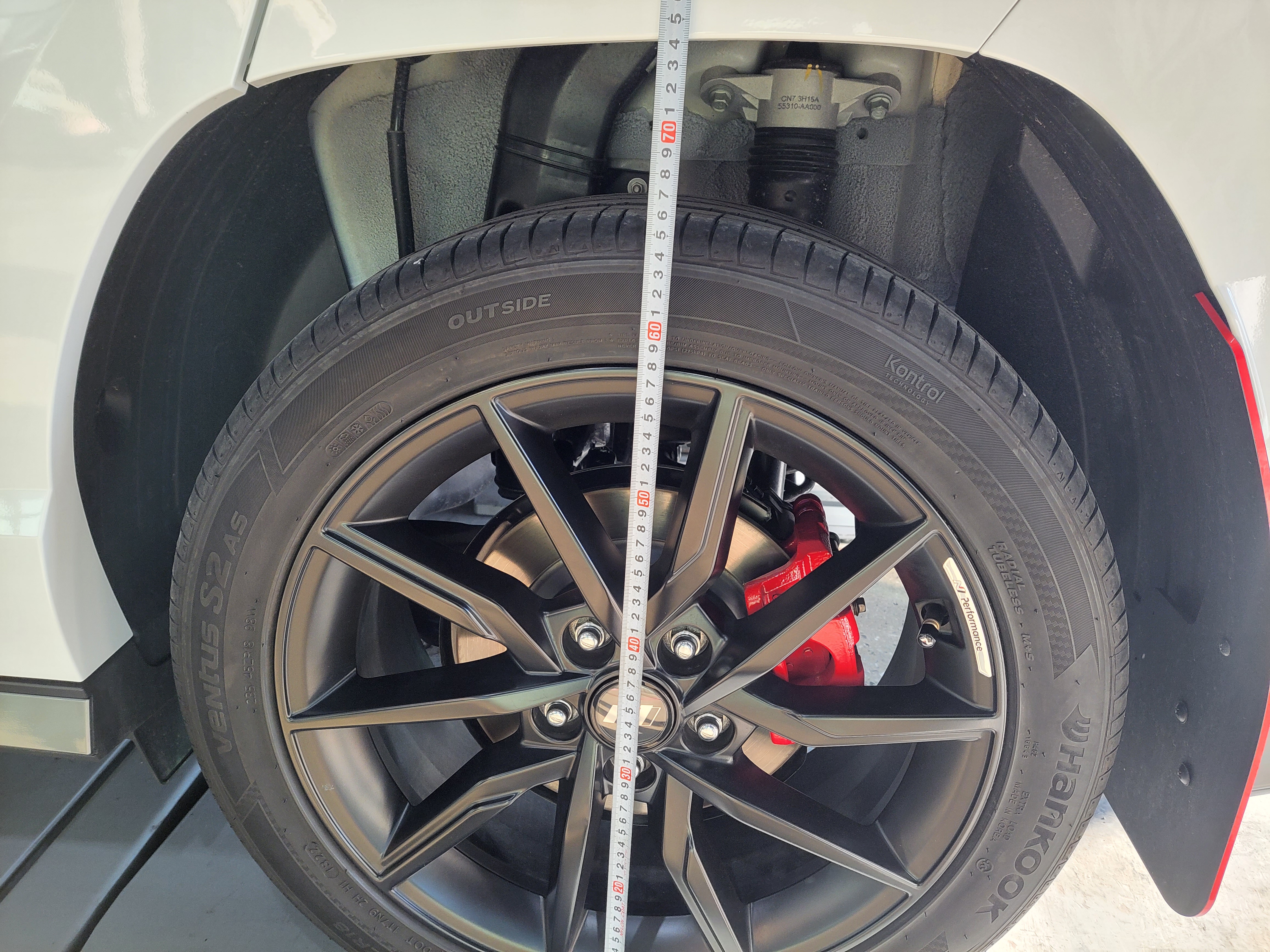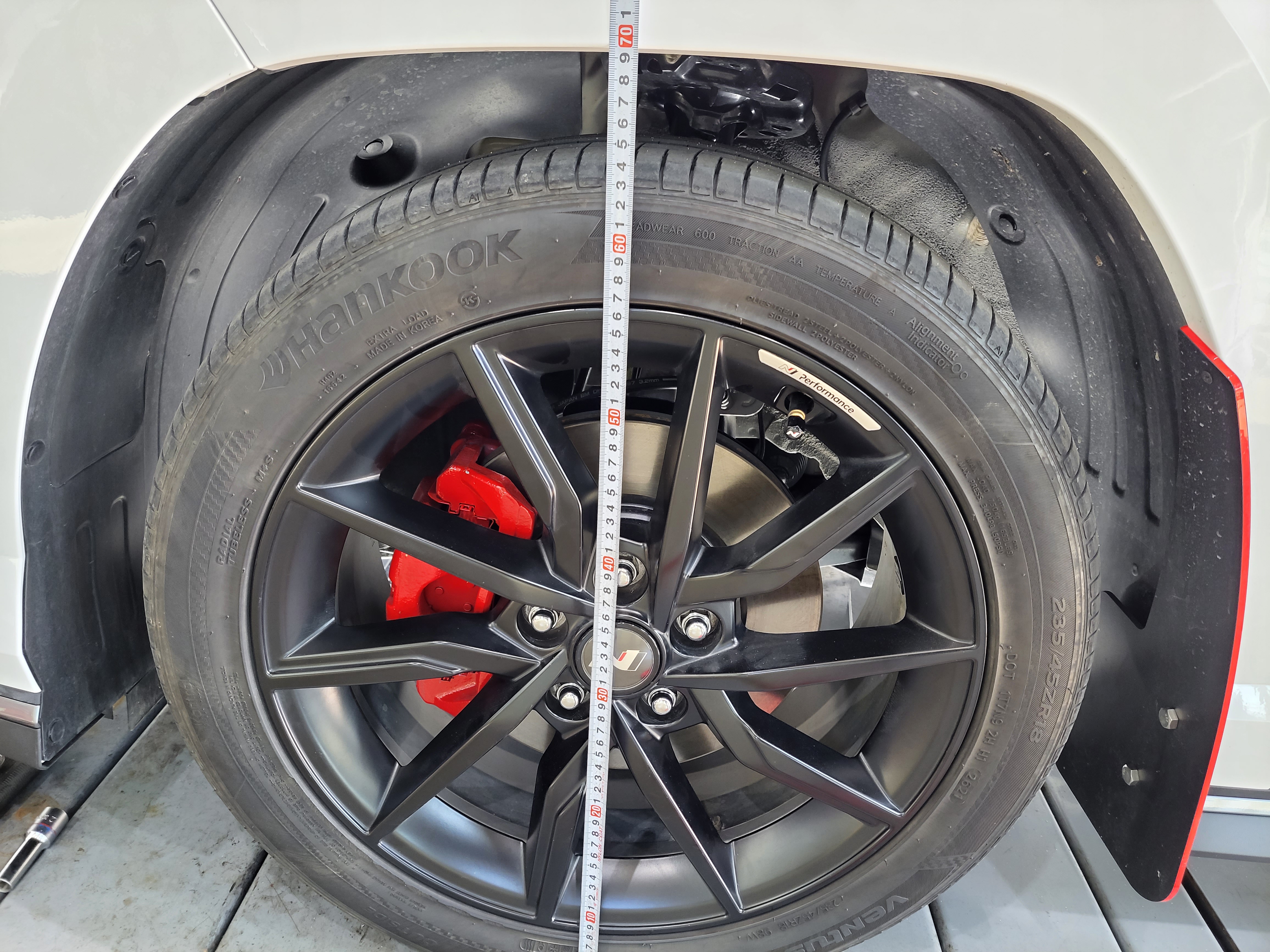 한눈에 알아보기 쉽습니다 전체 직경이 순정타이어 직경에 비해 25mm가량 현재 장착되어