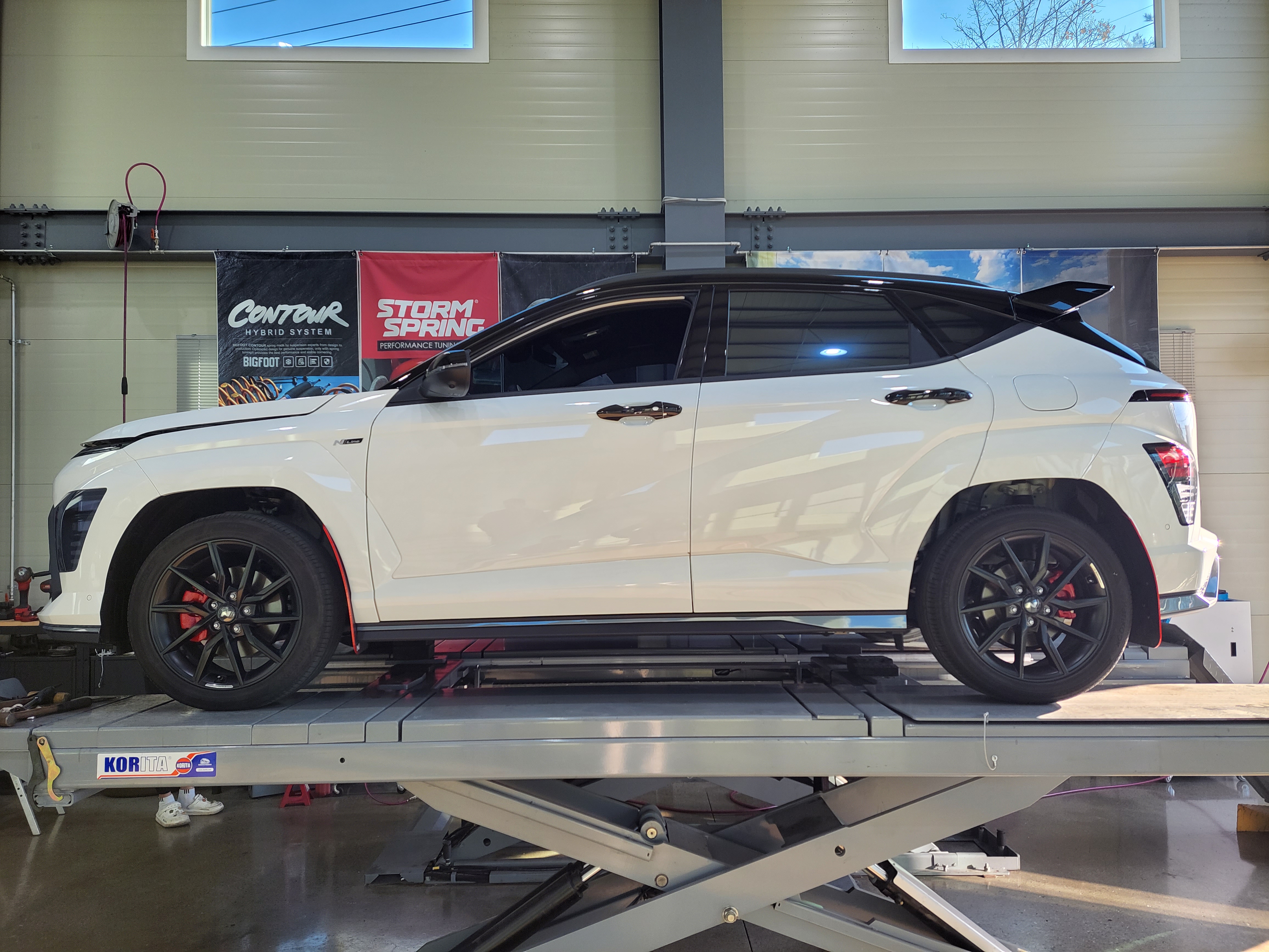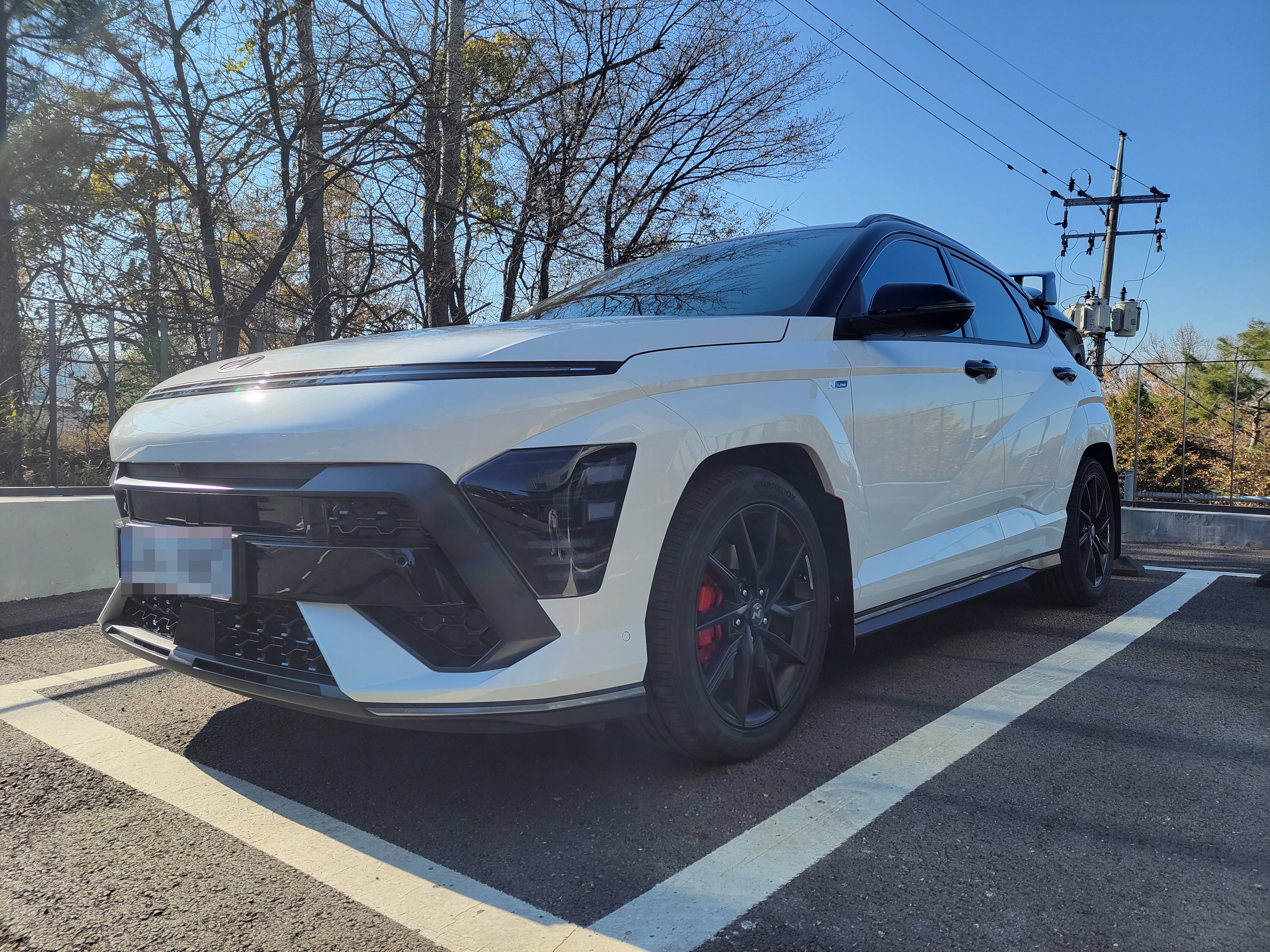 현대자동차 코나 하이브리드 NLINE 차량의 차고 다운으로 차량이 좀 더 스포티해 보입니다