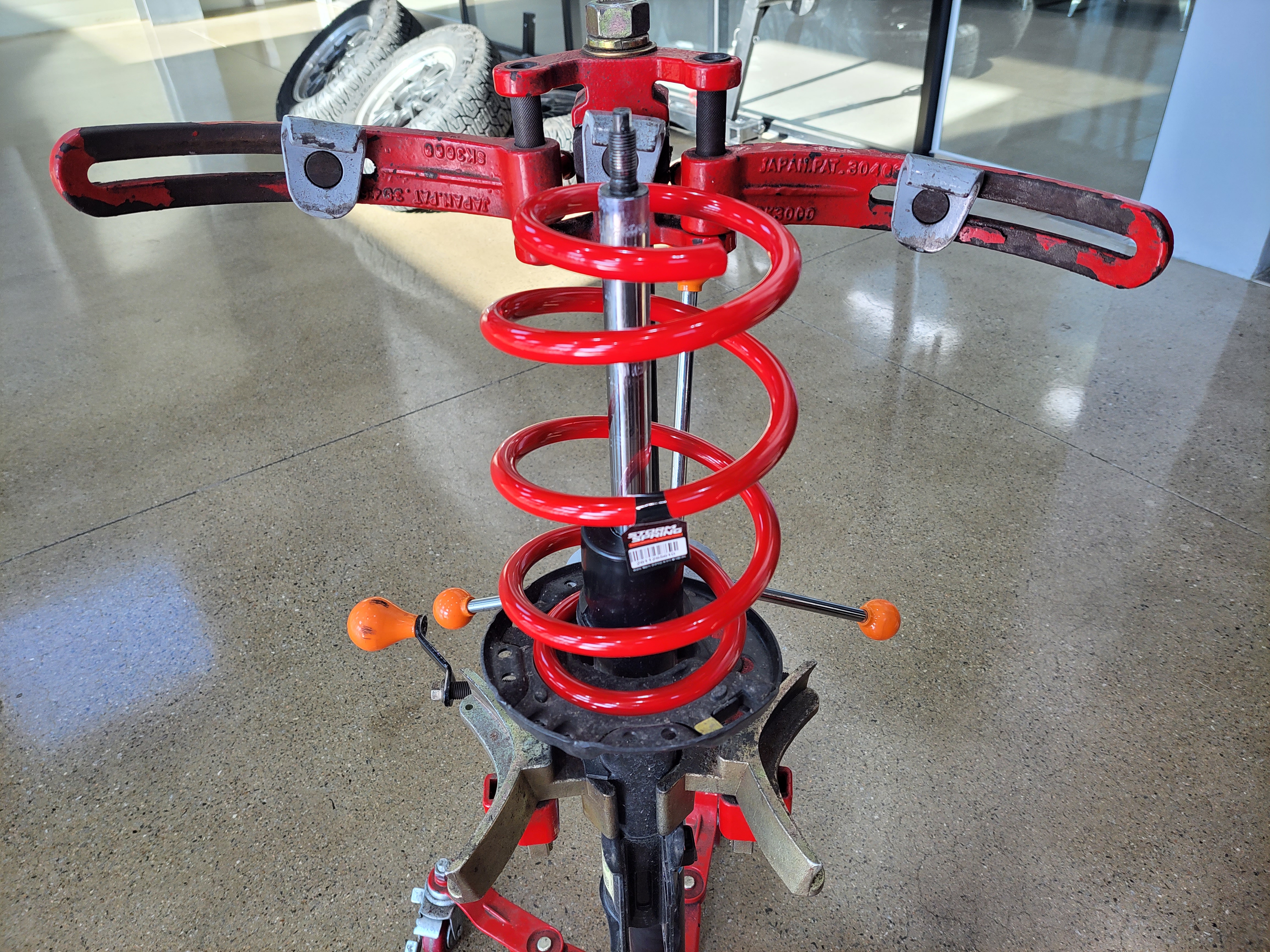 스톰스프링 장착을 위해 전륜 쇼바 스프링을 탈거하고 있습니다
