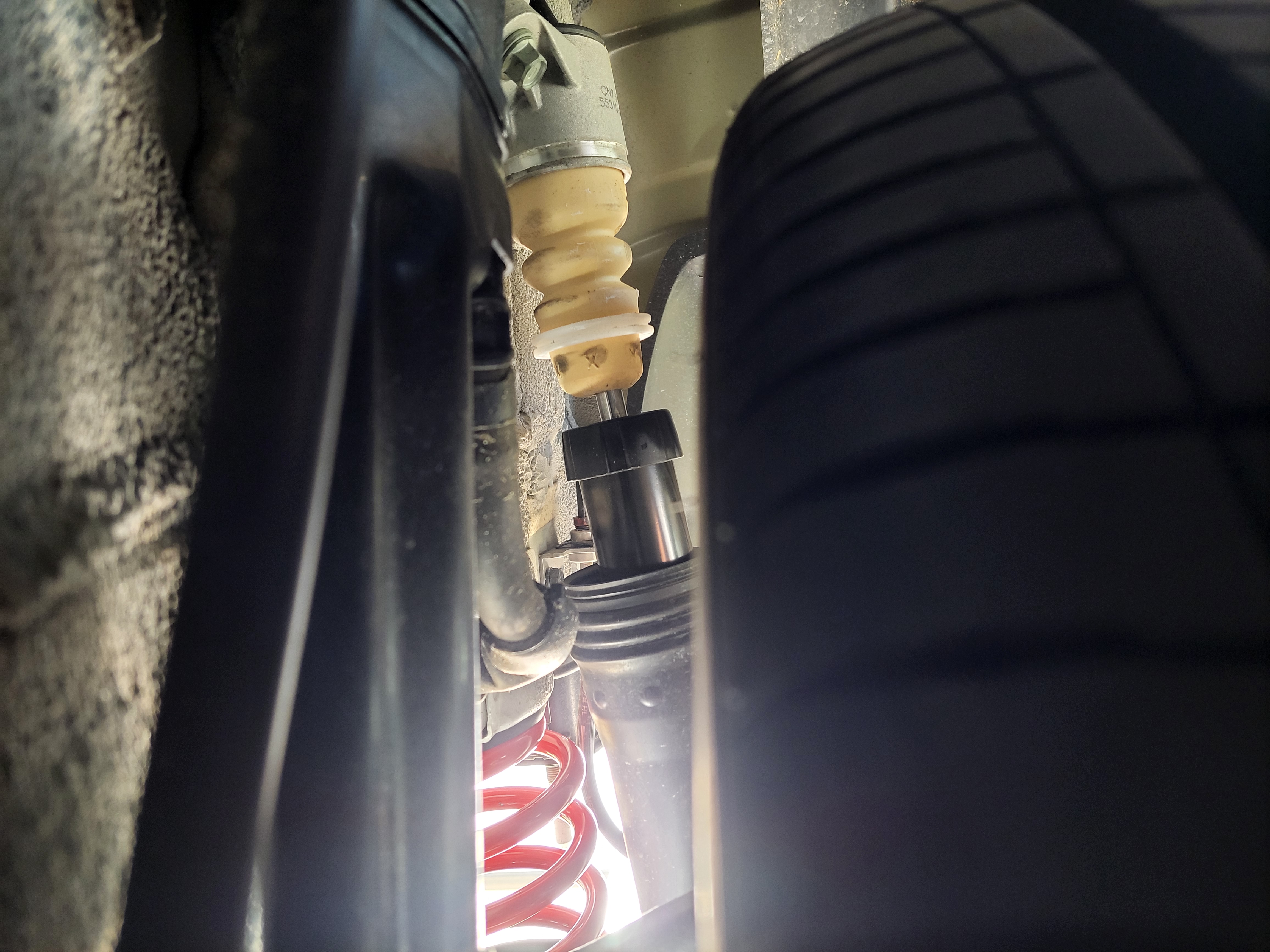 오른쪽 사진은 다운량에 맞게 범프스토퍼를 가공하여 쇼바의 스트로크를 확보했습니다
