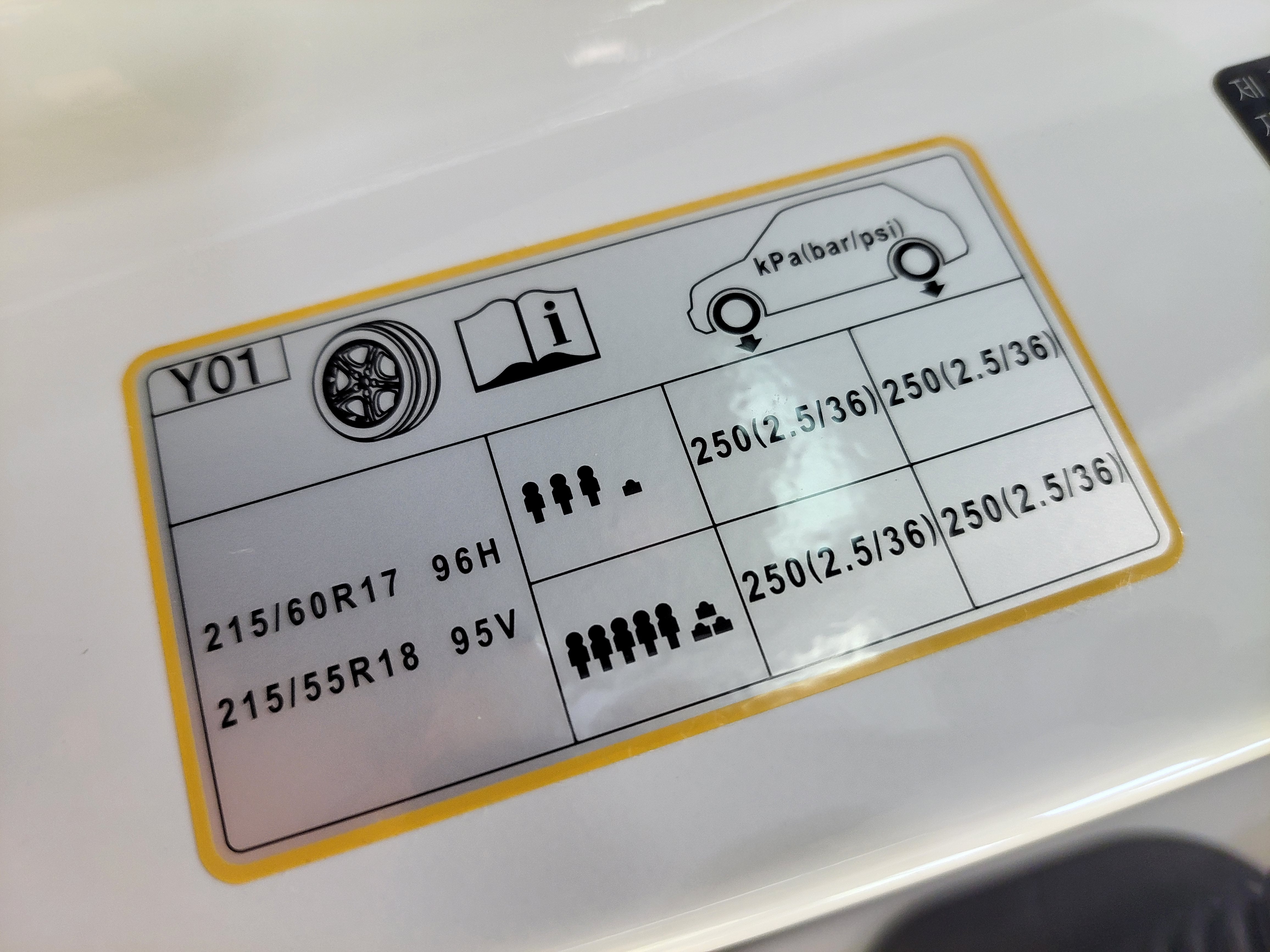현대자동차 코나 하이브리드 NLINE의 순정 휠타이어 제원은 215 55 18 사이즈입니다