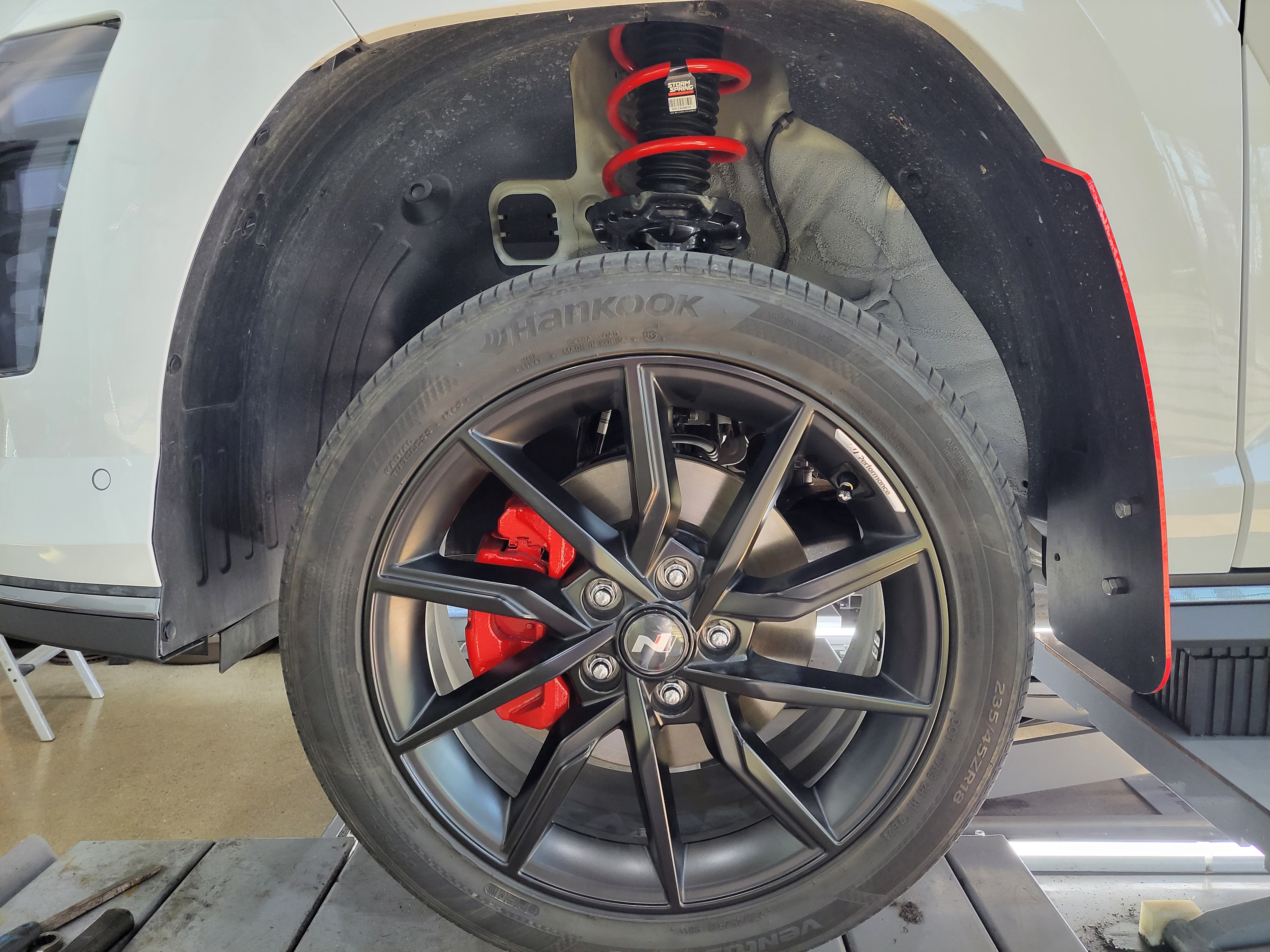 현대자동차 코나 하이브리드 NLINE 차량의 타이어와 펜더 간격이 다른 코나차량들보다