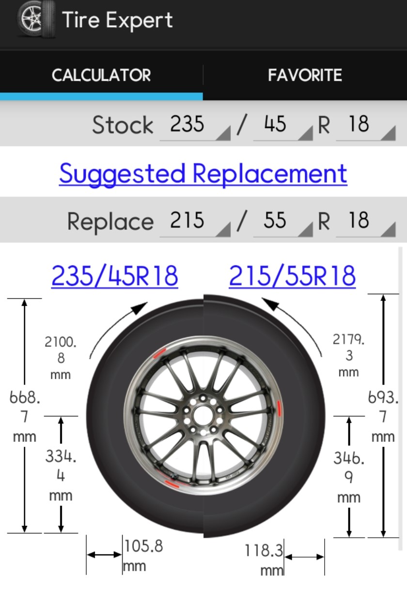 타이어 사이즈를 비교해 볼 수 있는 어플이 있습니다