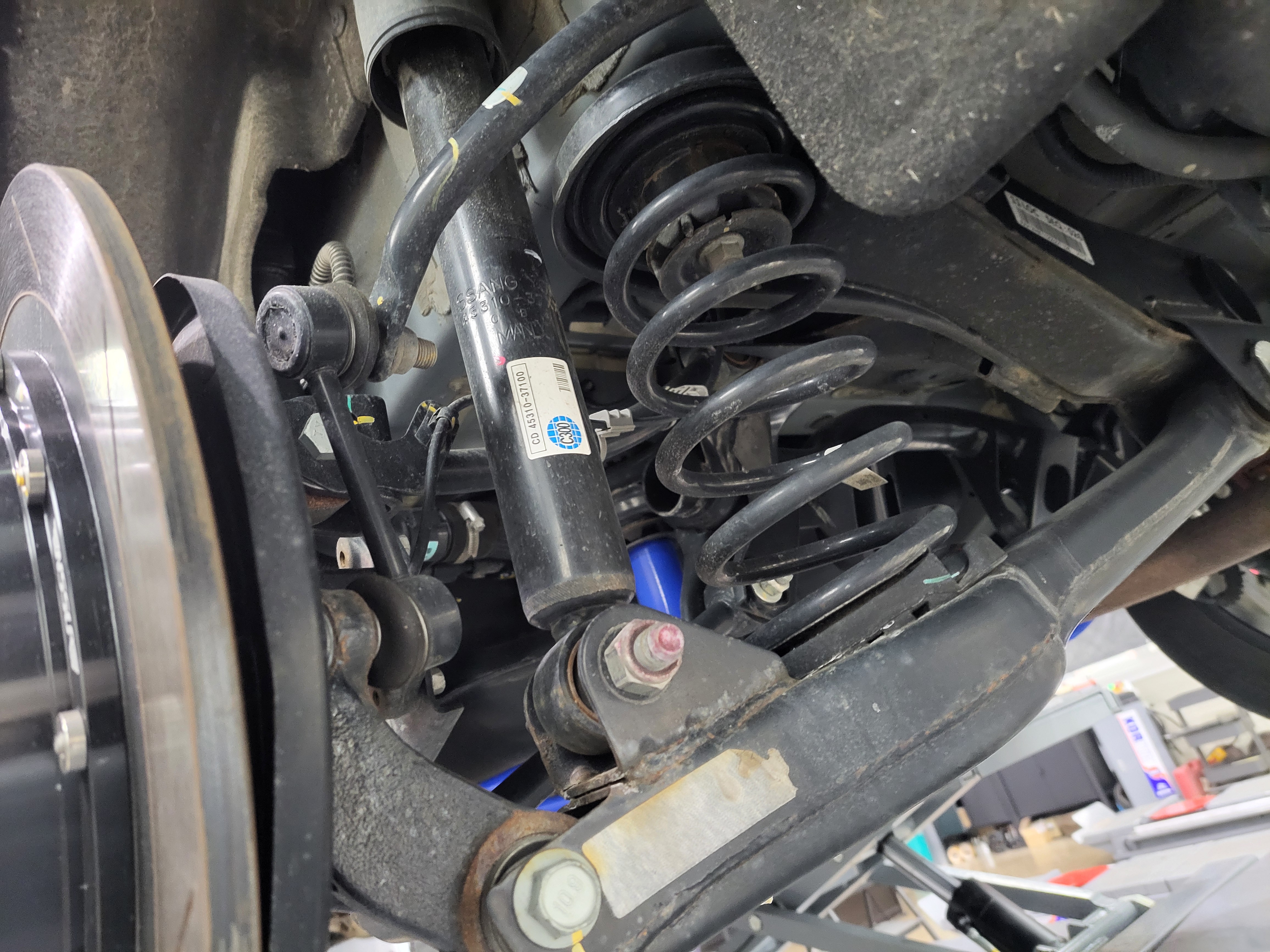 쌍용 KG모빌리티 뷰티풀코란도 차량의 리어 쇼바 너클에 고정을 하였습니다