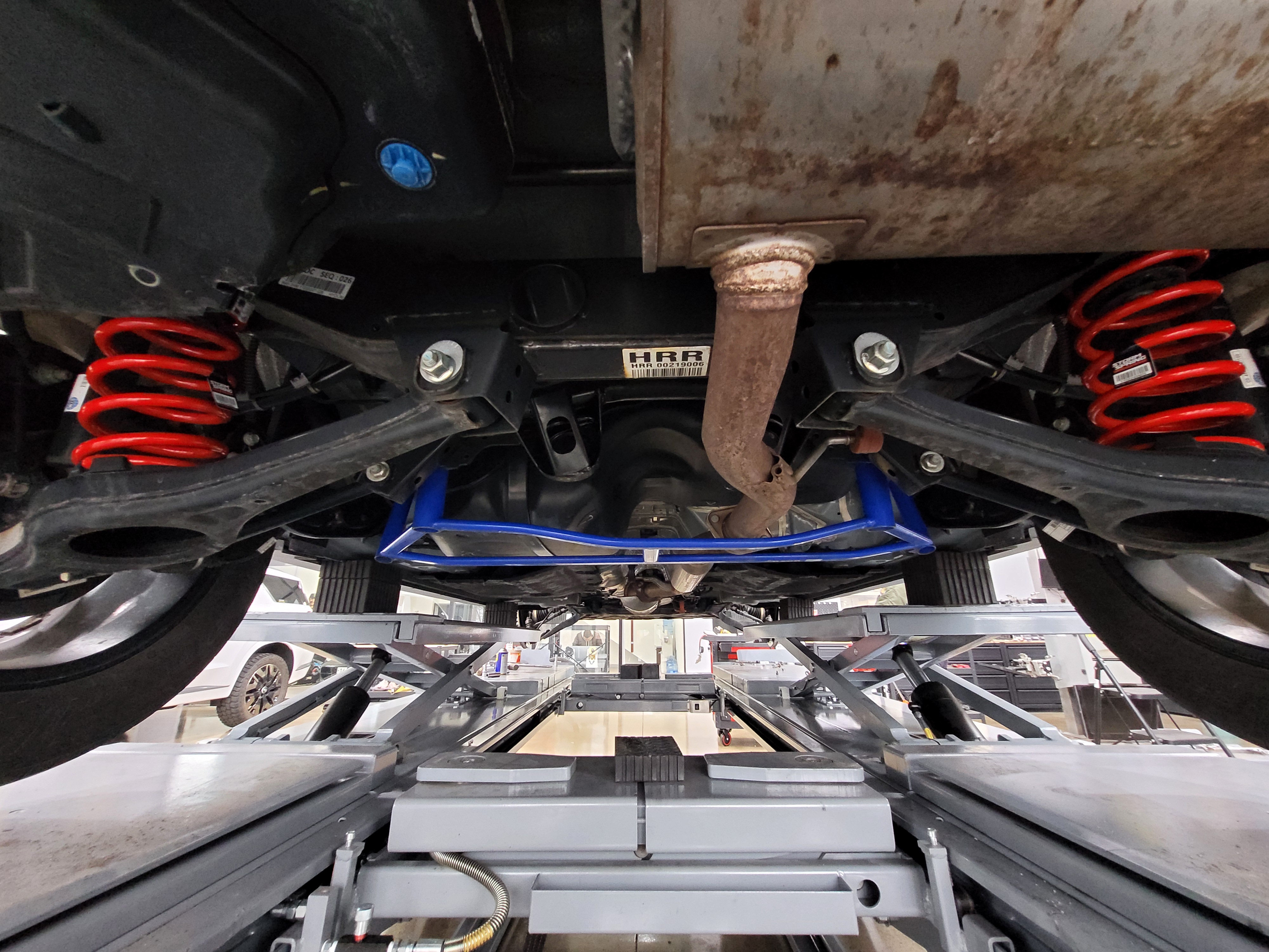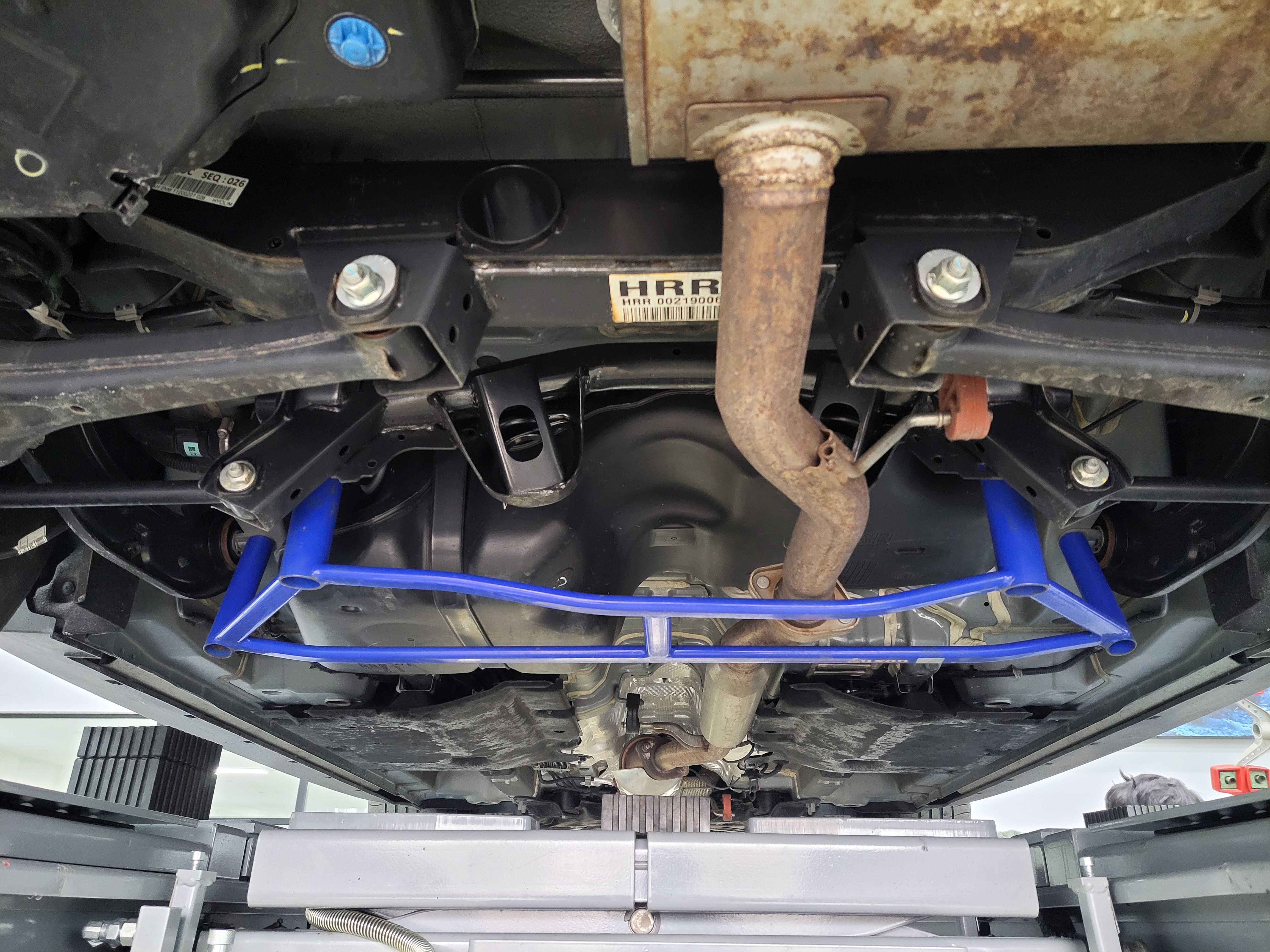 전륜에는 스트럿바가 장착이 되어있었고 후륜 쪽은 언더바가 장착이 되어있었습니다