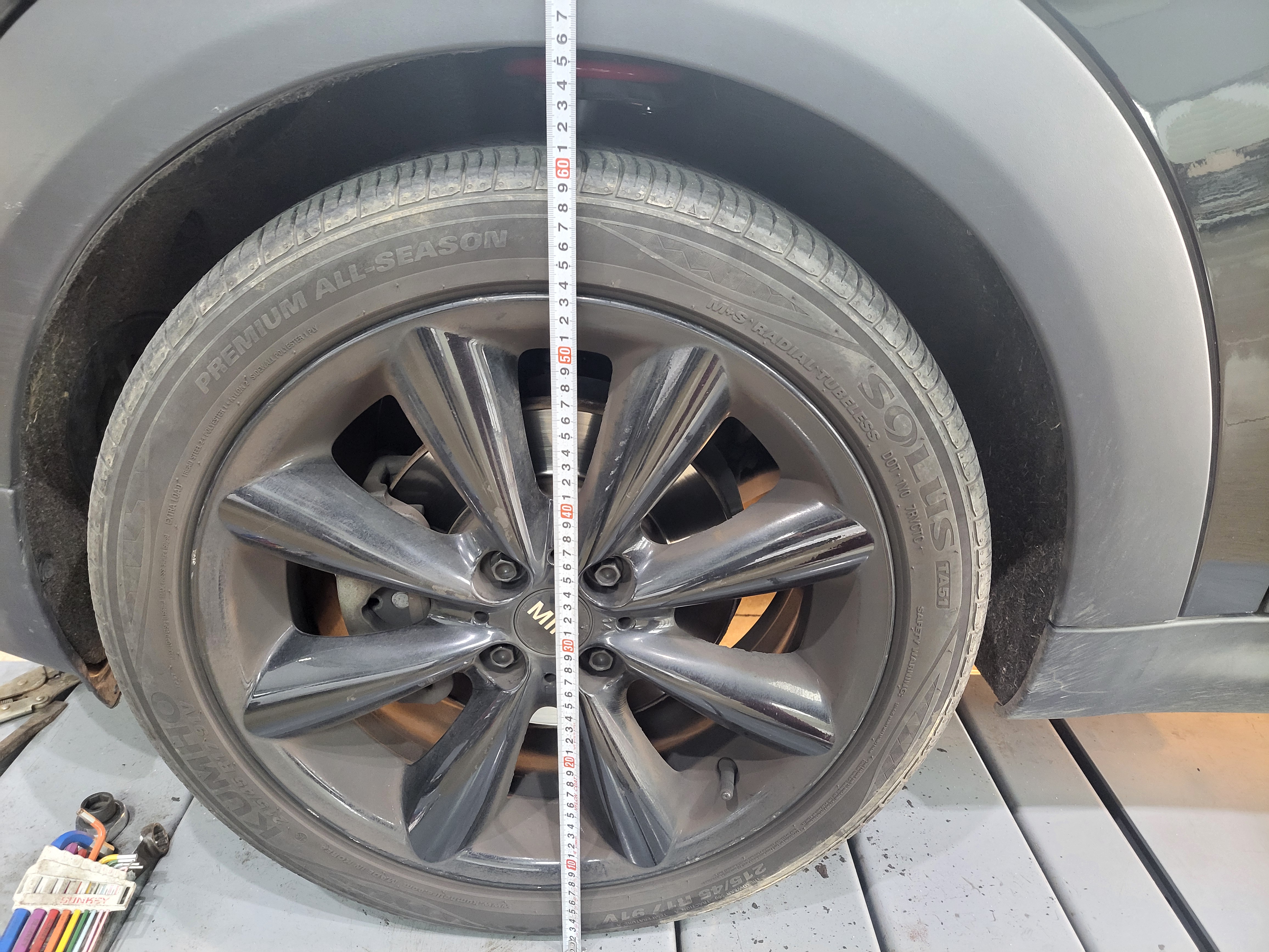 미니쿠퍼 로드스터 차량 입고당시 전륜 차고 610mm입니다