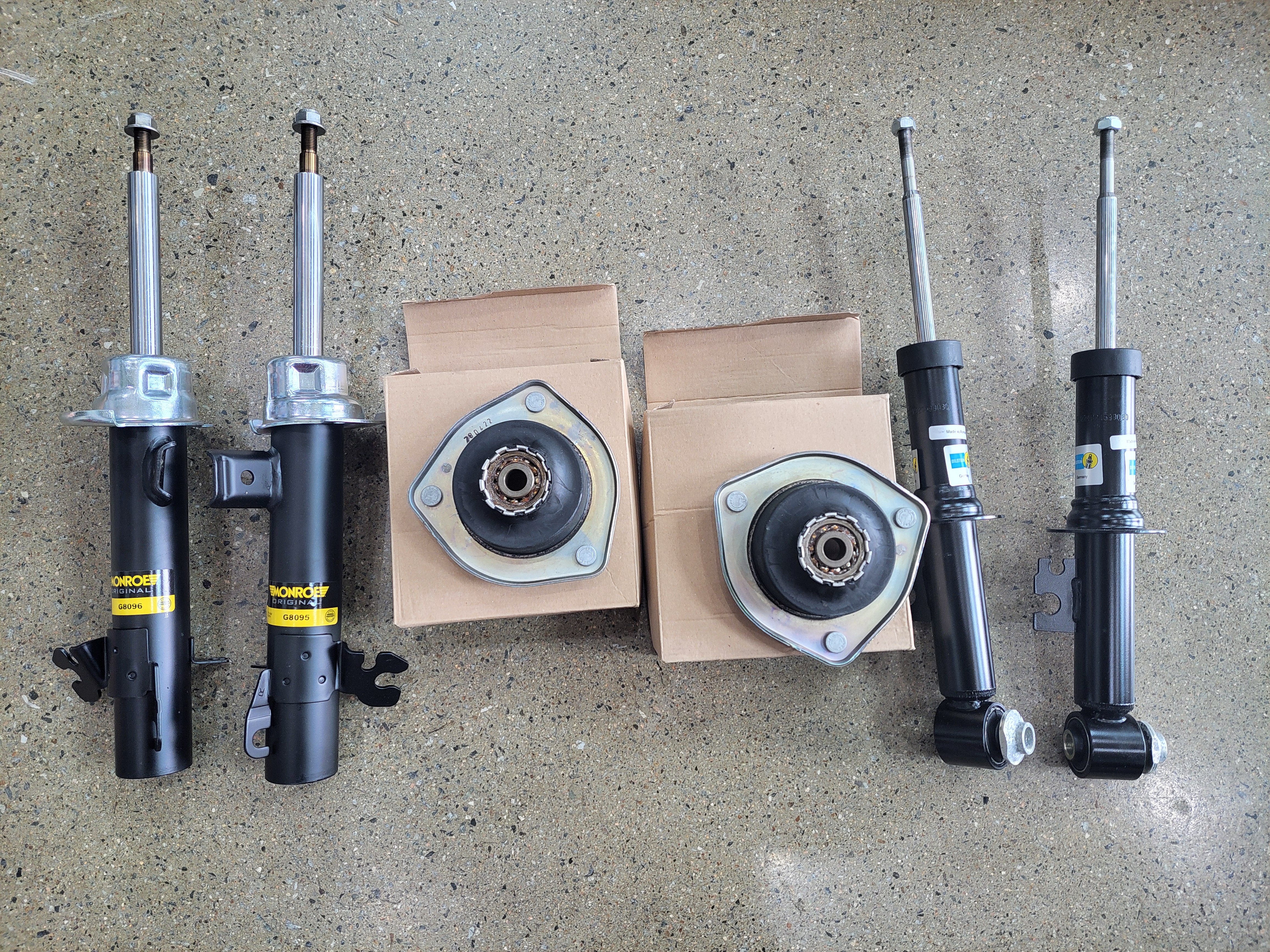 오셨습니다 전륜쇼바는 먼로라는 제품이고 후륜 쇼바는 빌스테인제품입니다
