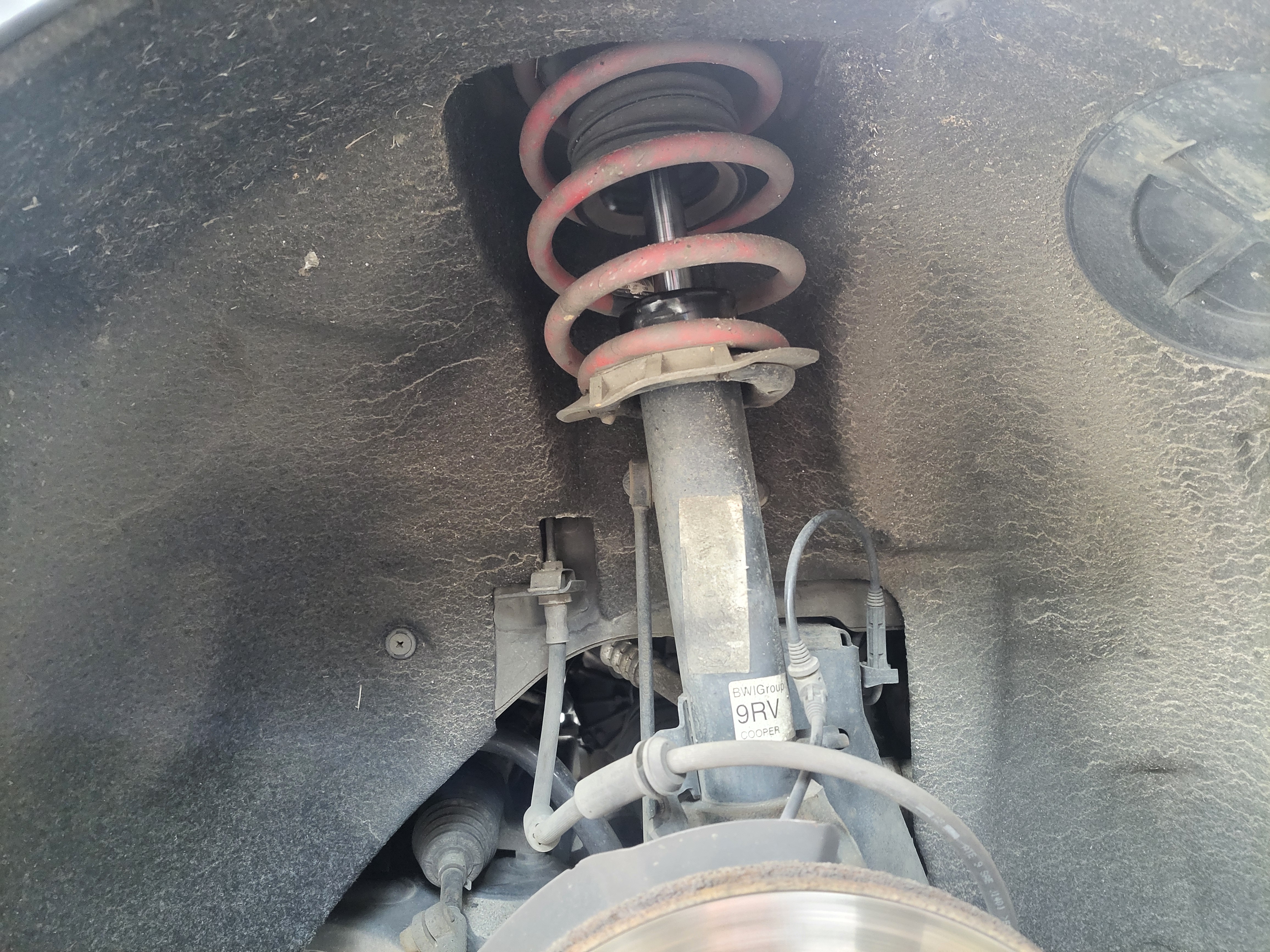 미니쿠퍼 로드스터 차량의 후륜 쇼바스프링입니다