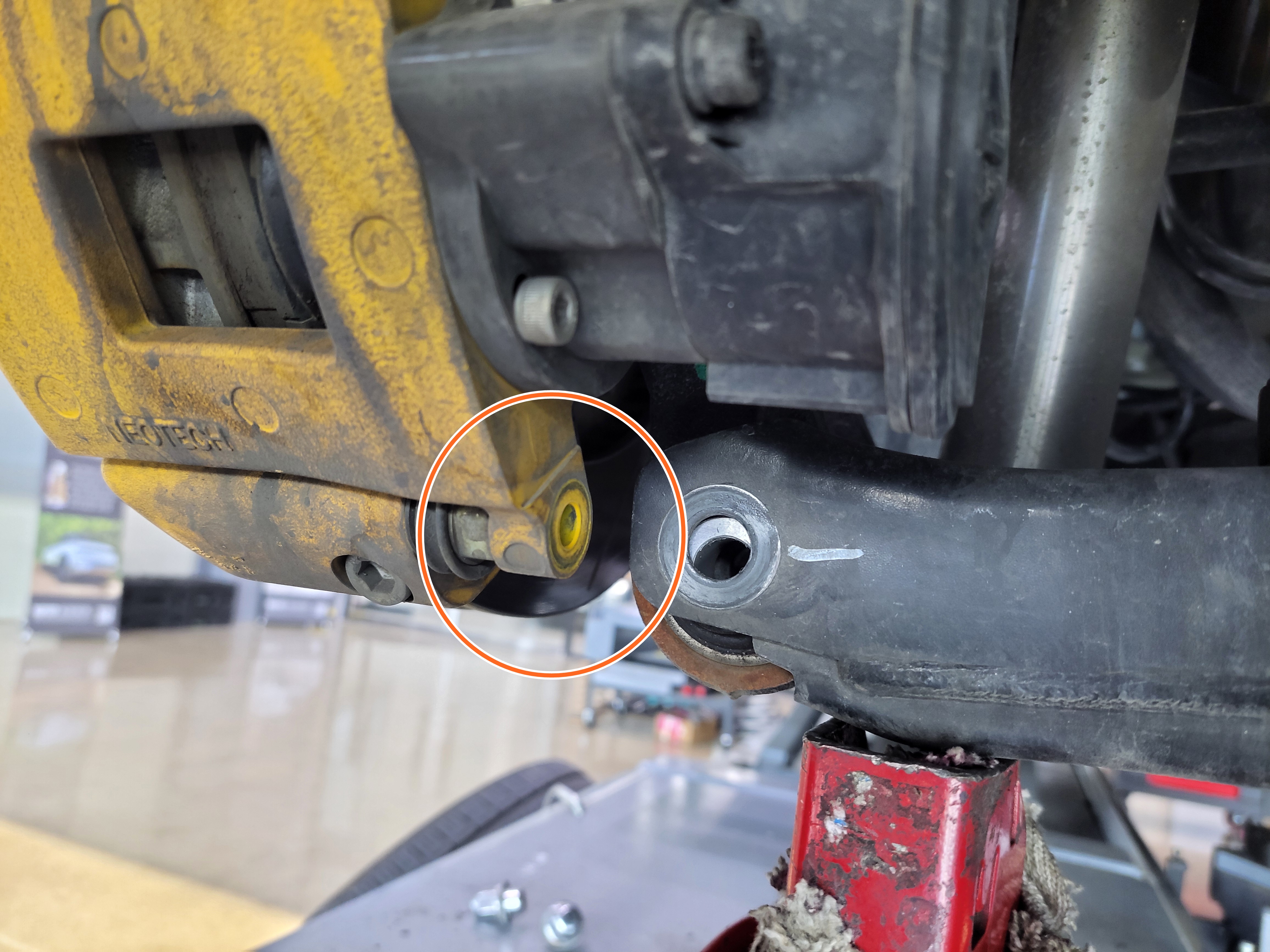 캘리퍼 볼트를 먼저 탈거하고 로우암볼트를 탈거했습니다
