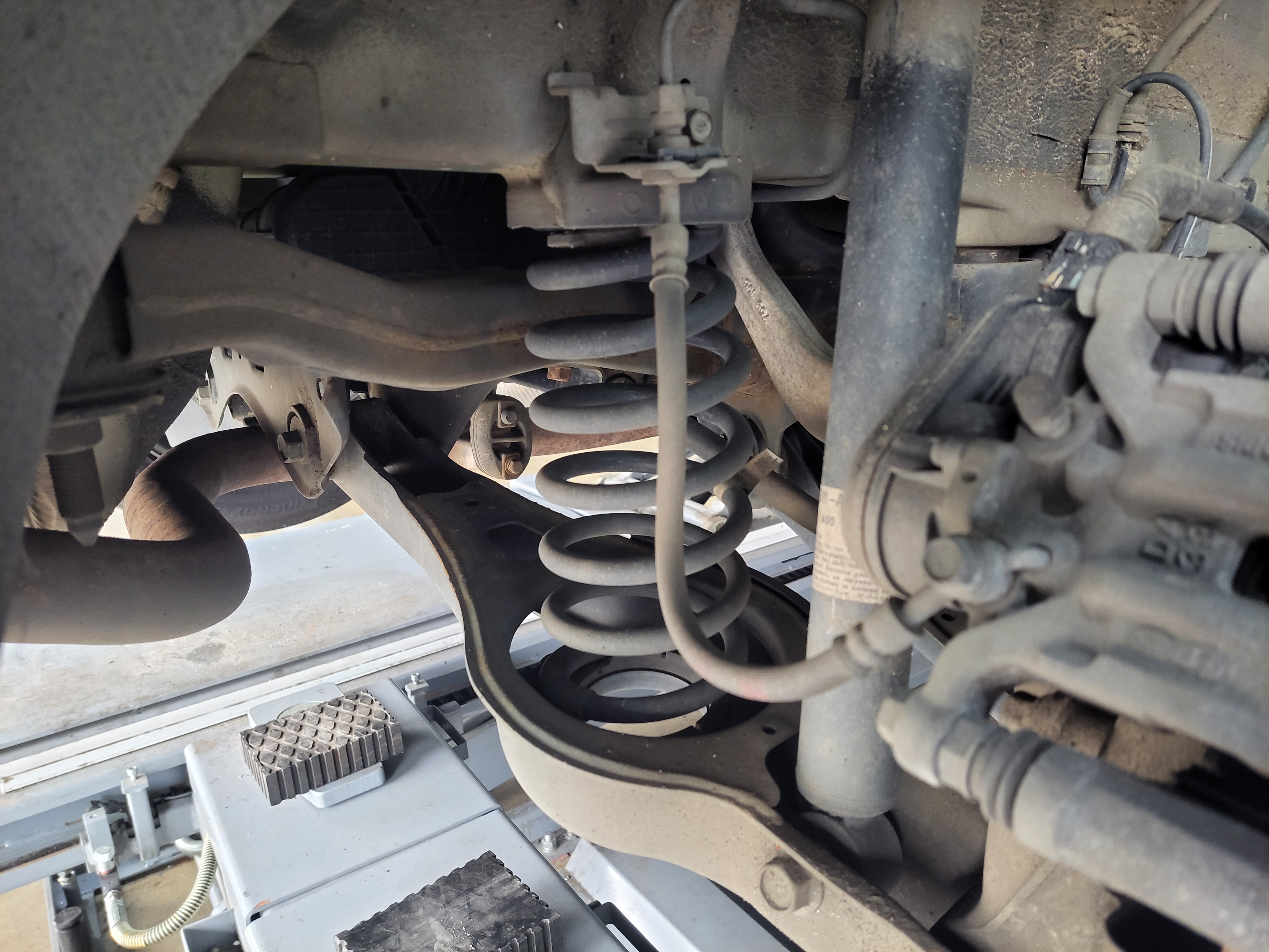 무거운 적재물로 인해 리어 스프링이 많이 압축이