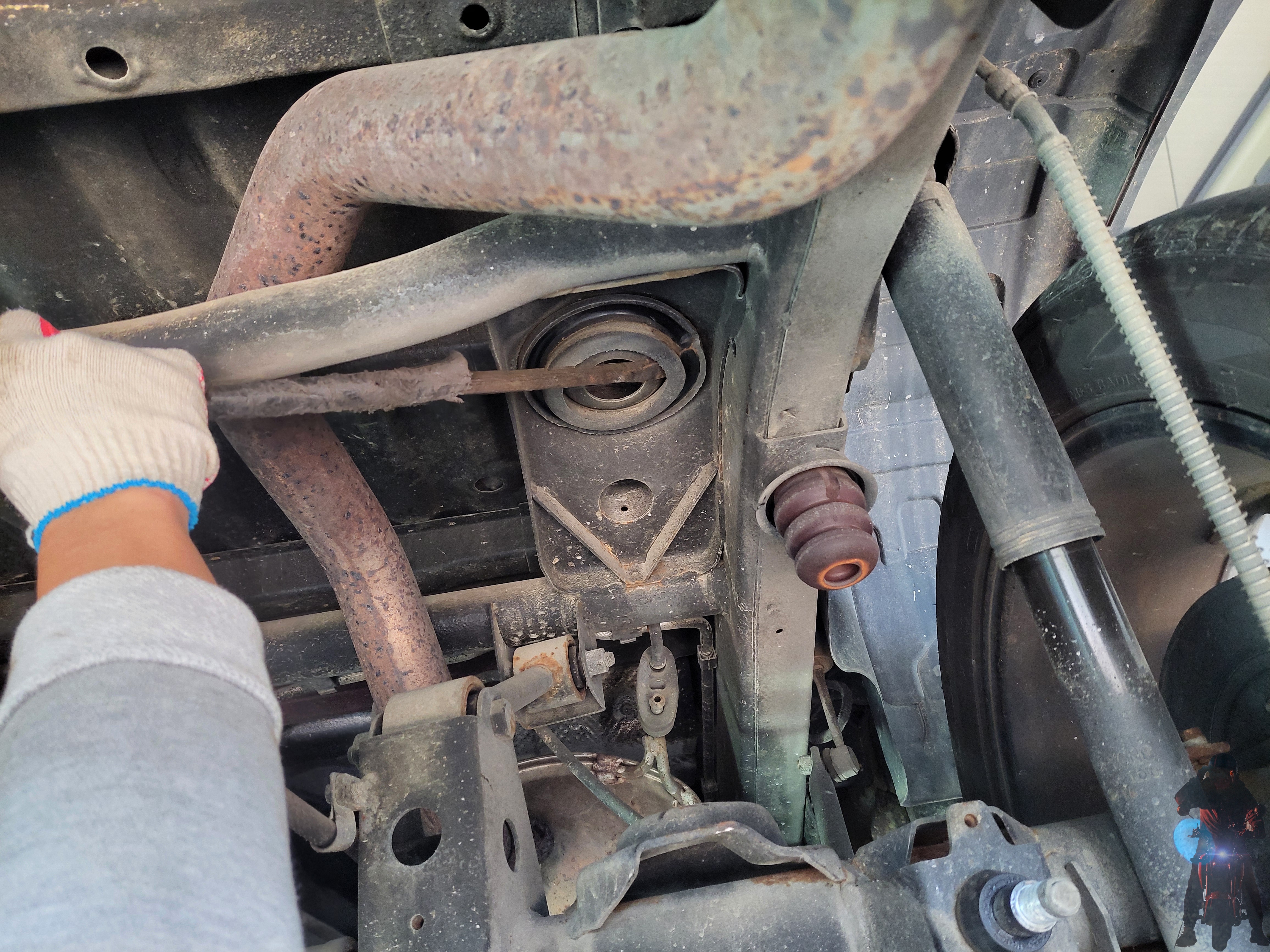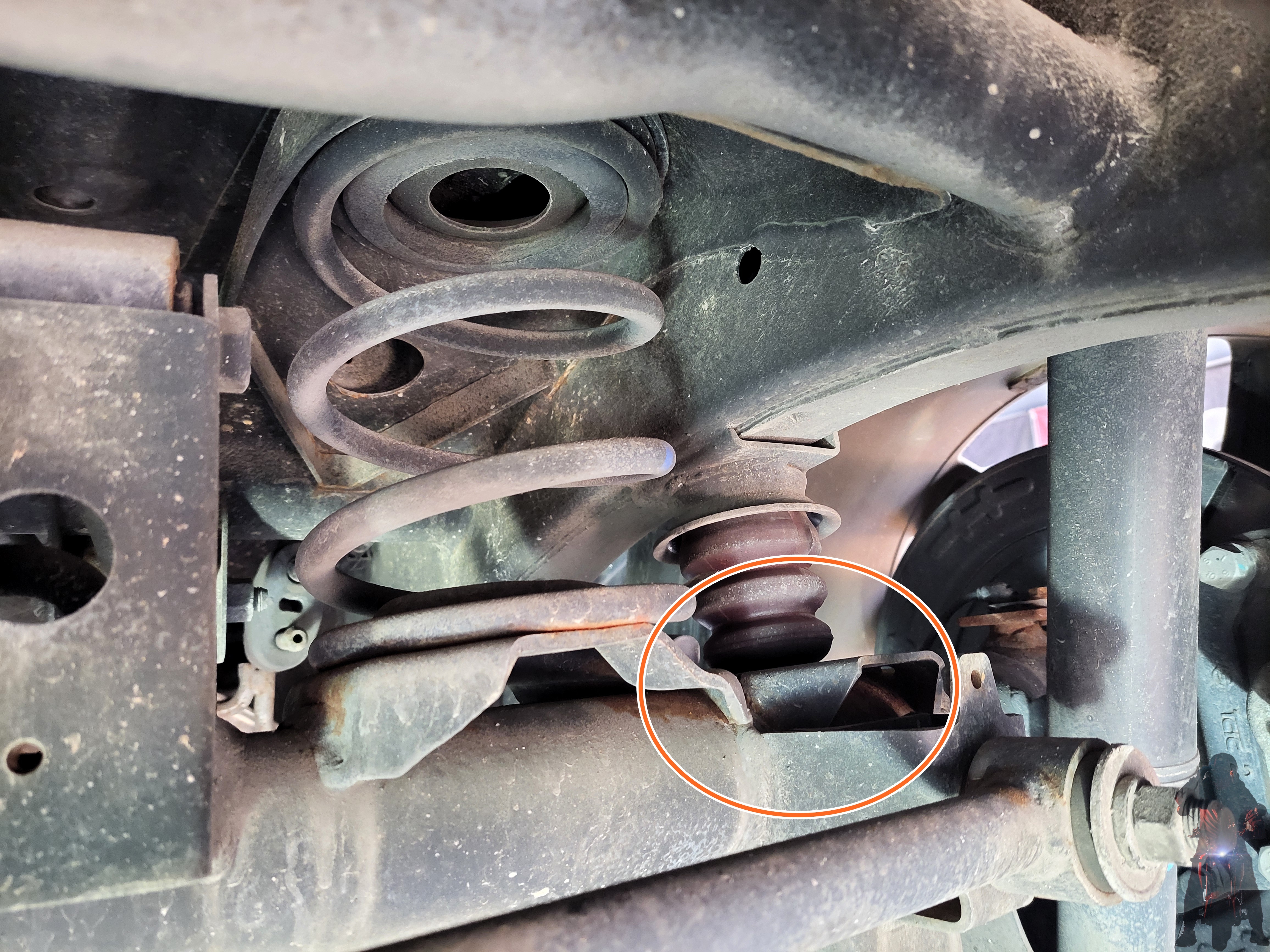 리어 범프스토퍼가 엑슬에 닿아 있습니다