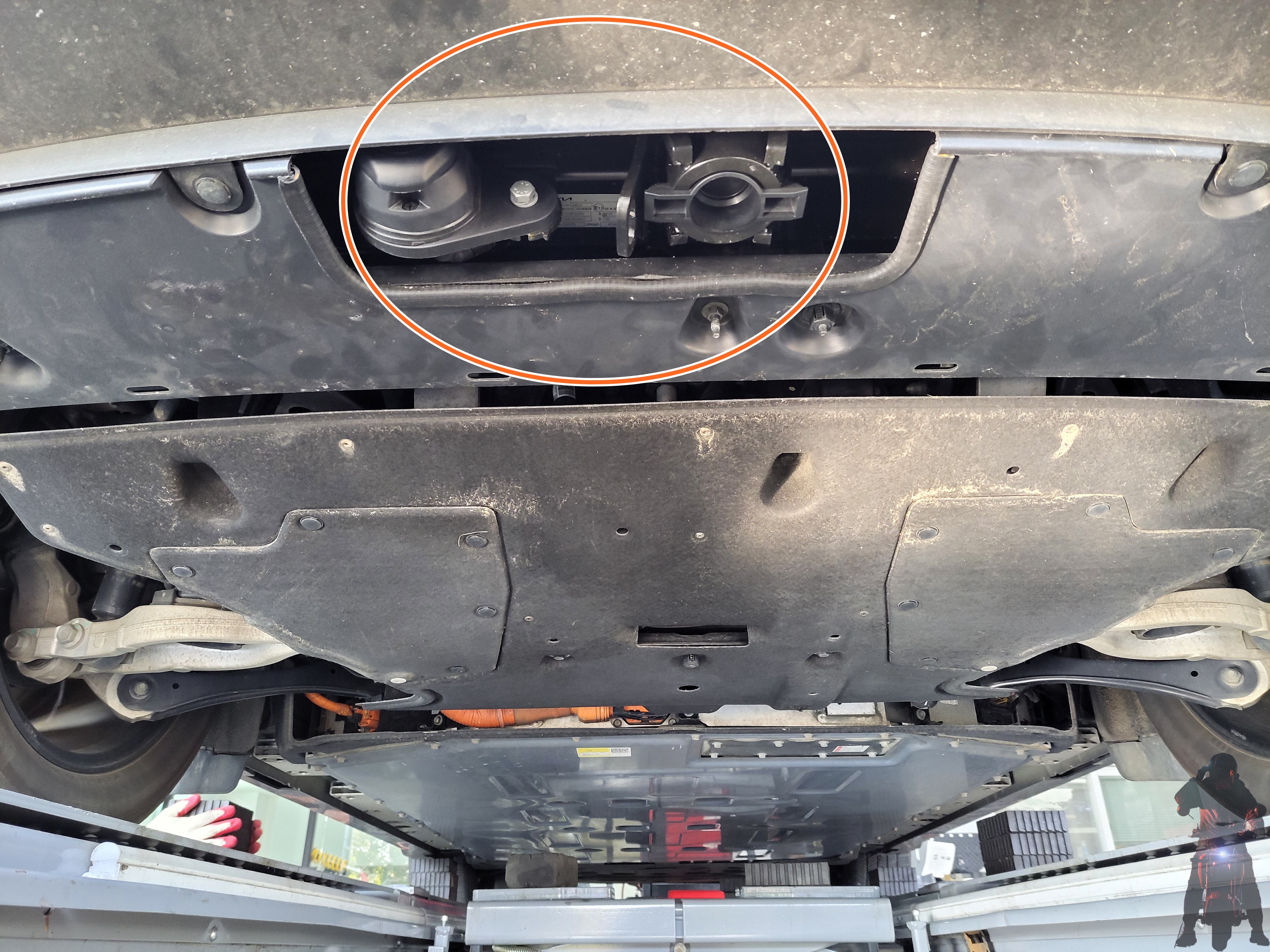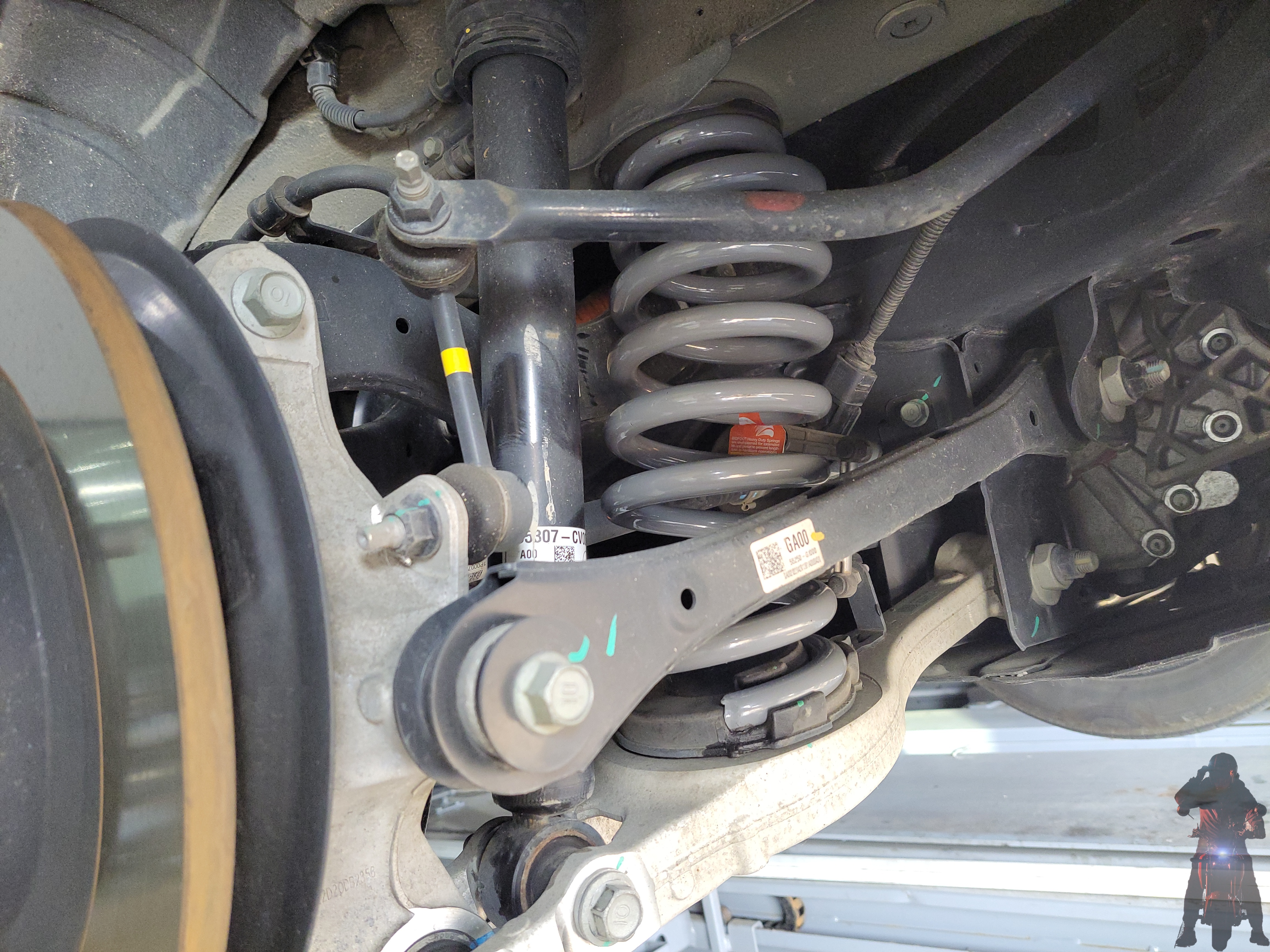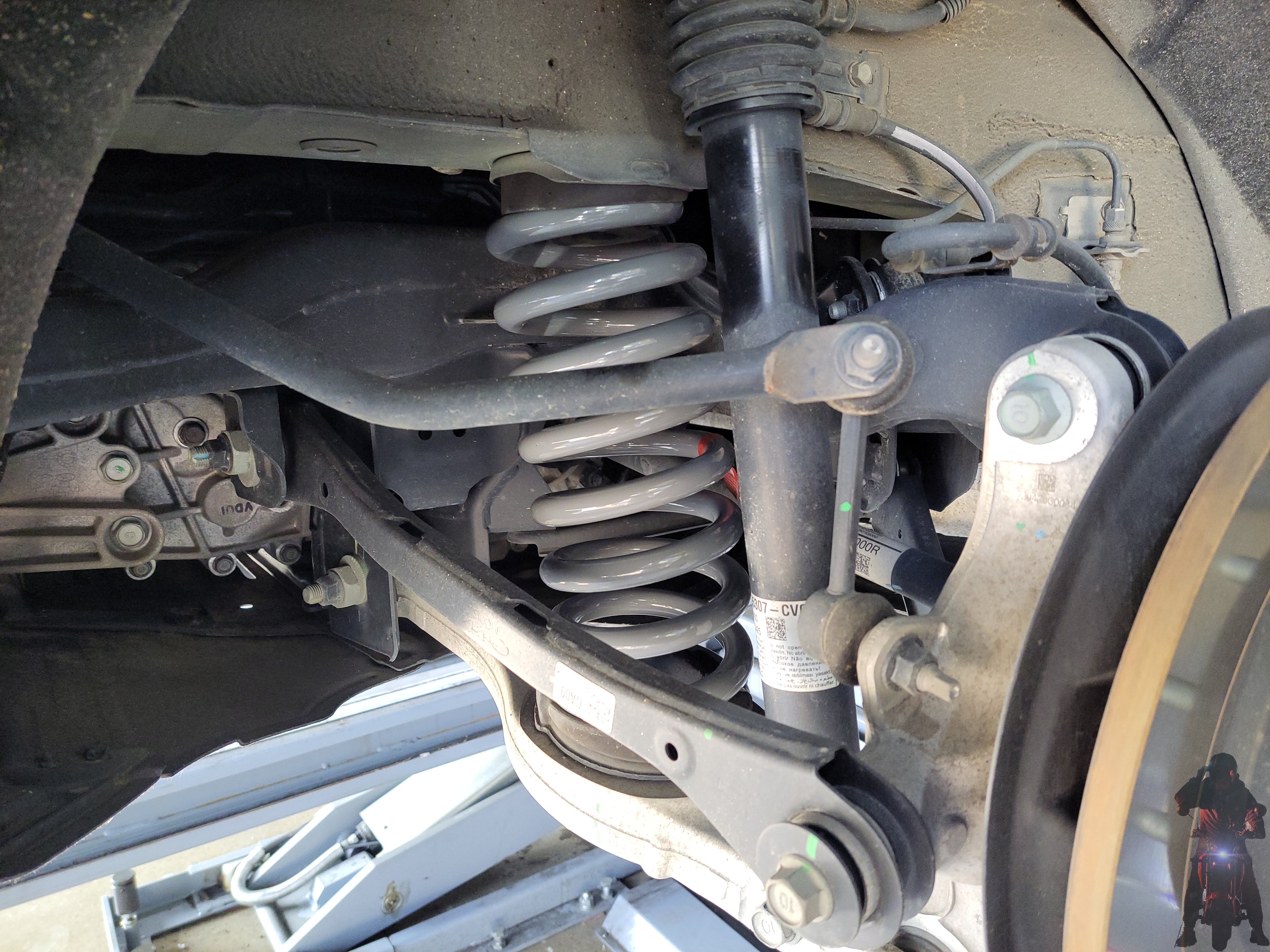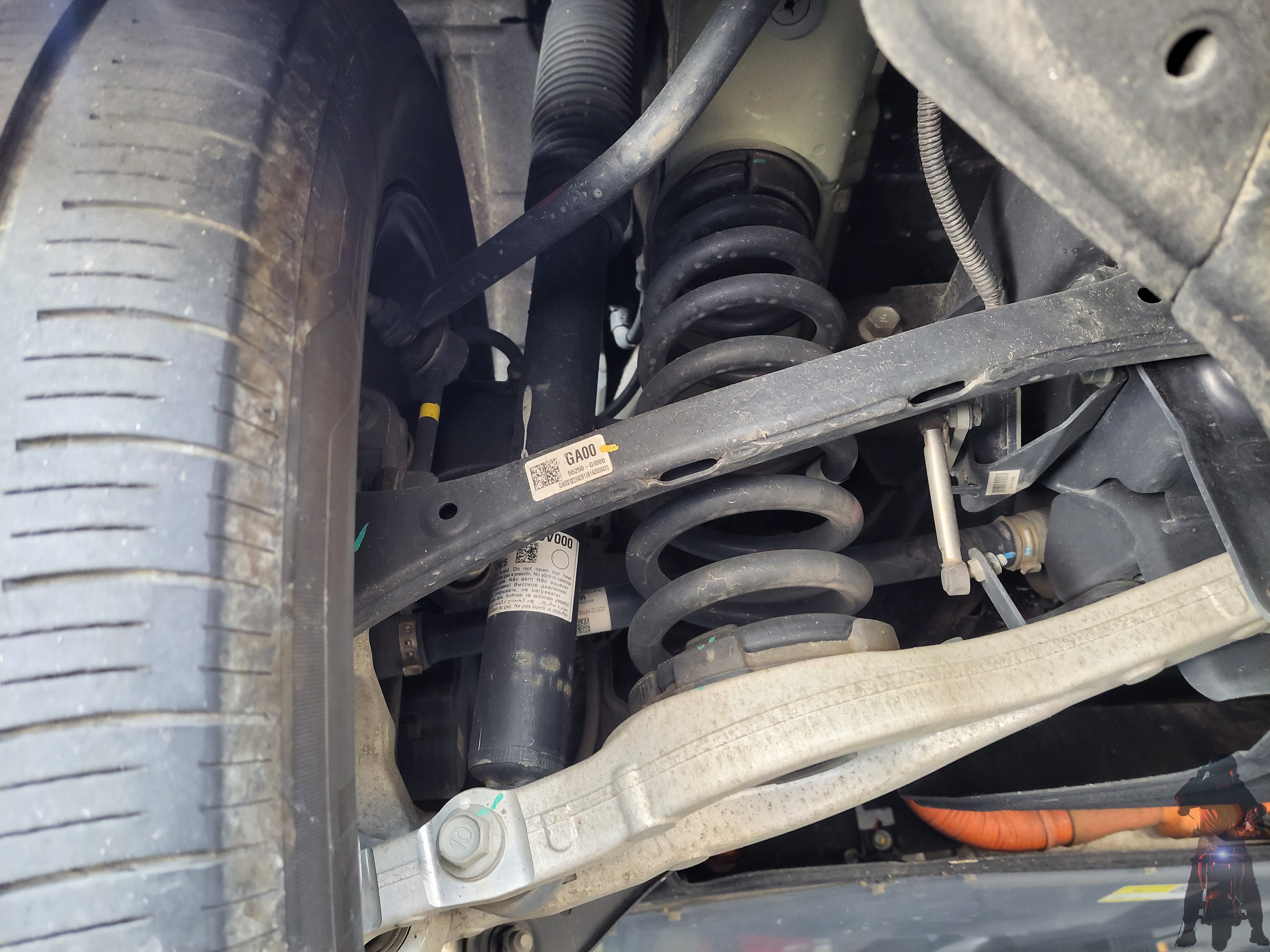 기아자동차 EV6 전기차 차량의 순정스프링을 탈거하고 있습니다