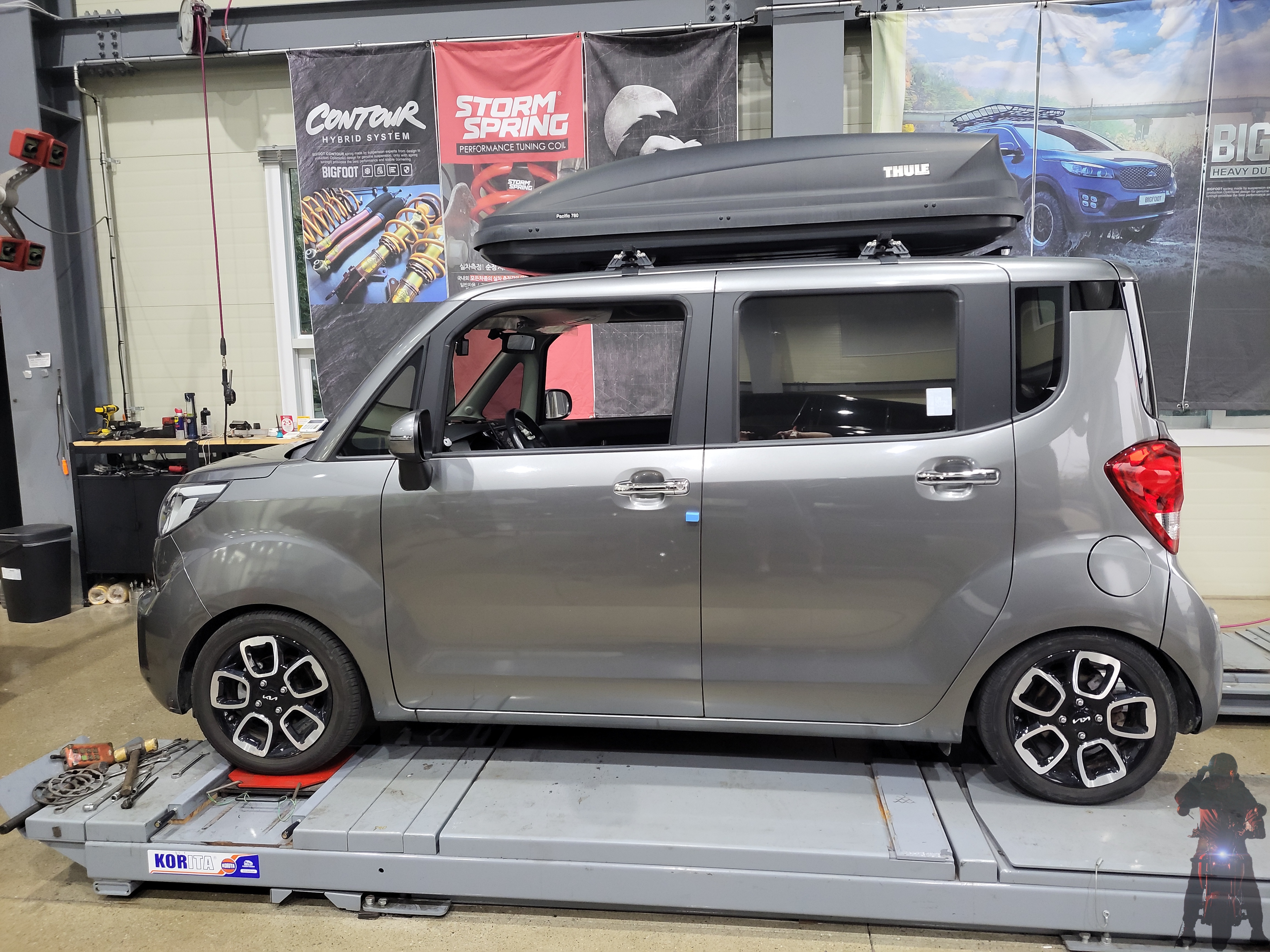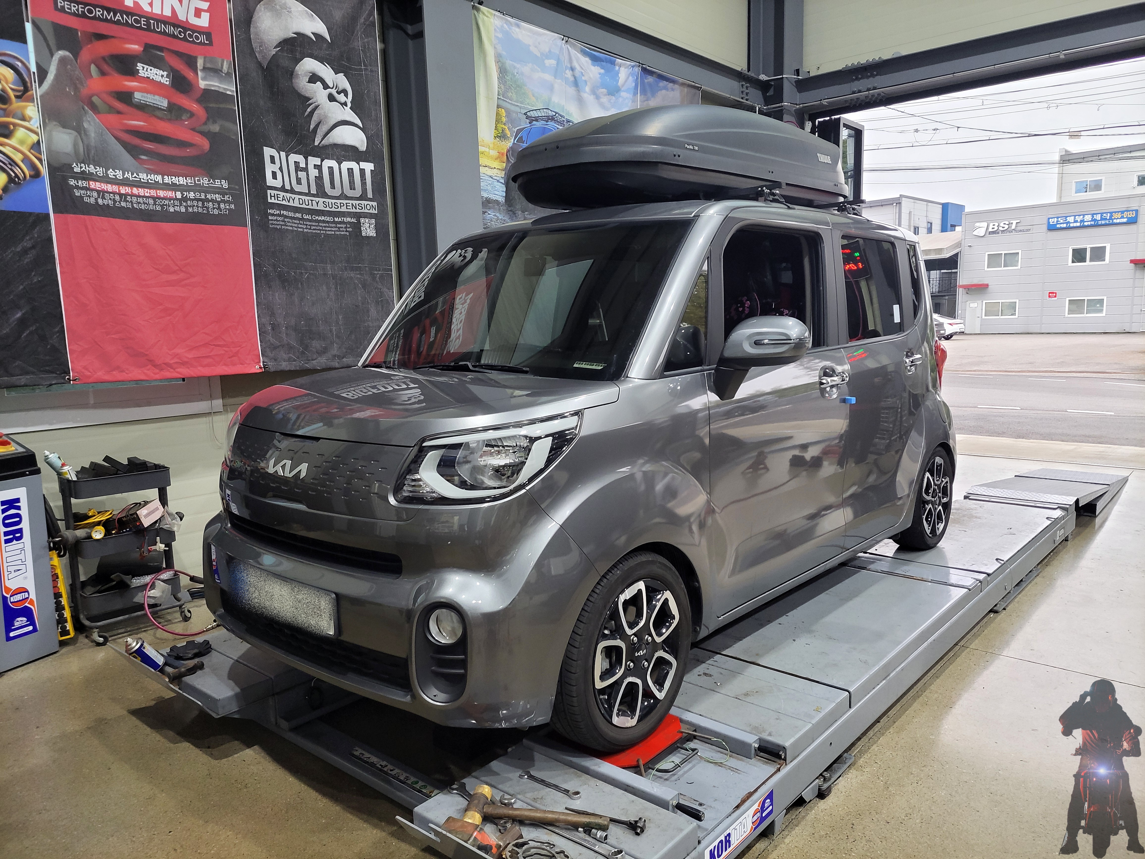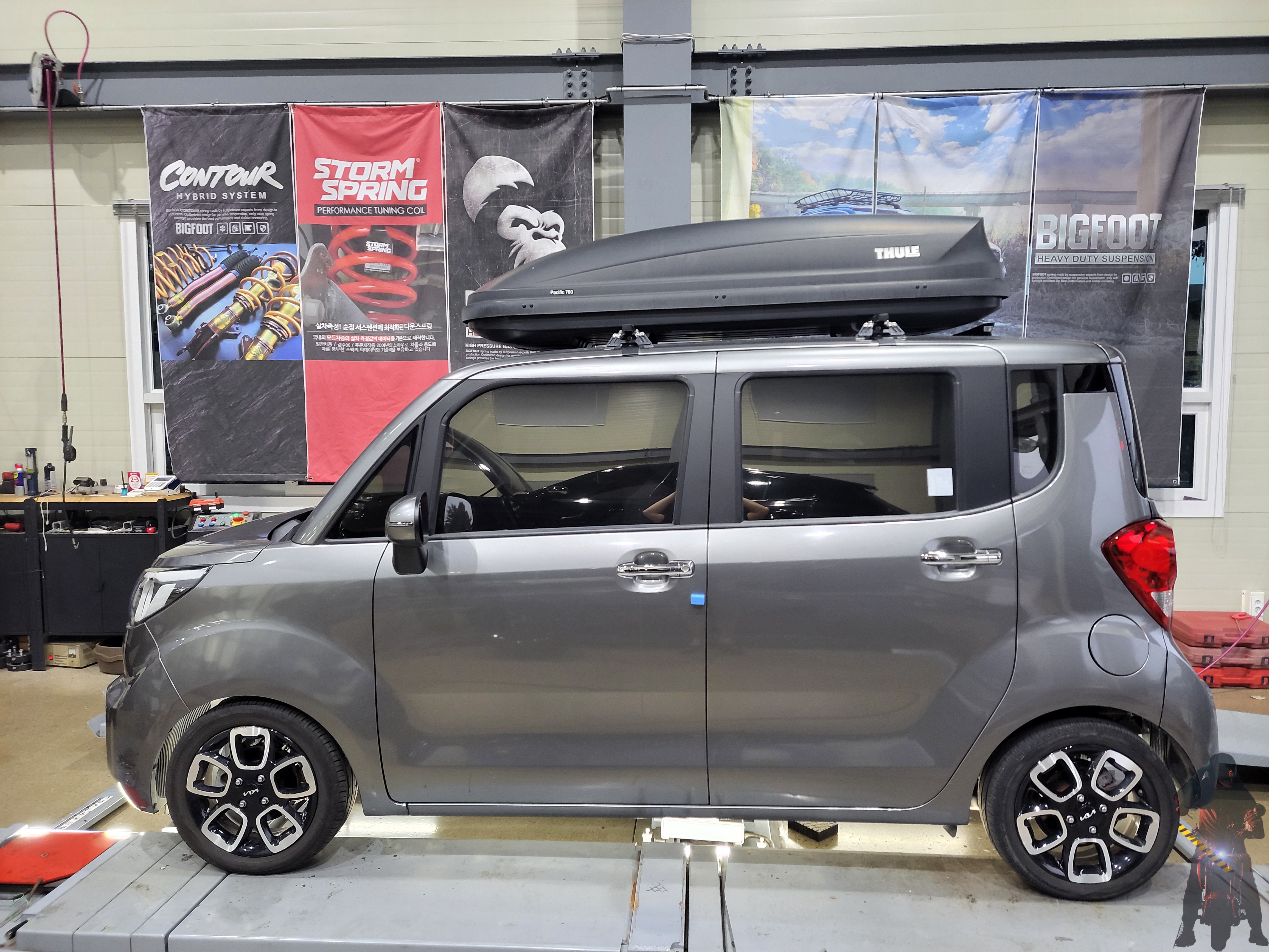 활용을 하고 계셔서 레이차량의 리어 차고가 많이 낮아졌습니다