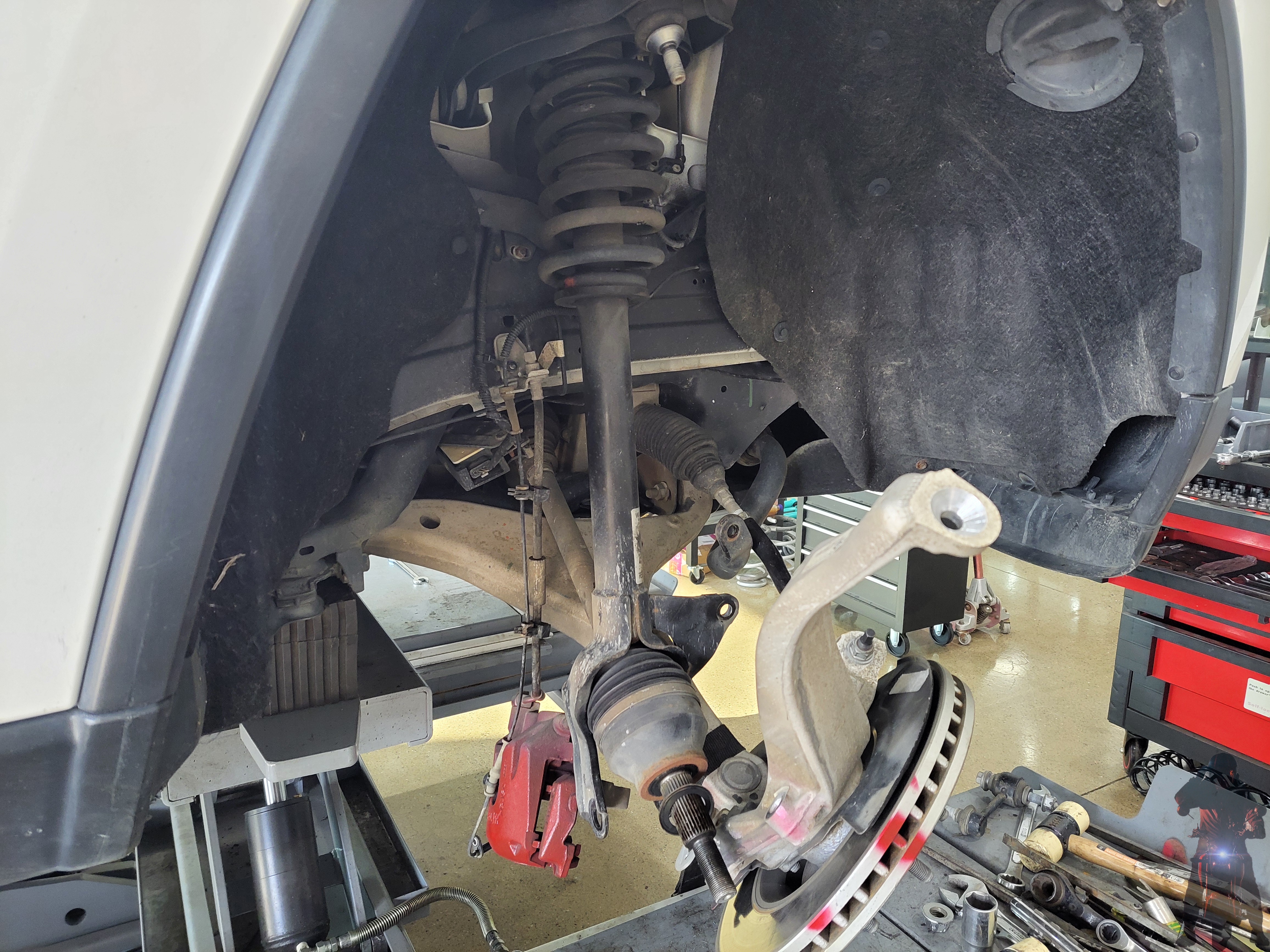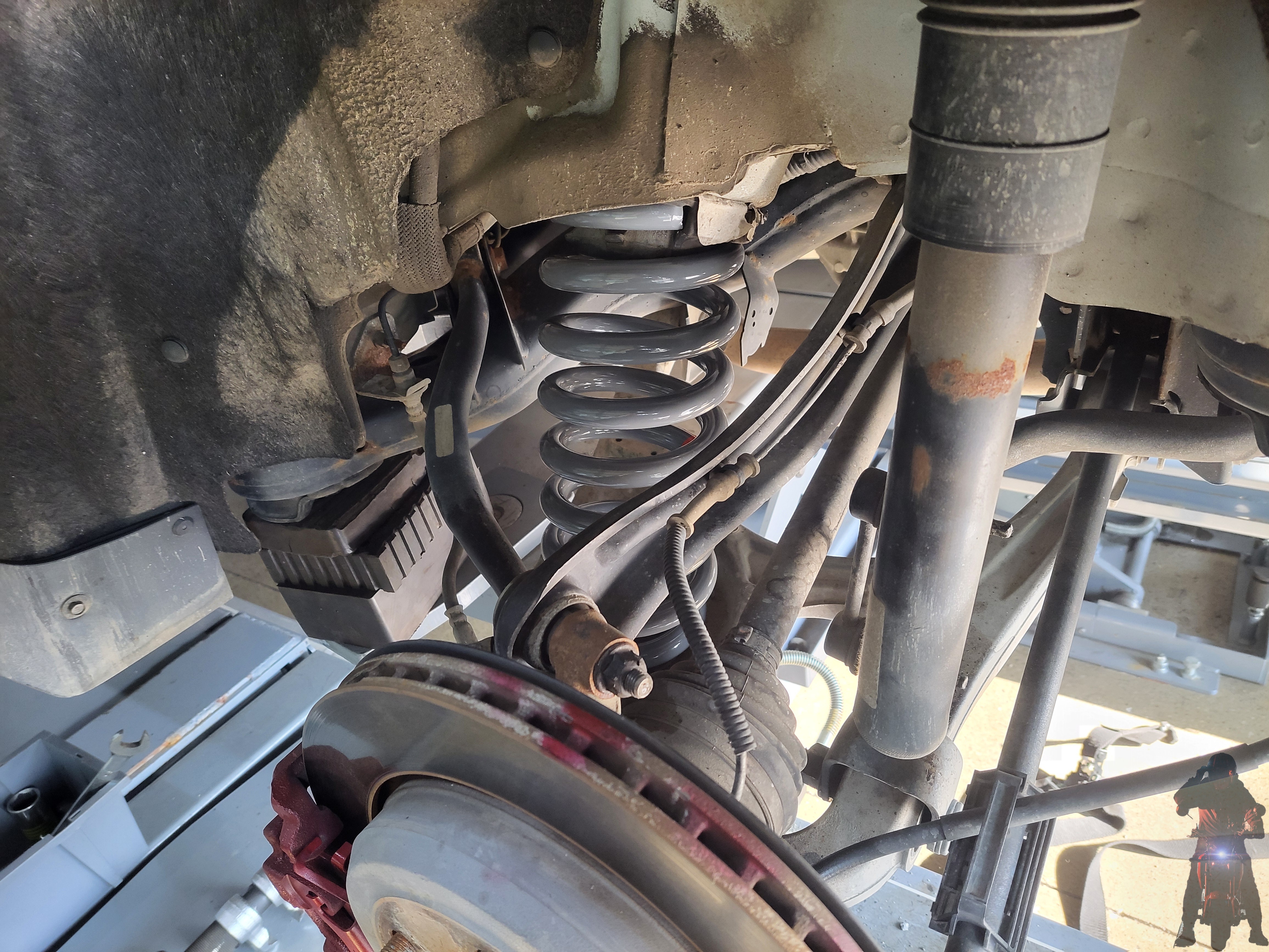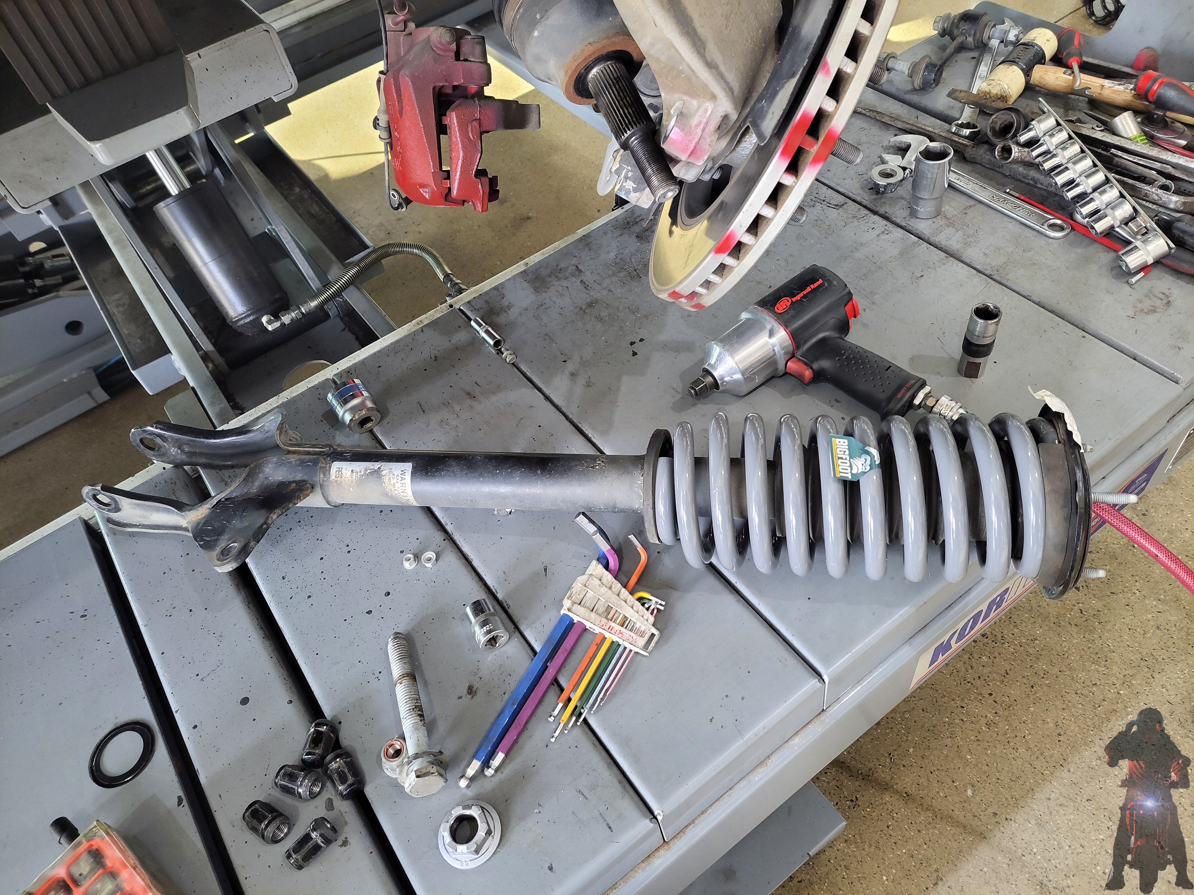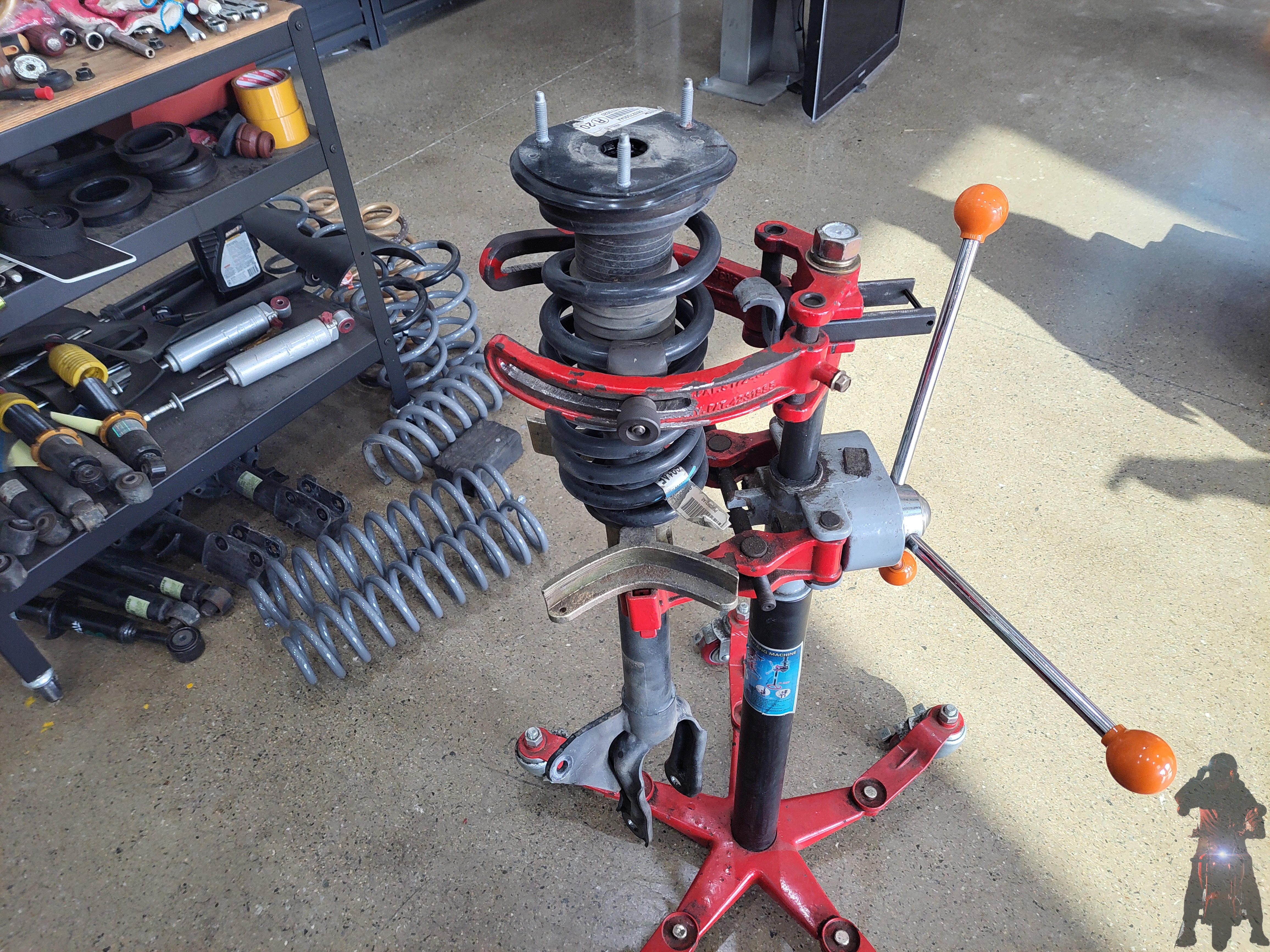 탈거한 그랜드체로키 프런트 쇼바스프링을 스프링 탈착기에