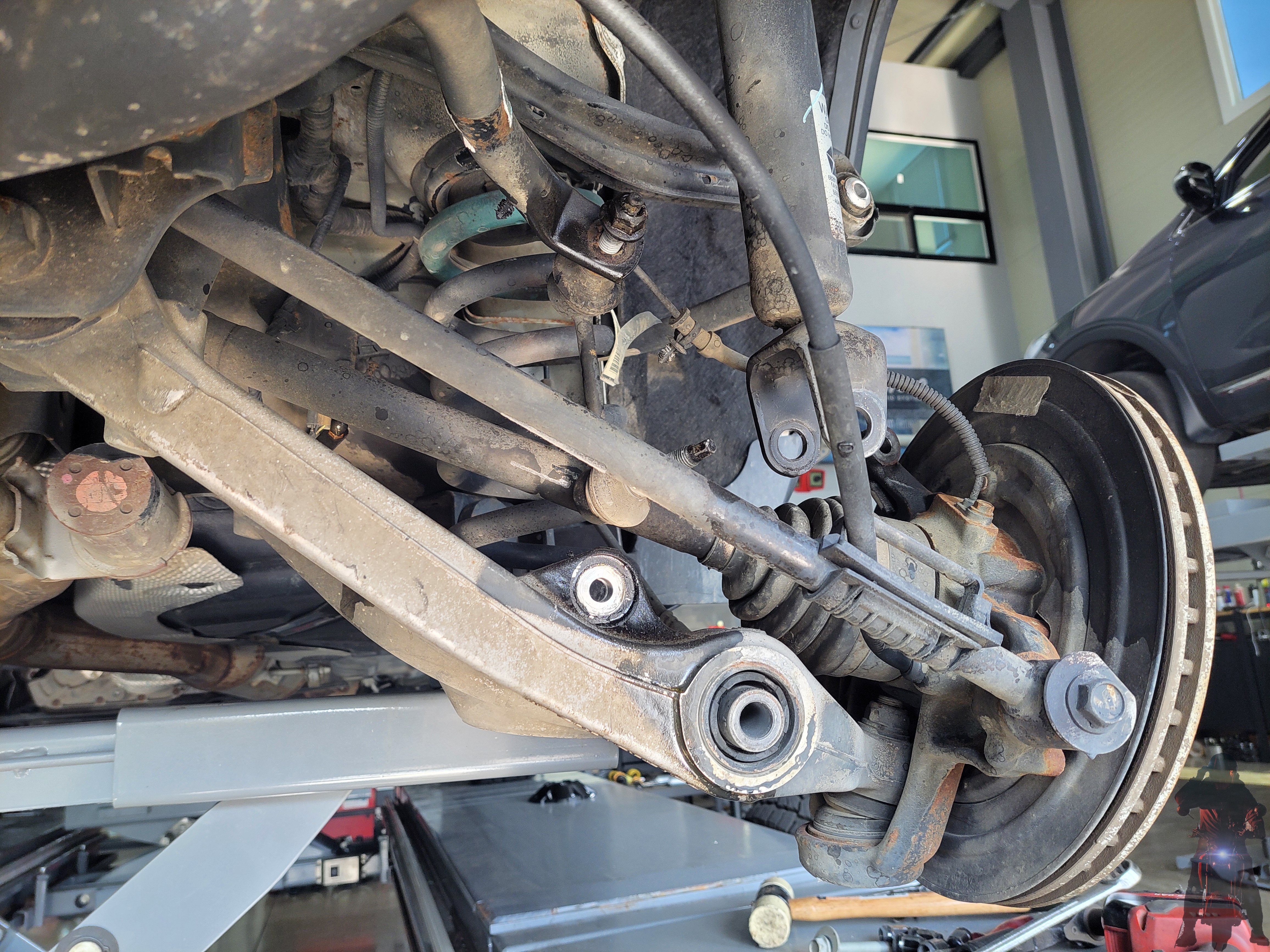 트레일링암 등등 각종 부품을 탈거하고 있습니다