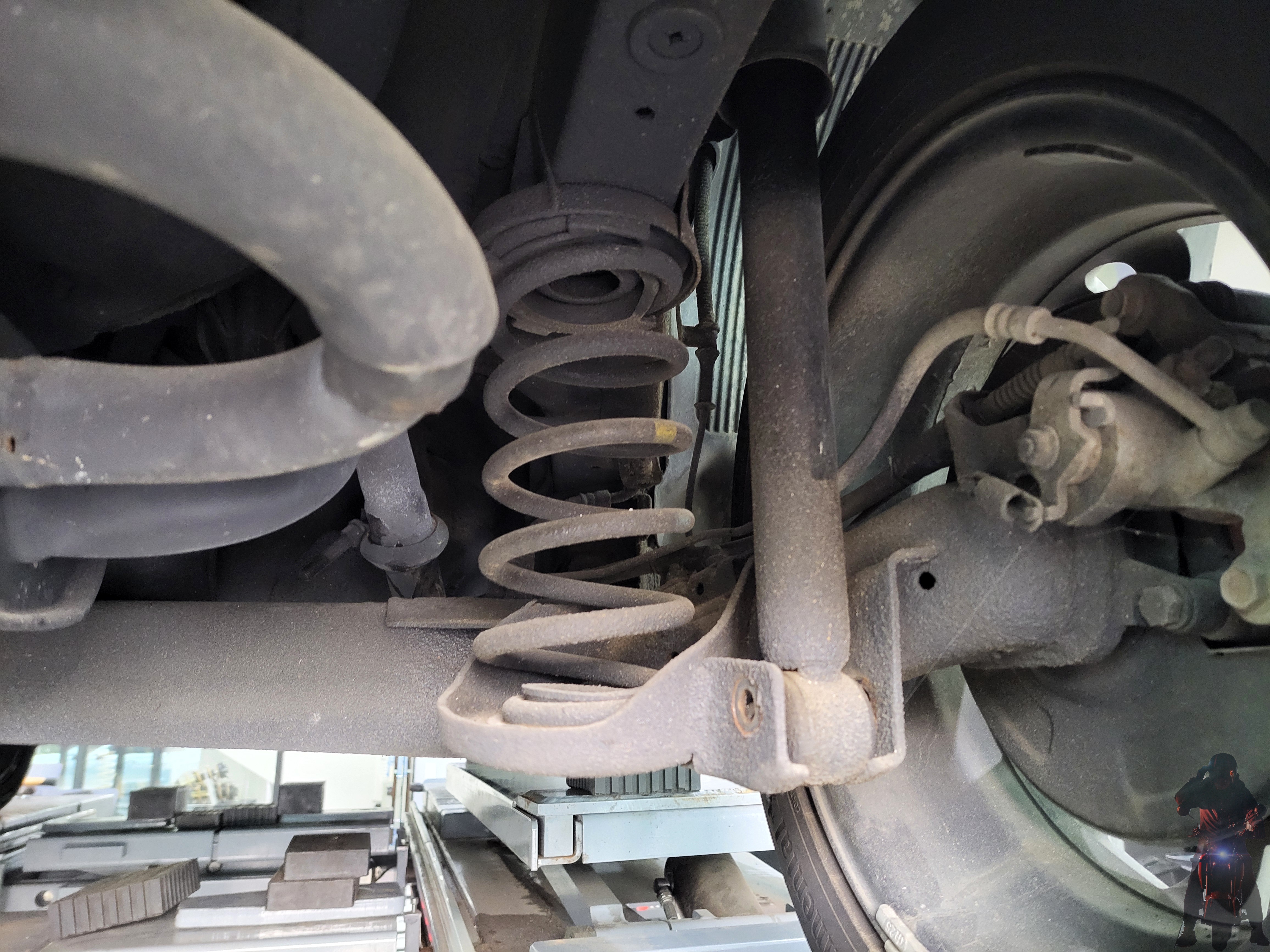 순정스프링을 탈거하기 위해 쇼바 하단 부싱