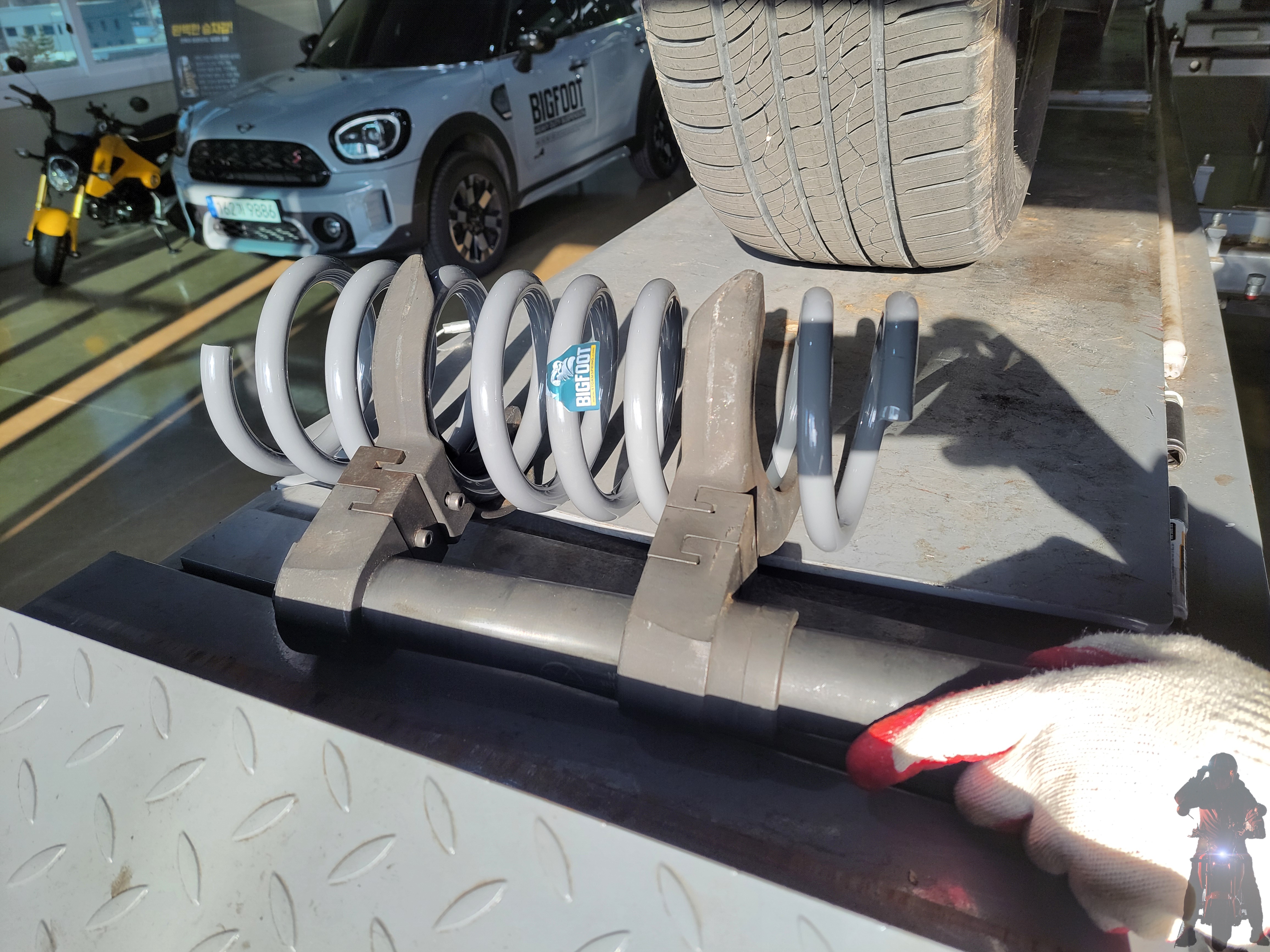 리어를 탈거하고 2인치빅풋스프링을 스프링 압축기로