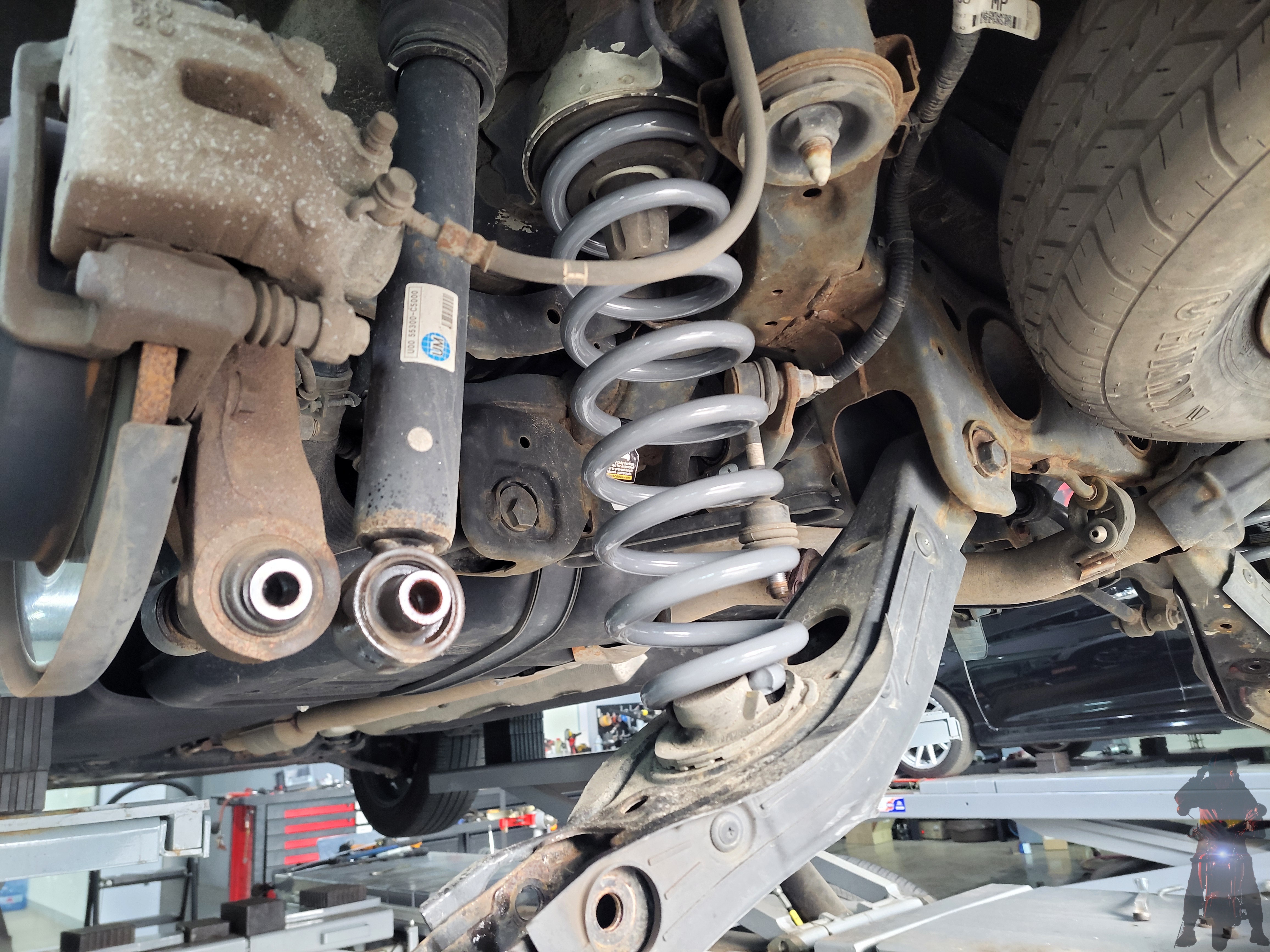 순정 리어 스프링을 탈거하고 빅풋스프링을 장착하고 있습니다