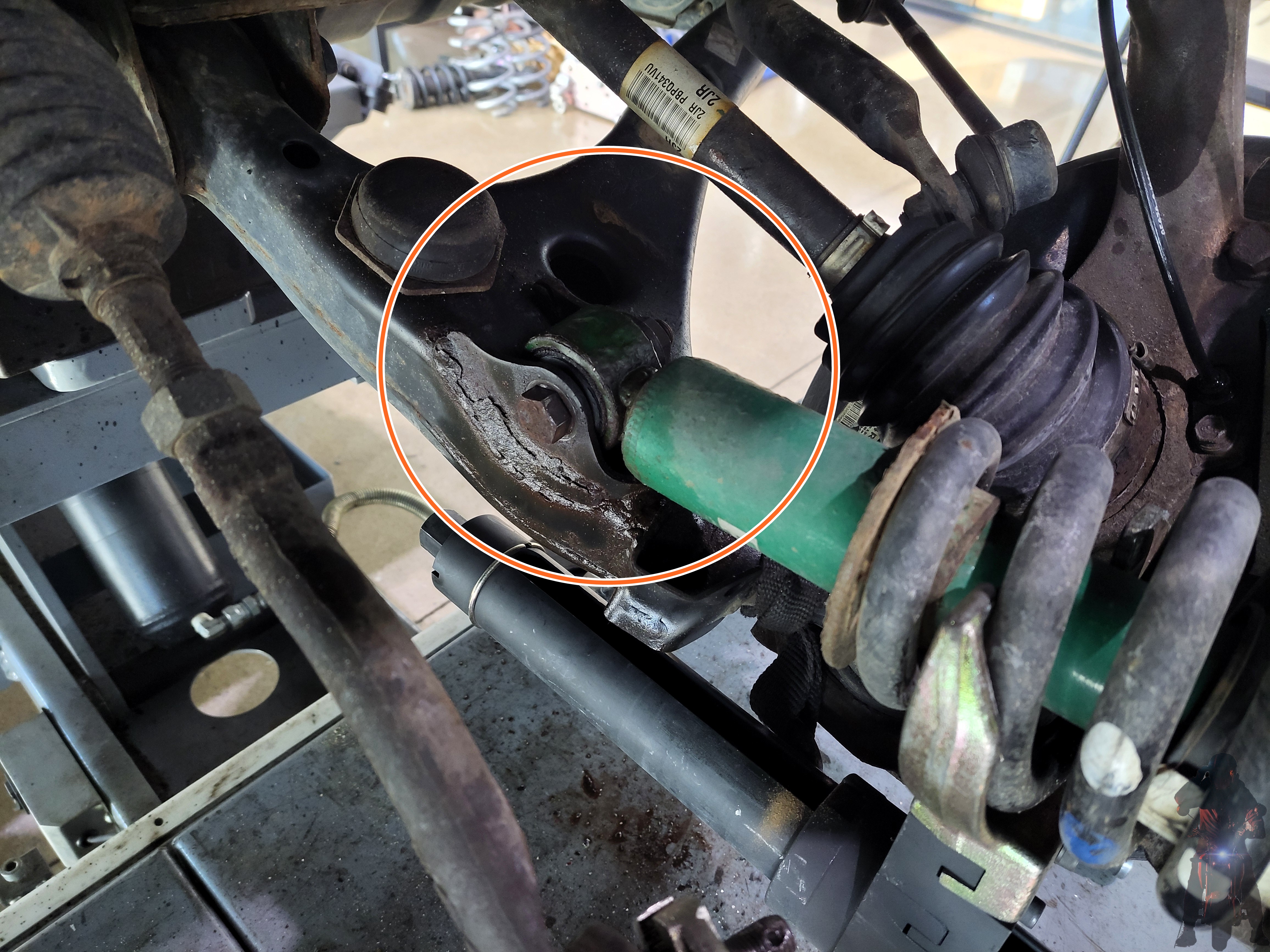 기아자동차 모하비 차량의 프런트 쇼바 하단 고정부의