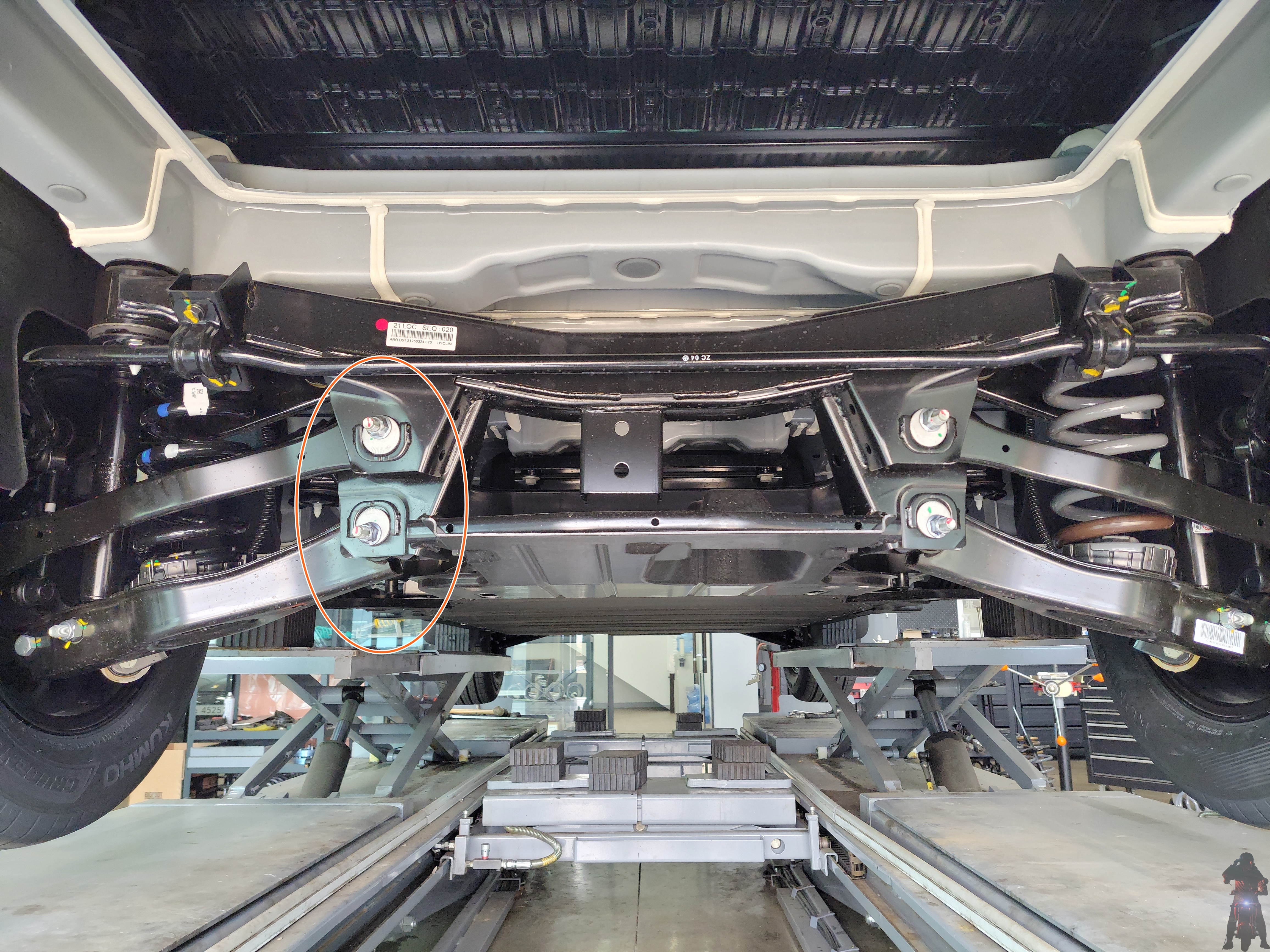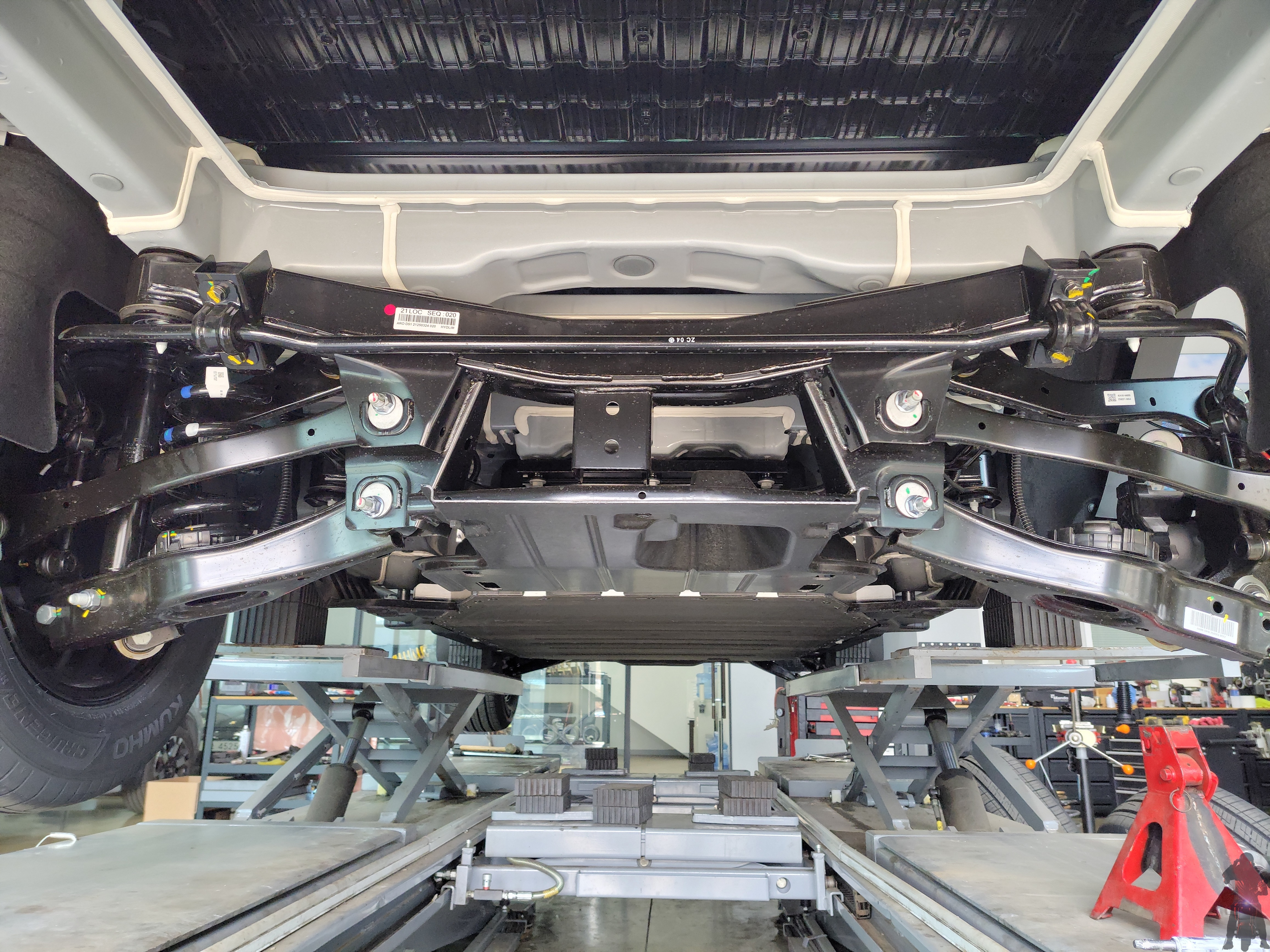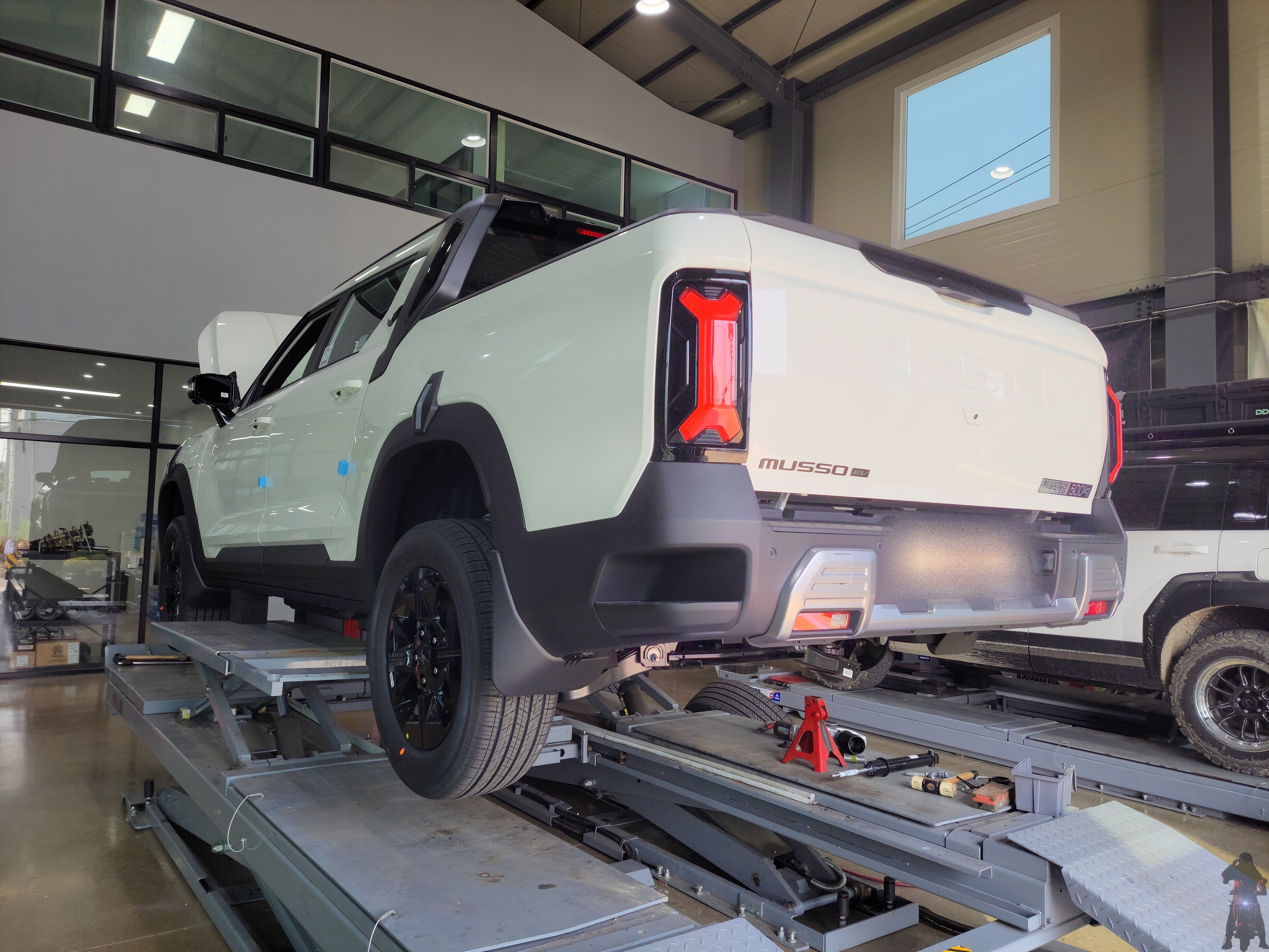 쌍용 KGM 모빌리티 신차 무쏘EV 차량의 리어 얼라이먼트