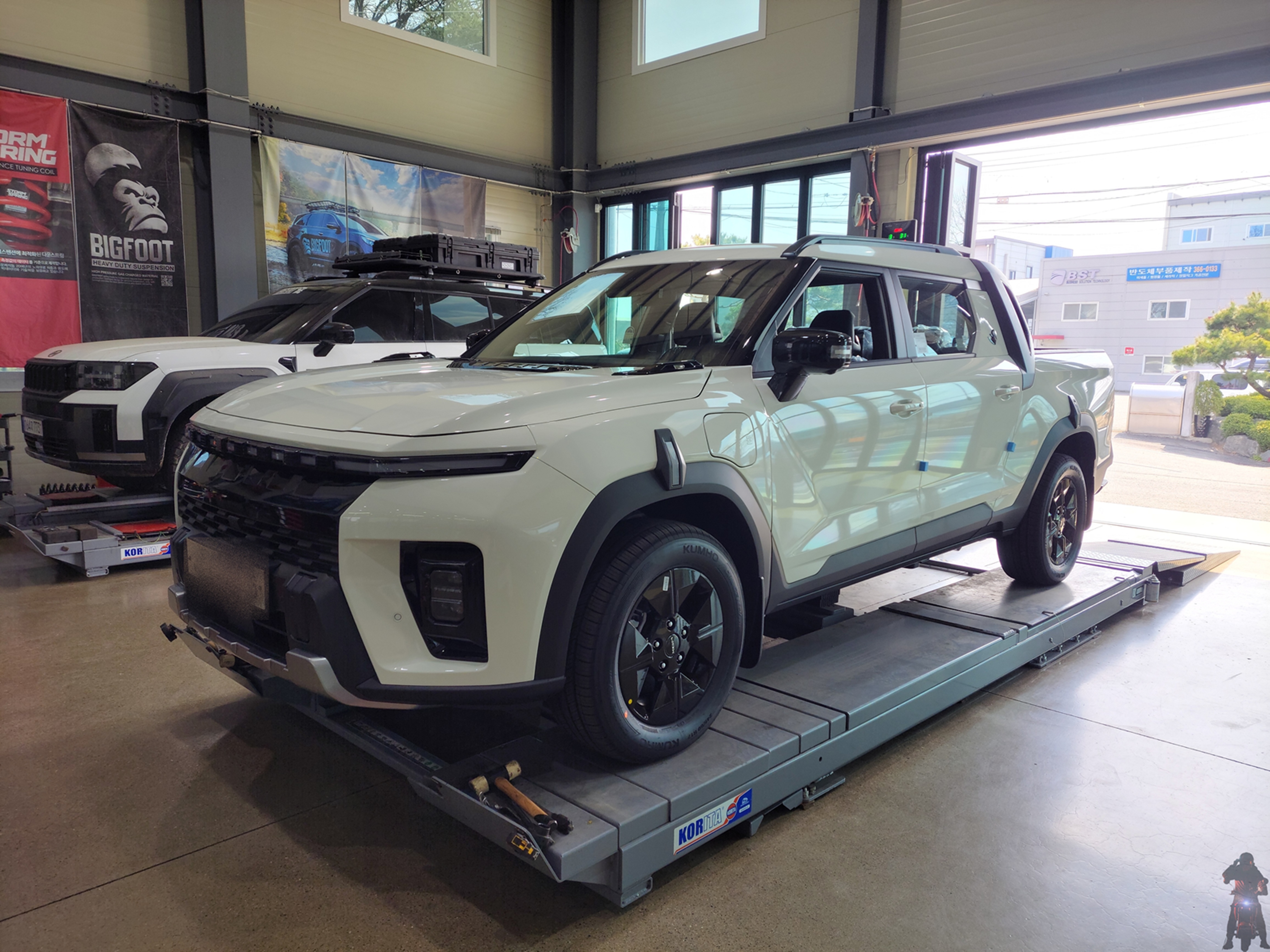 측정하기 위해 입고되었습니다 신형 무쏘EV차량은 유니바디 구조의
