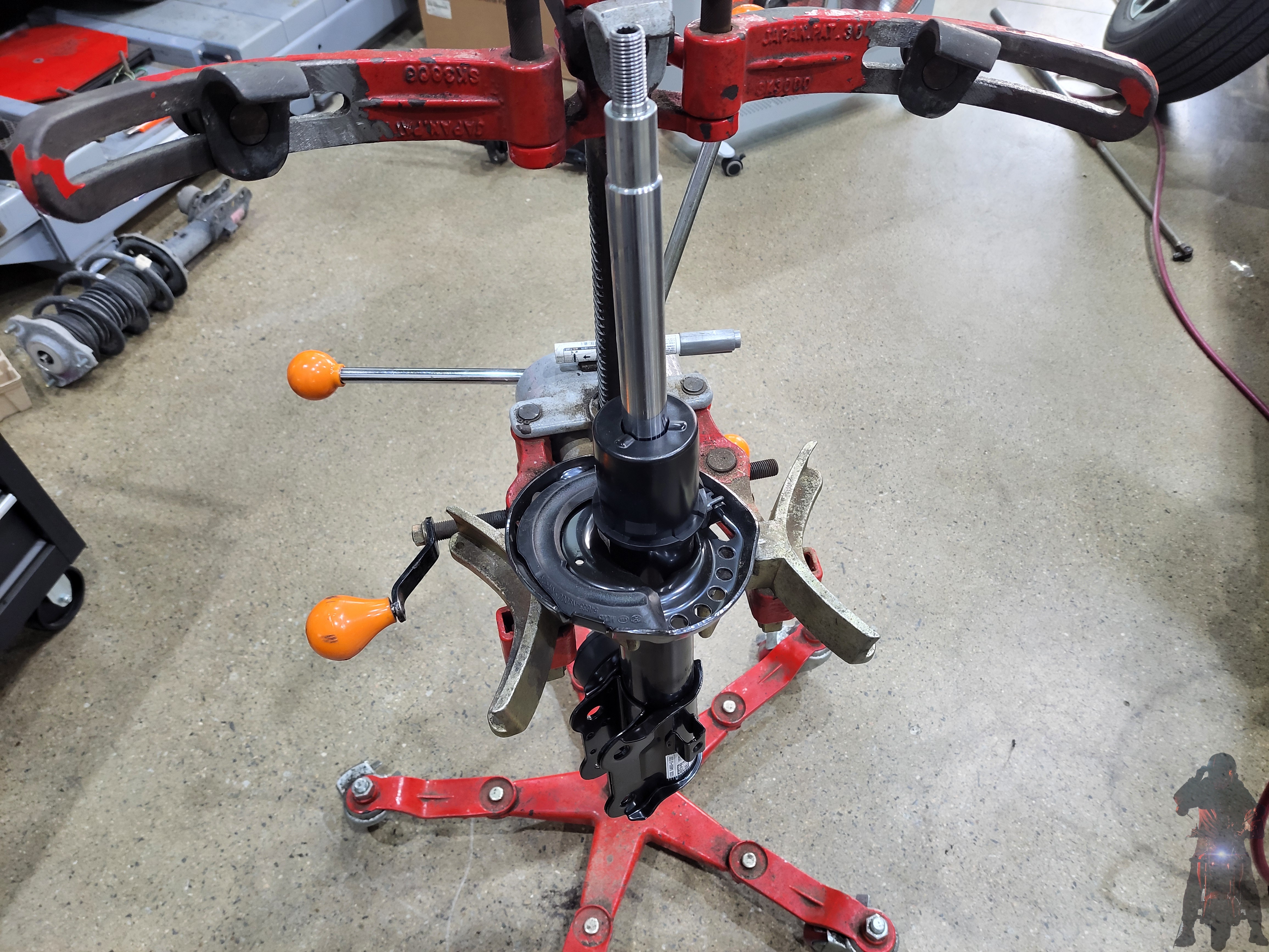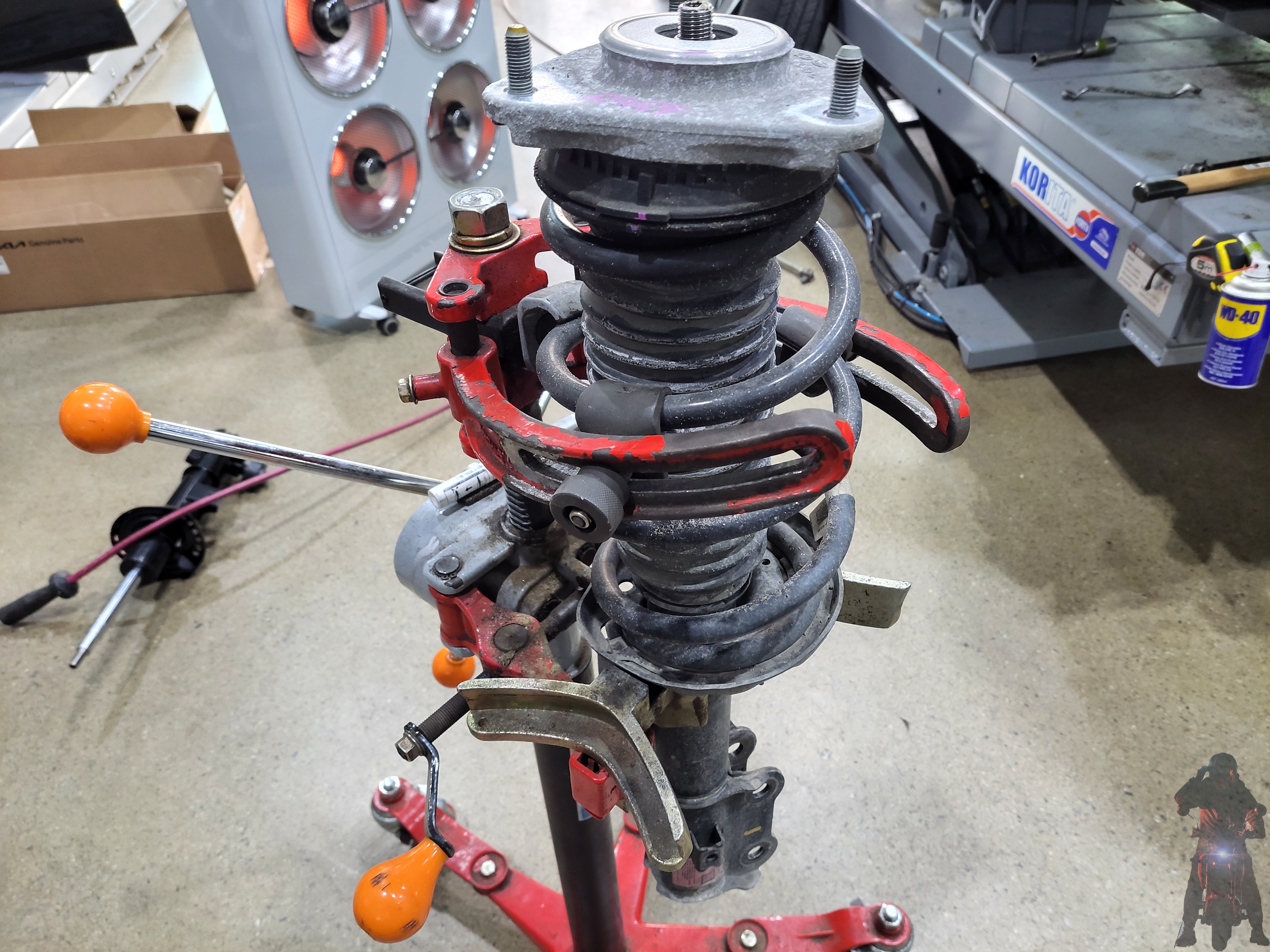 스프링 압축기에 순정쇼바스프링을 고정하고 순정스프링을