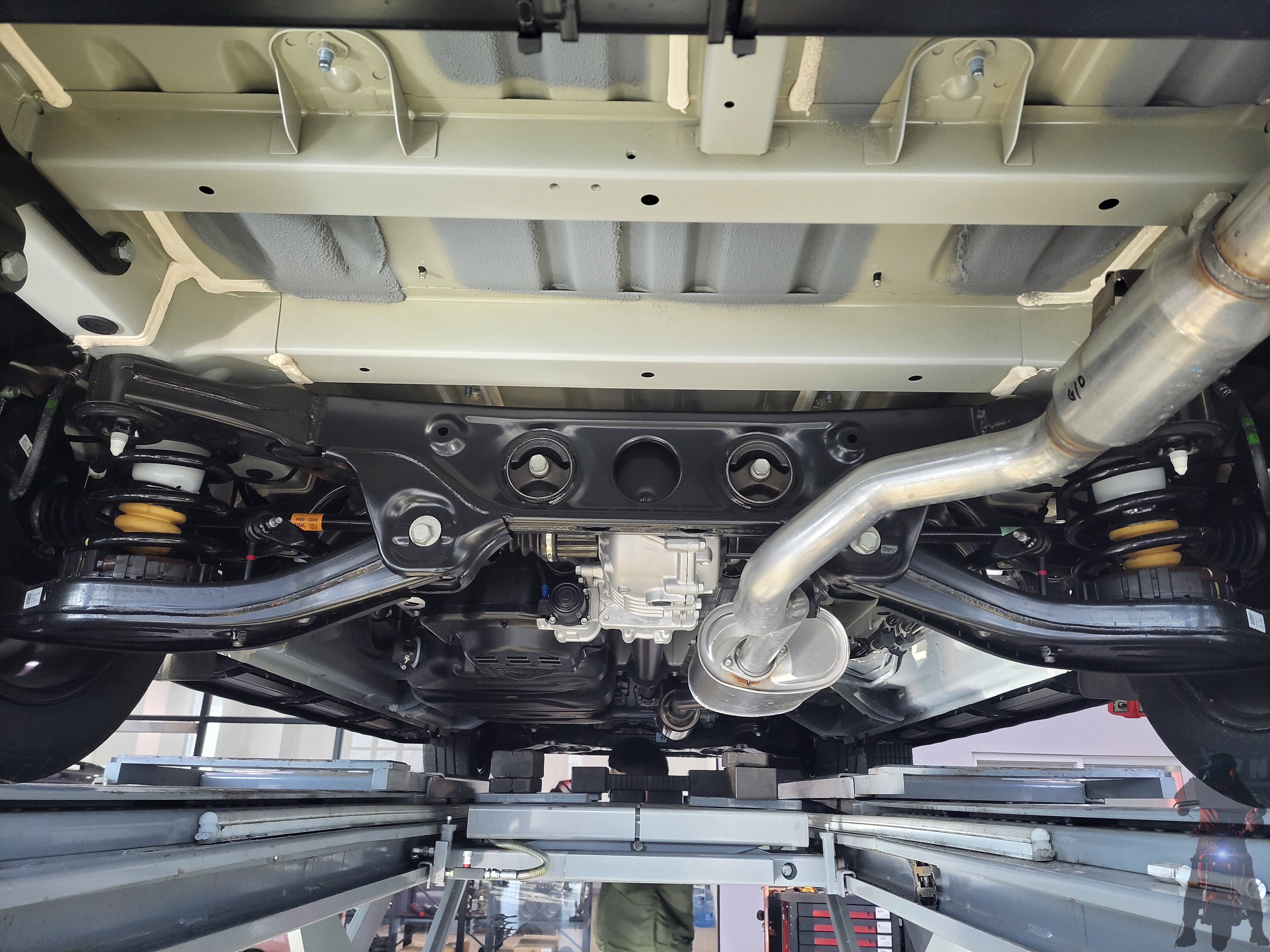 현대자동차 스타리아 차량의 리어 하체 구조입니다