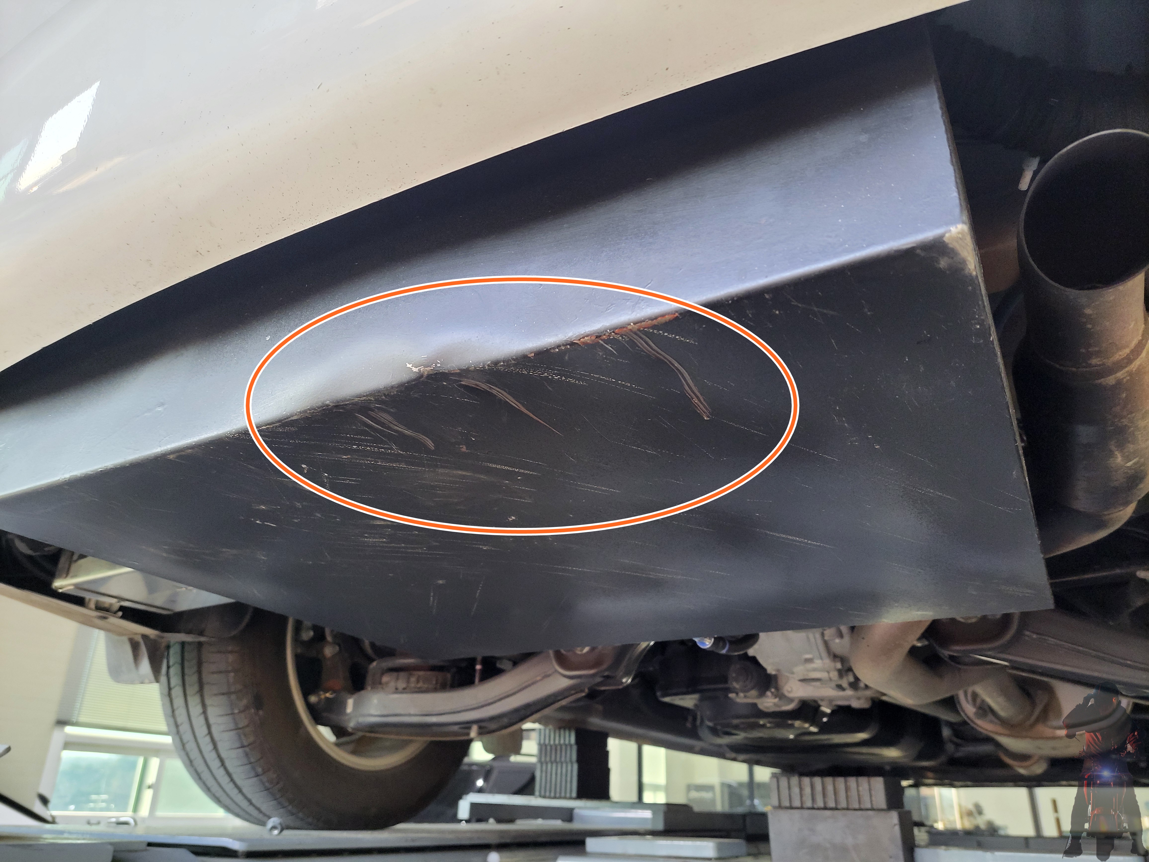 간섭이 되어서 긁히고 찌그러져 있습니다 차주분께서는