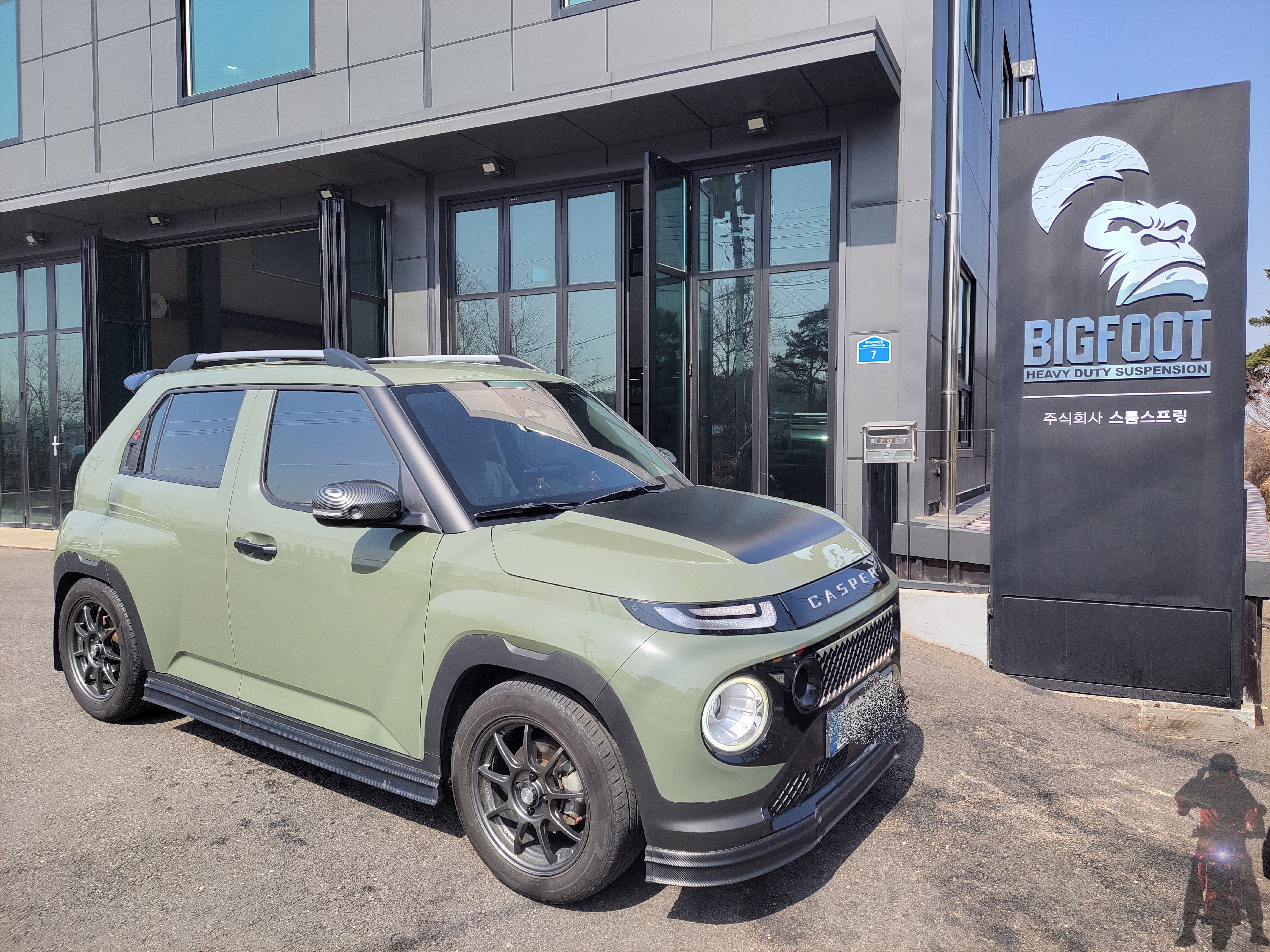현대자동차 캐스퍼 차량의 리어 서스펜션을 순정쇼바와 스톰다운스프링으로
