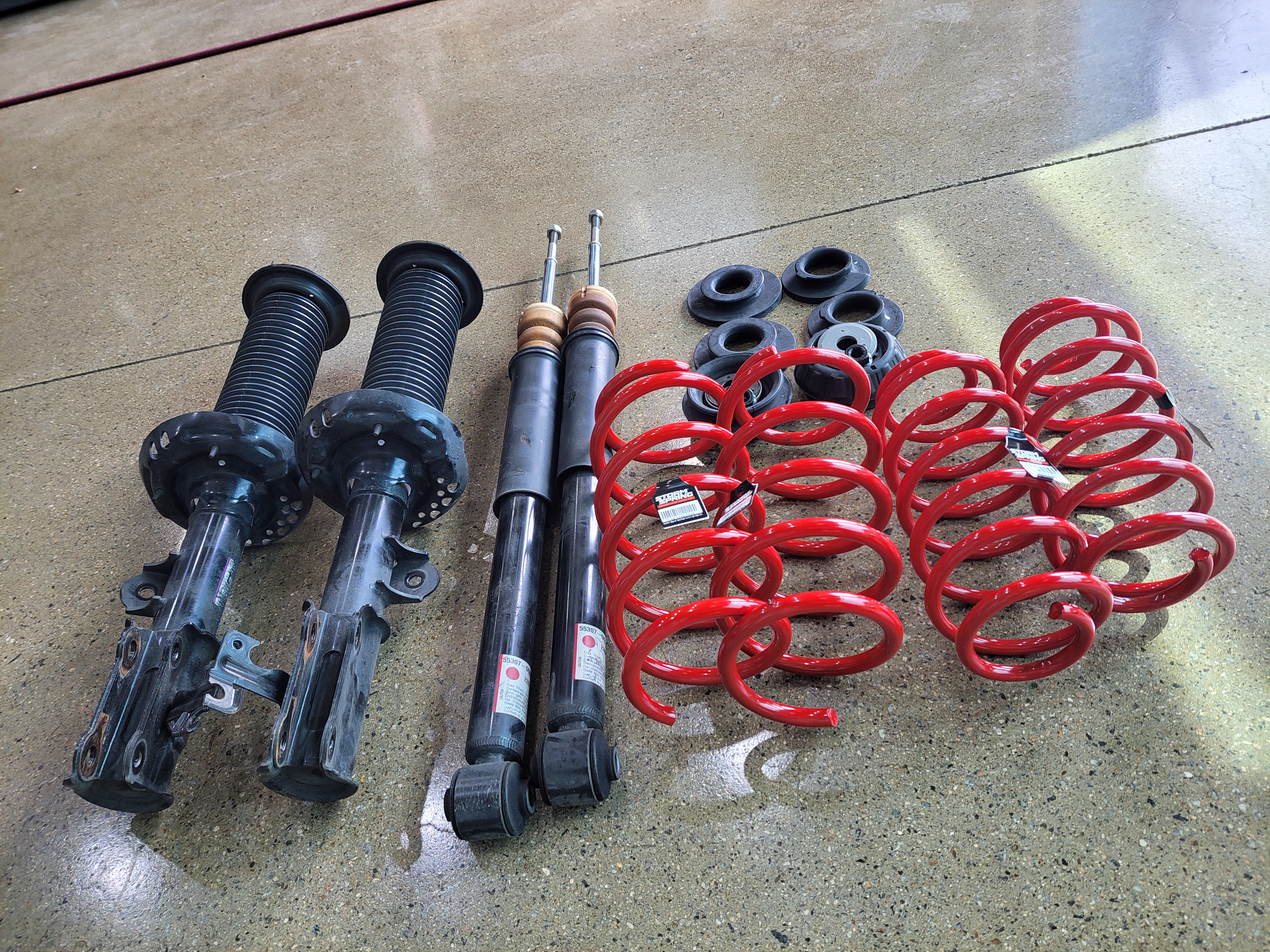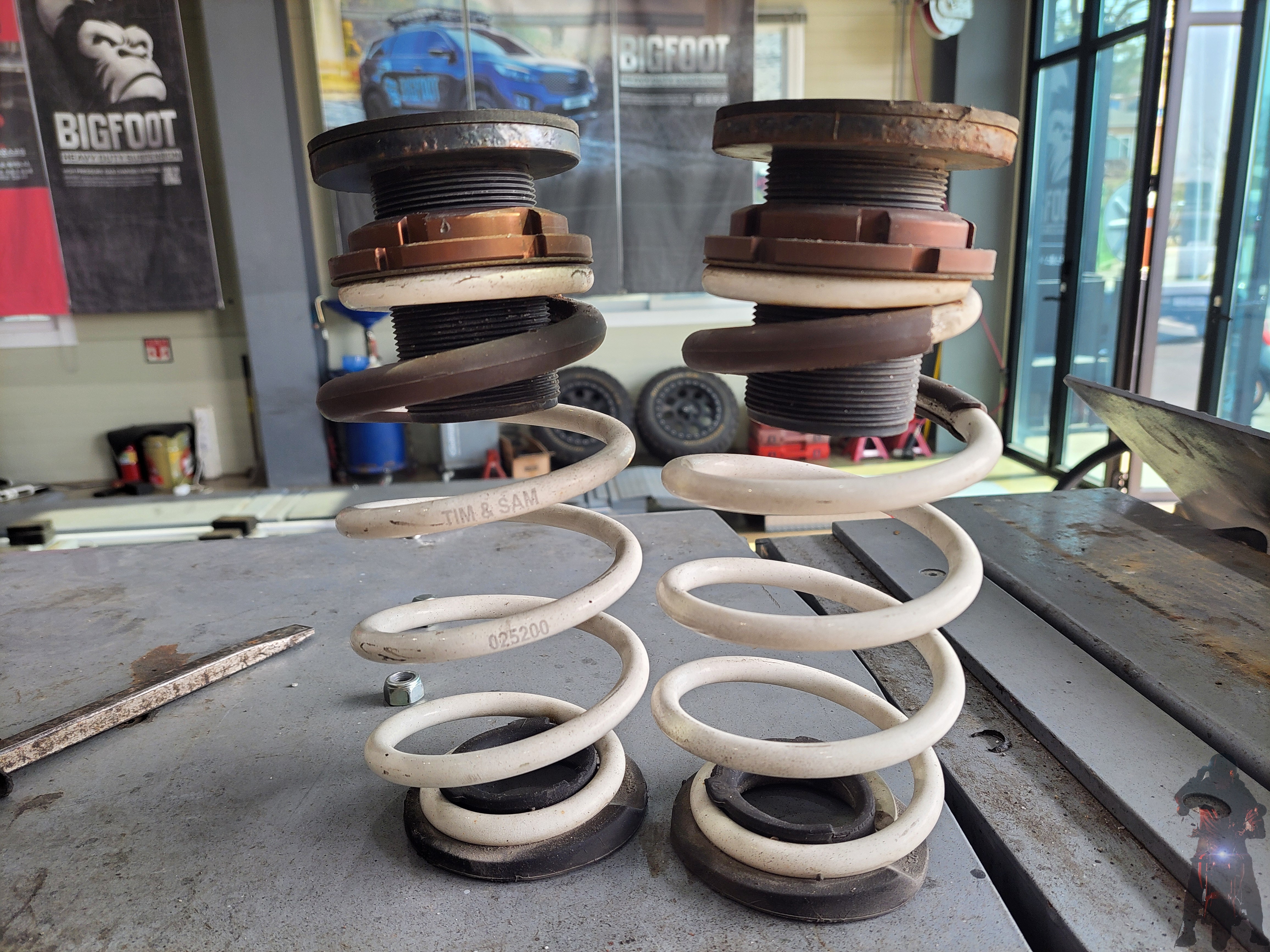 스톰다운스프링을 조립하여 차량에 장착하였습니다