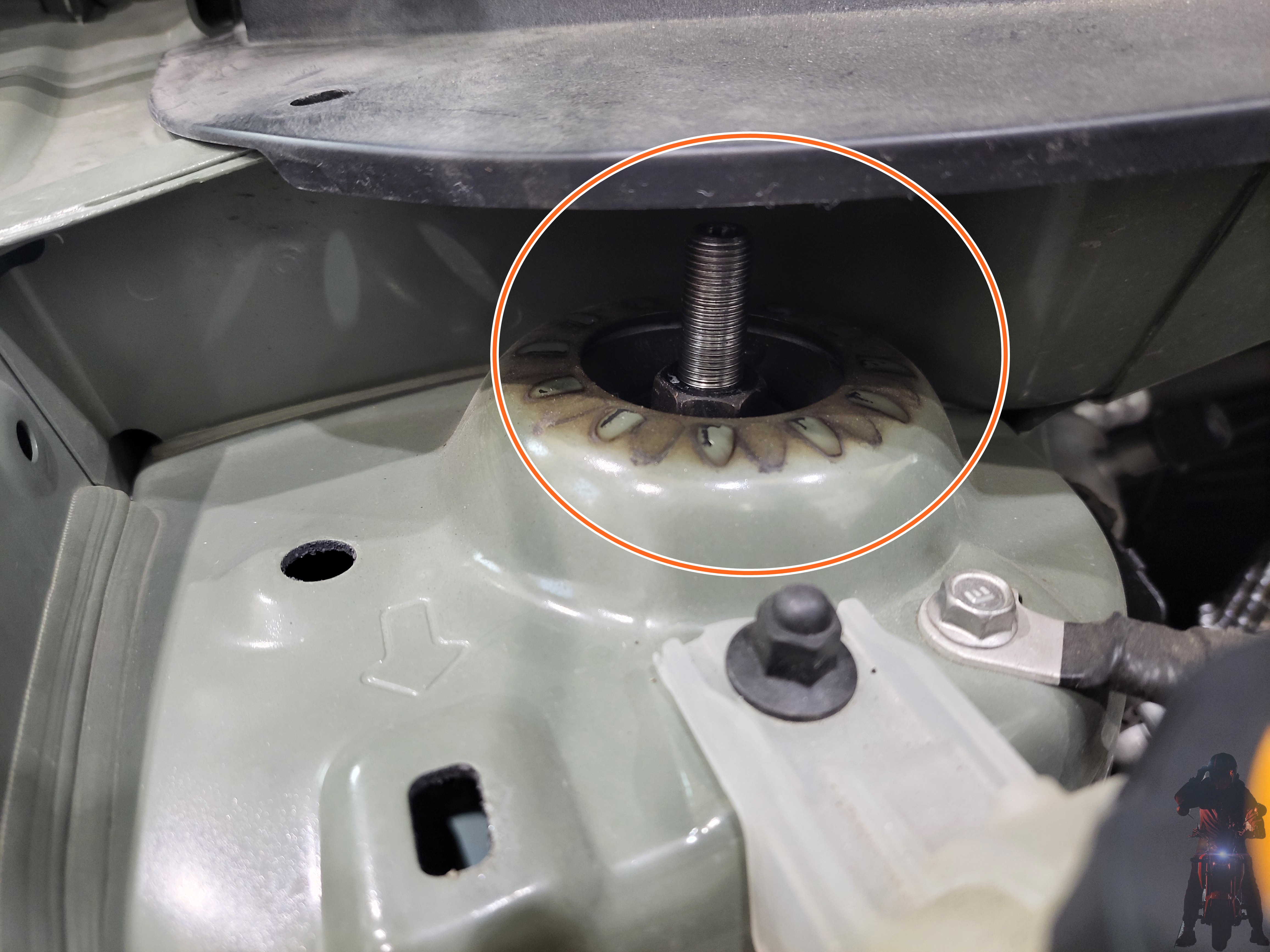 위 커버를 탈거하면 쇼바의 고정 너트가 보입니다