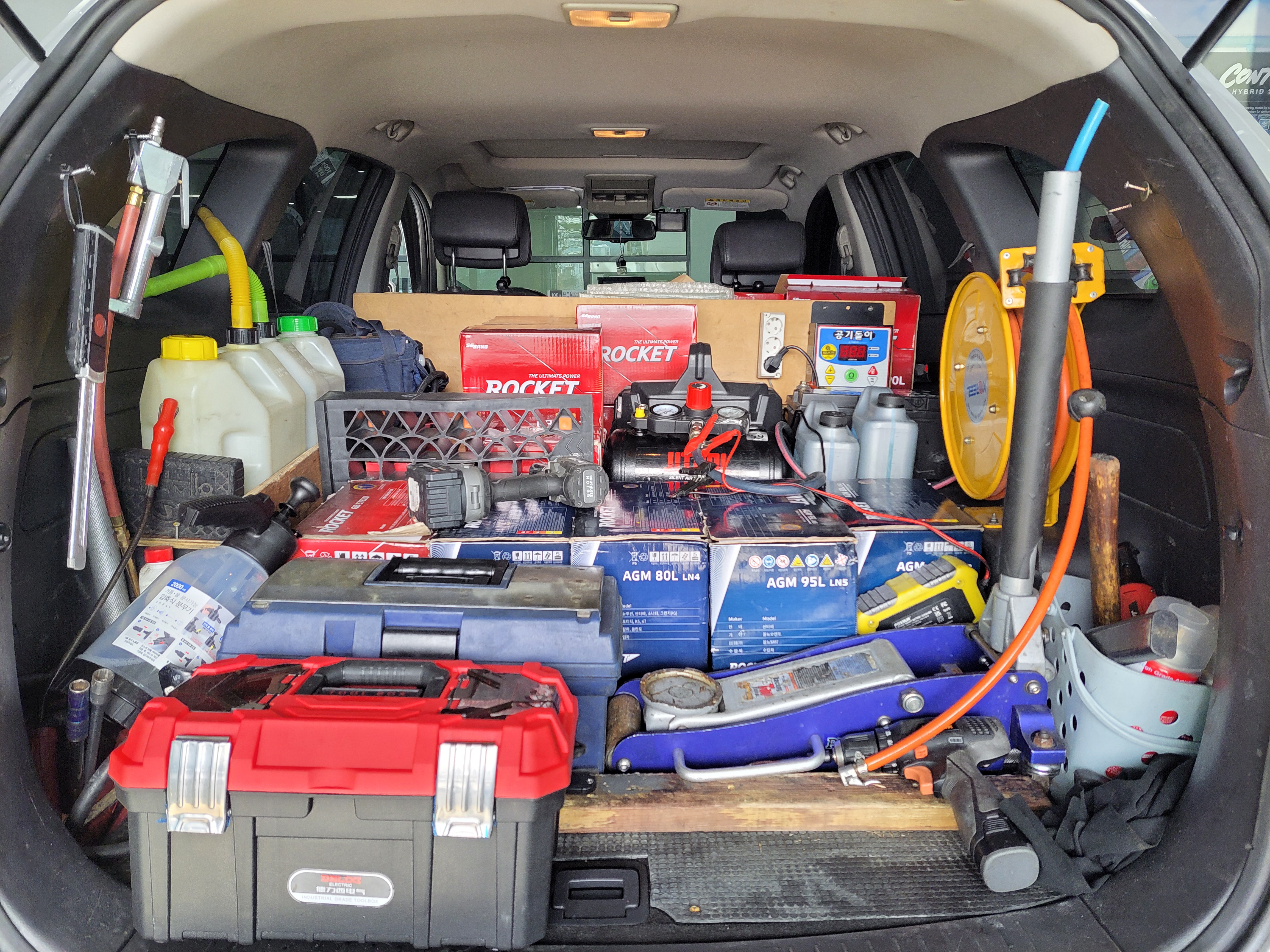이렇게 각종공구와 차량용 배터리가 적재되어 있습니다