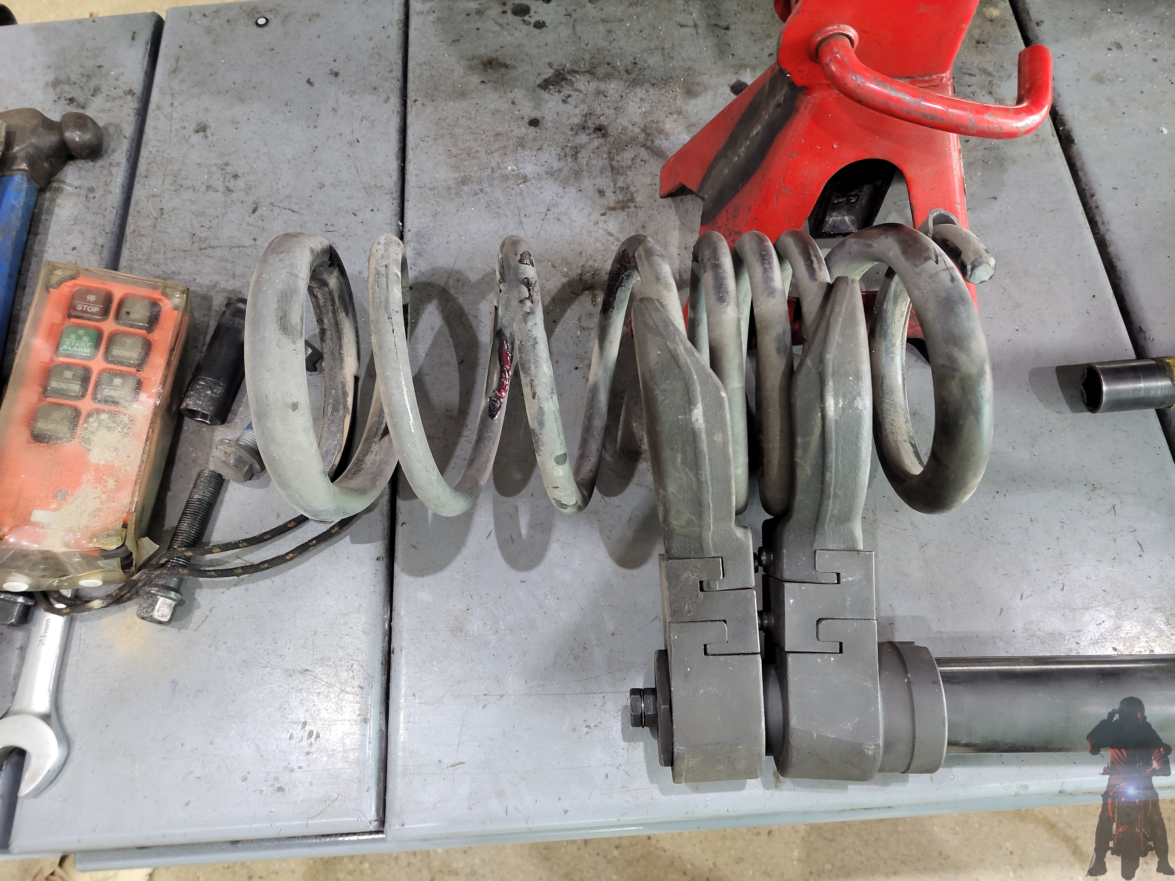 위 사진처럼 스프링 압축기를 이용하여 스프링을 압축하여