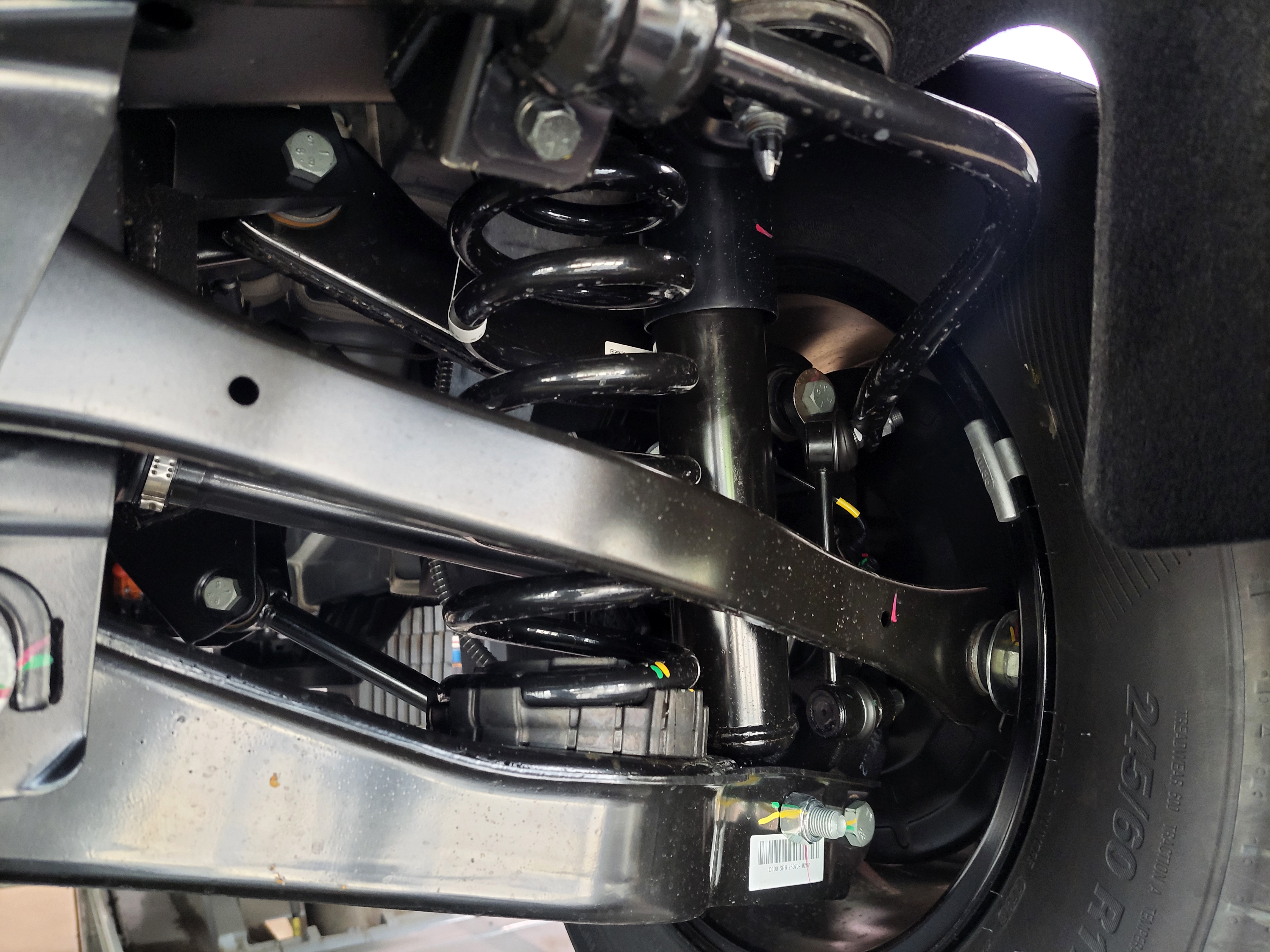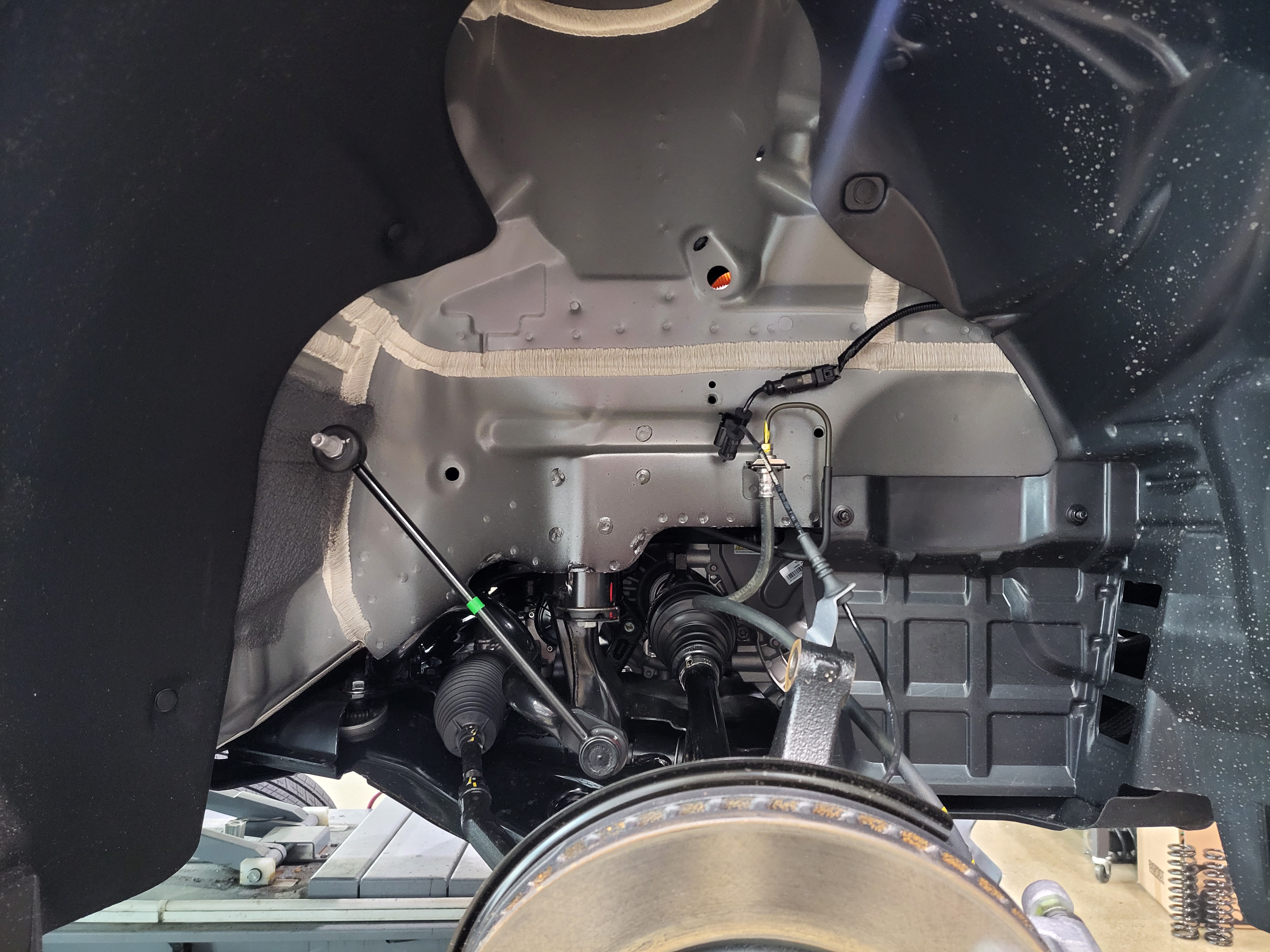 KGM 무쏘EV 4WD 차량의 프런트 순정쇼바스프링을 탈거하였습니다