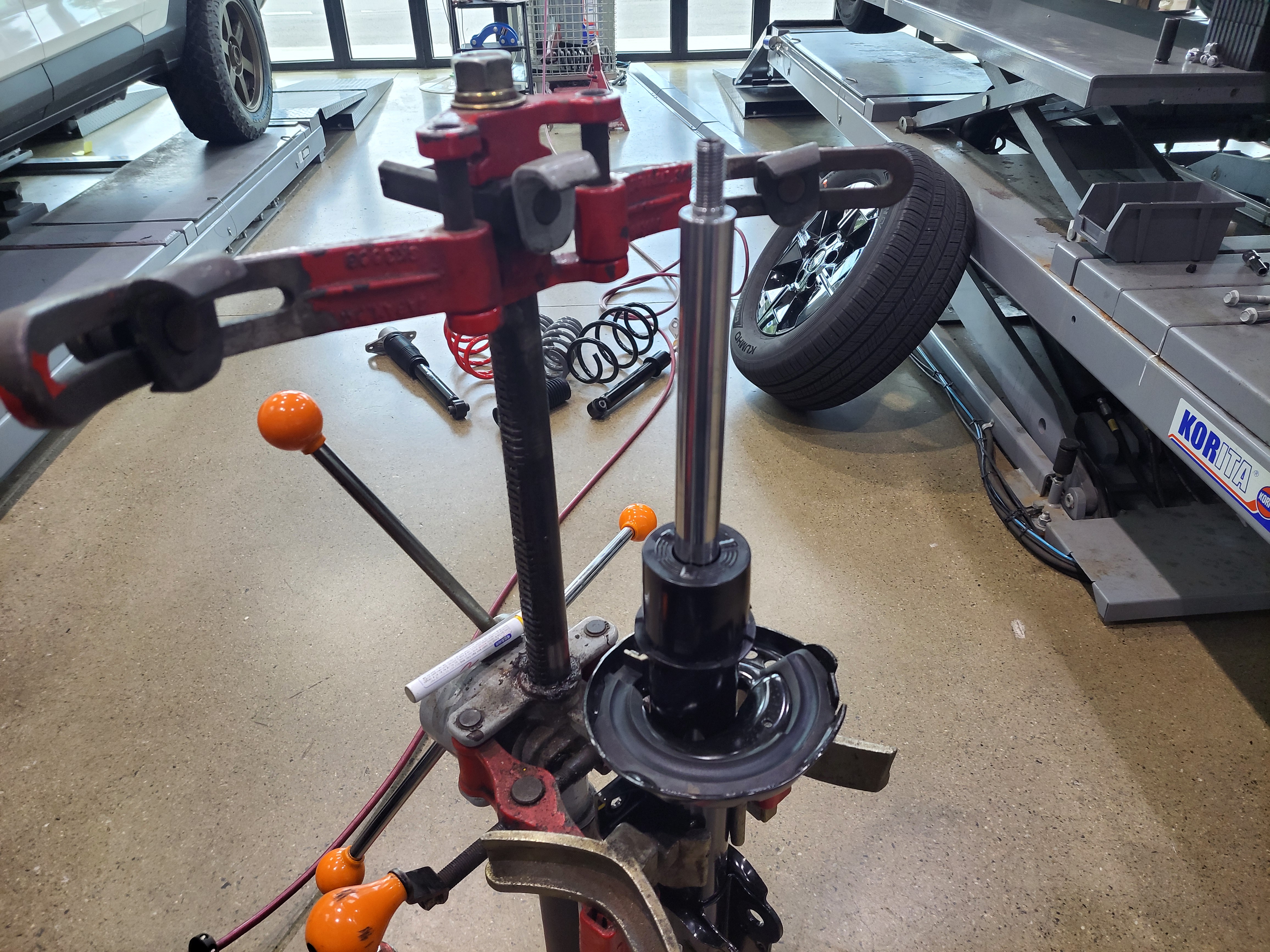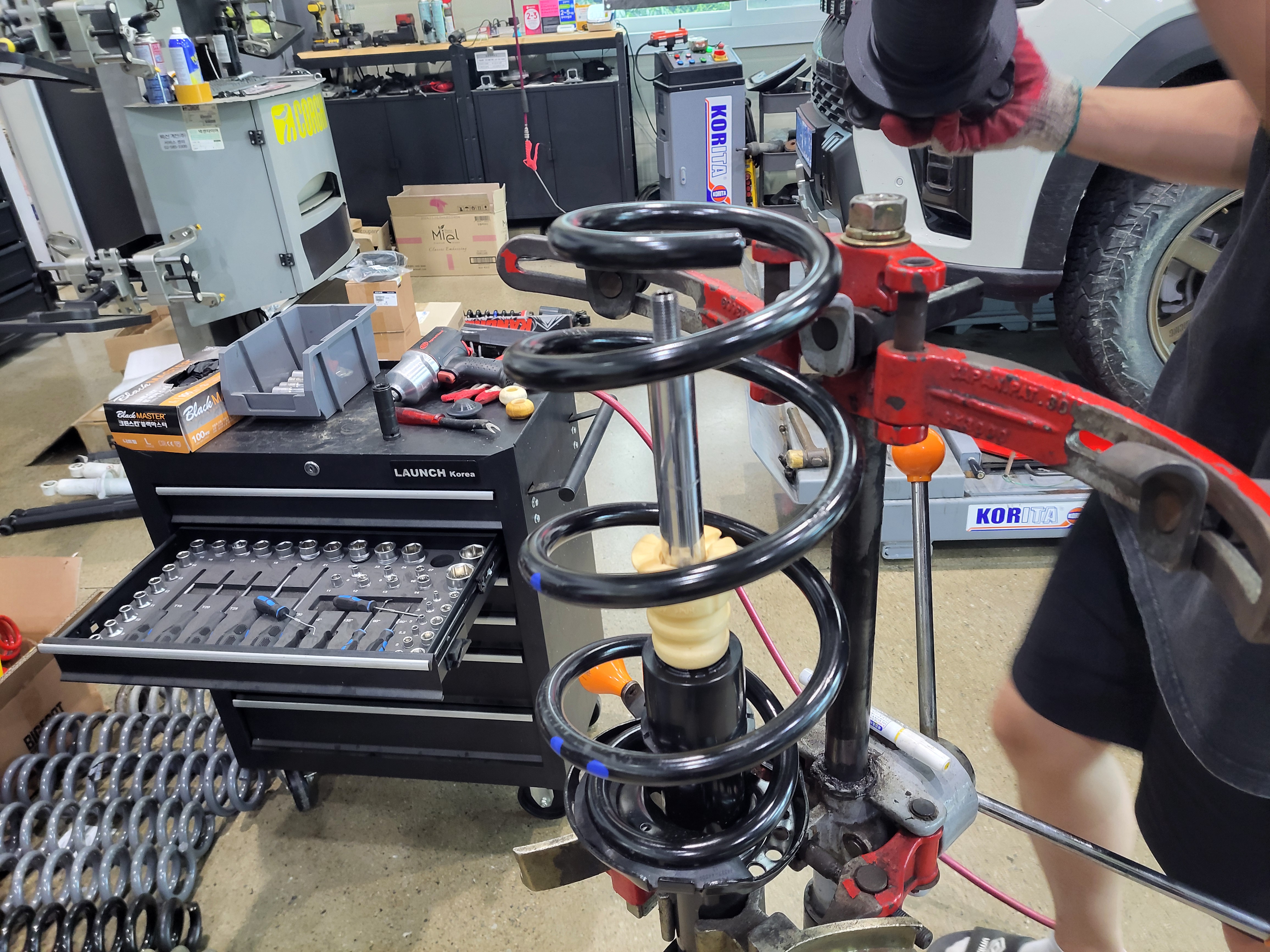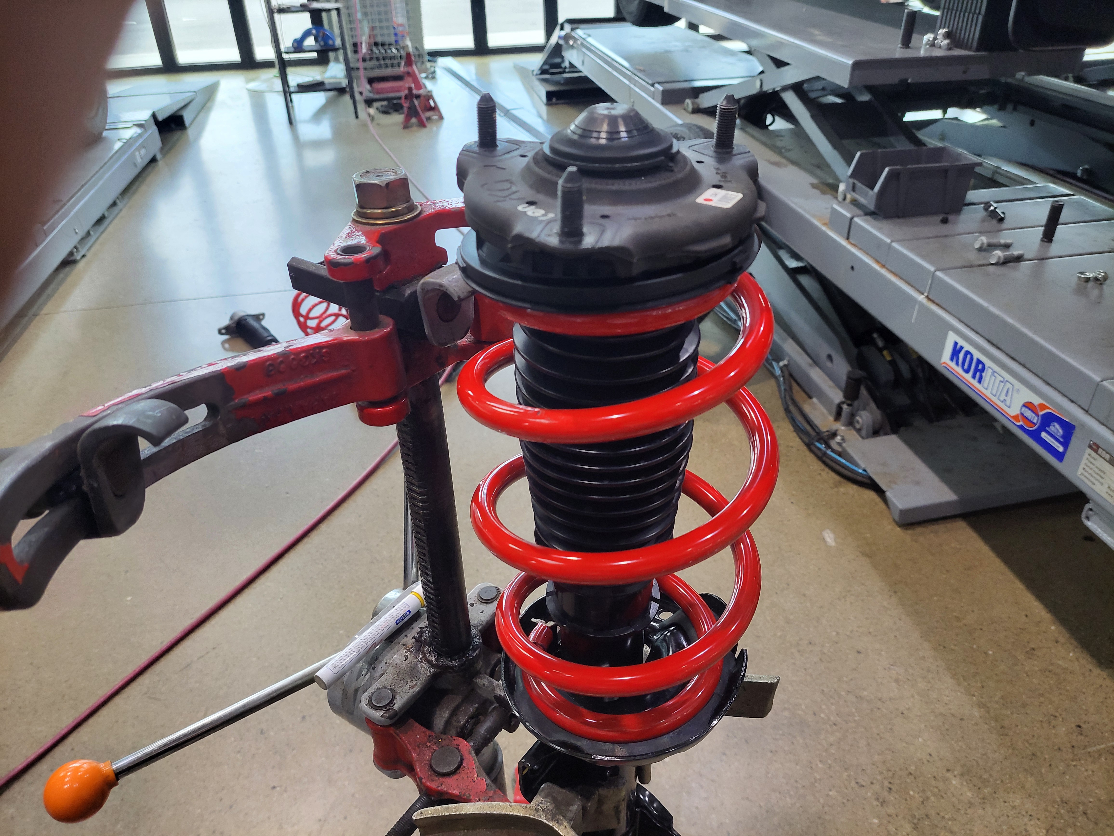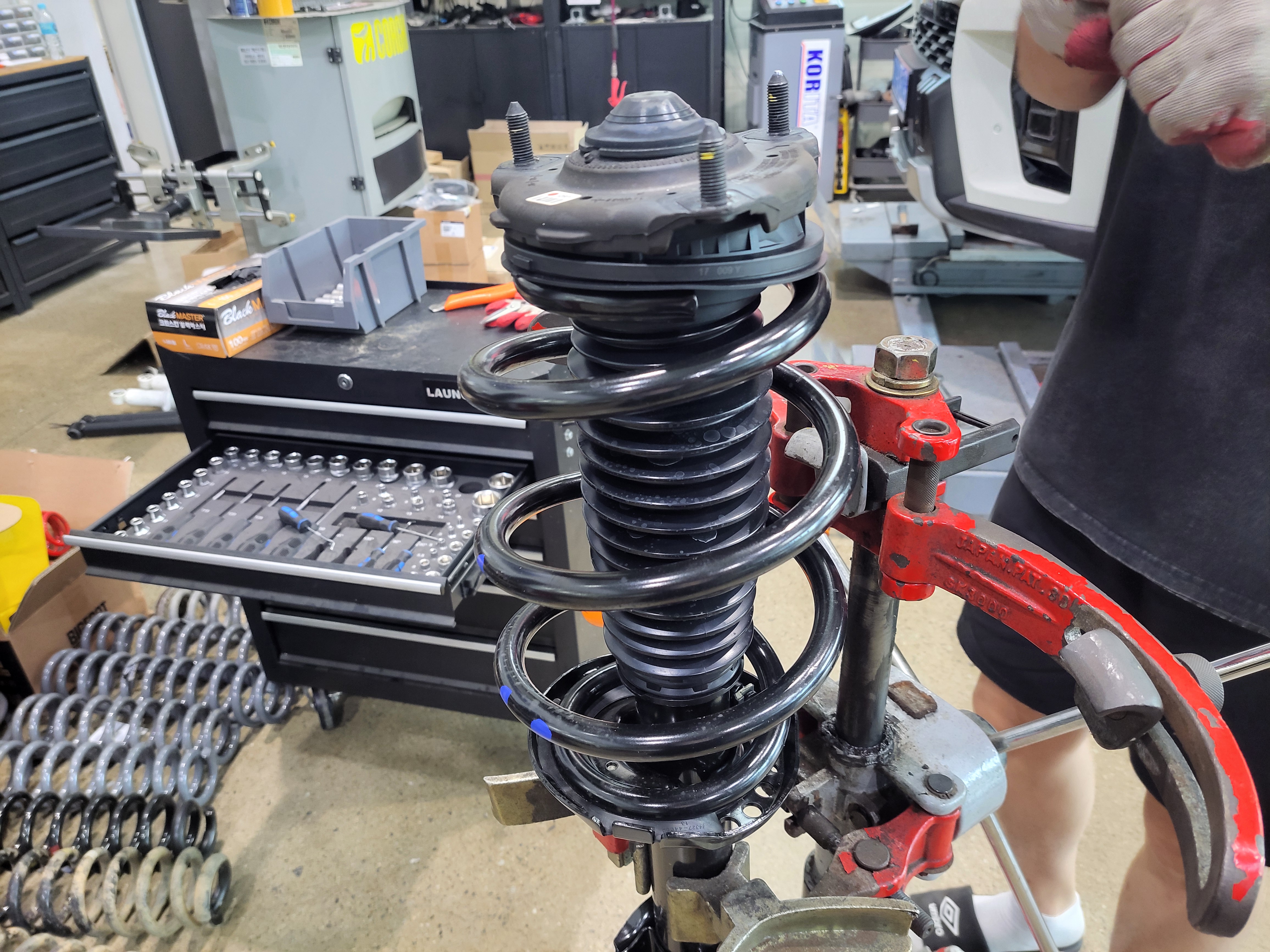 프런트 순정스프링을 압축하고 있습니다