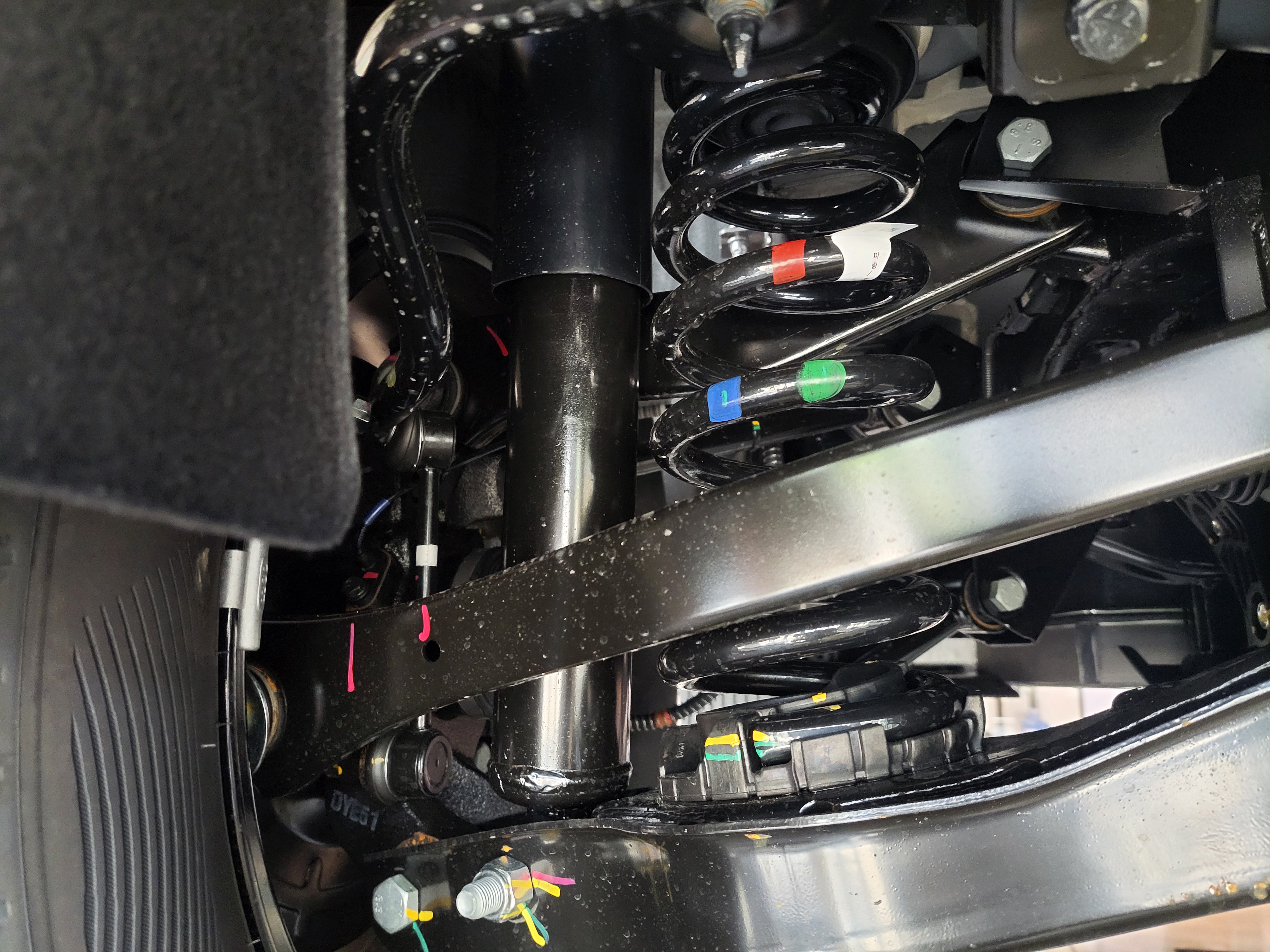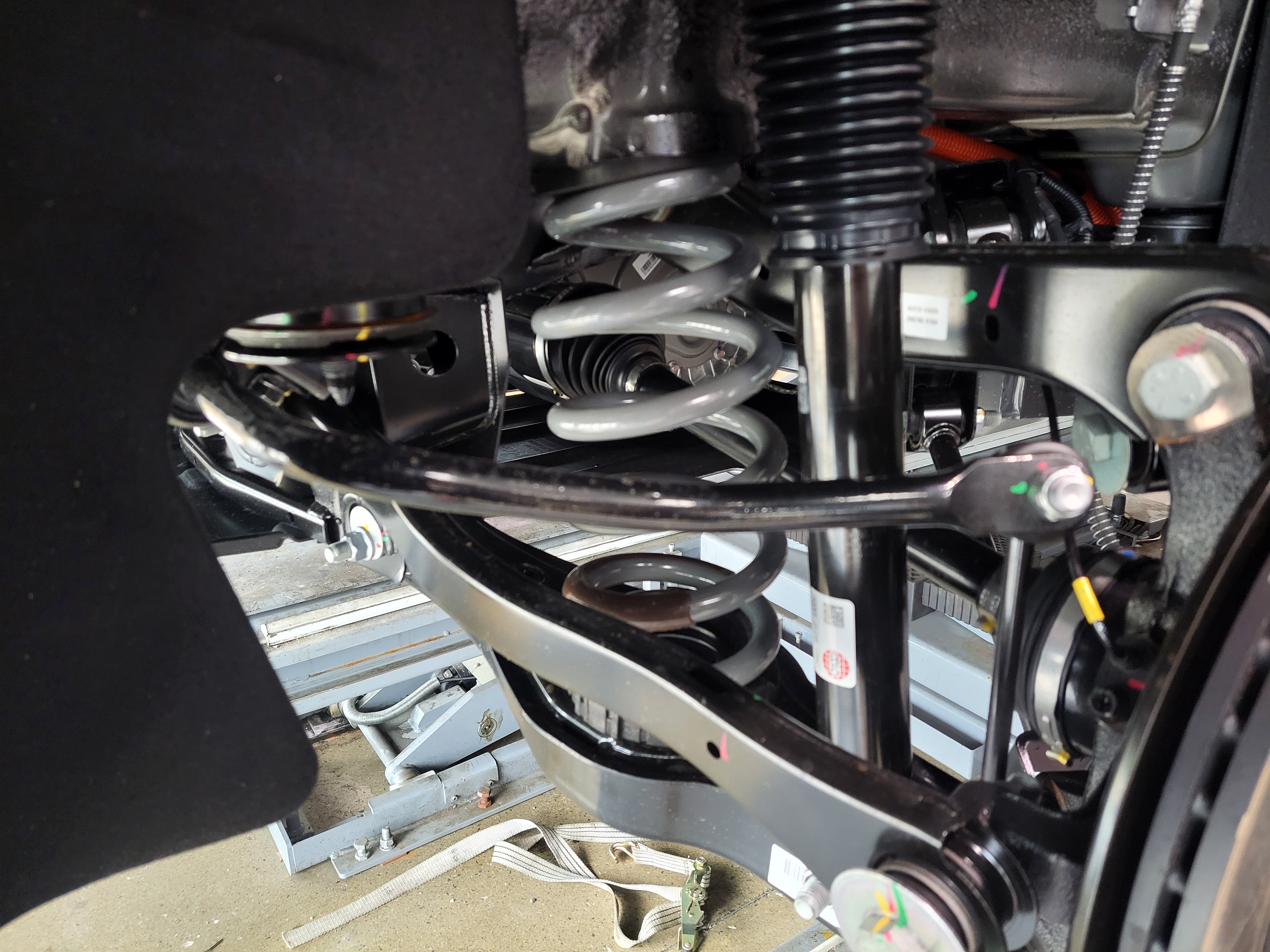 KGM 무쏘 EV 4WD 차량의 리어 쇼바 스프링을 모두 탈거하였습니다