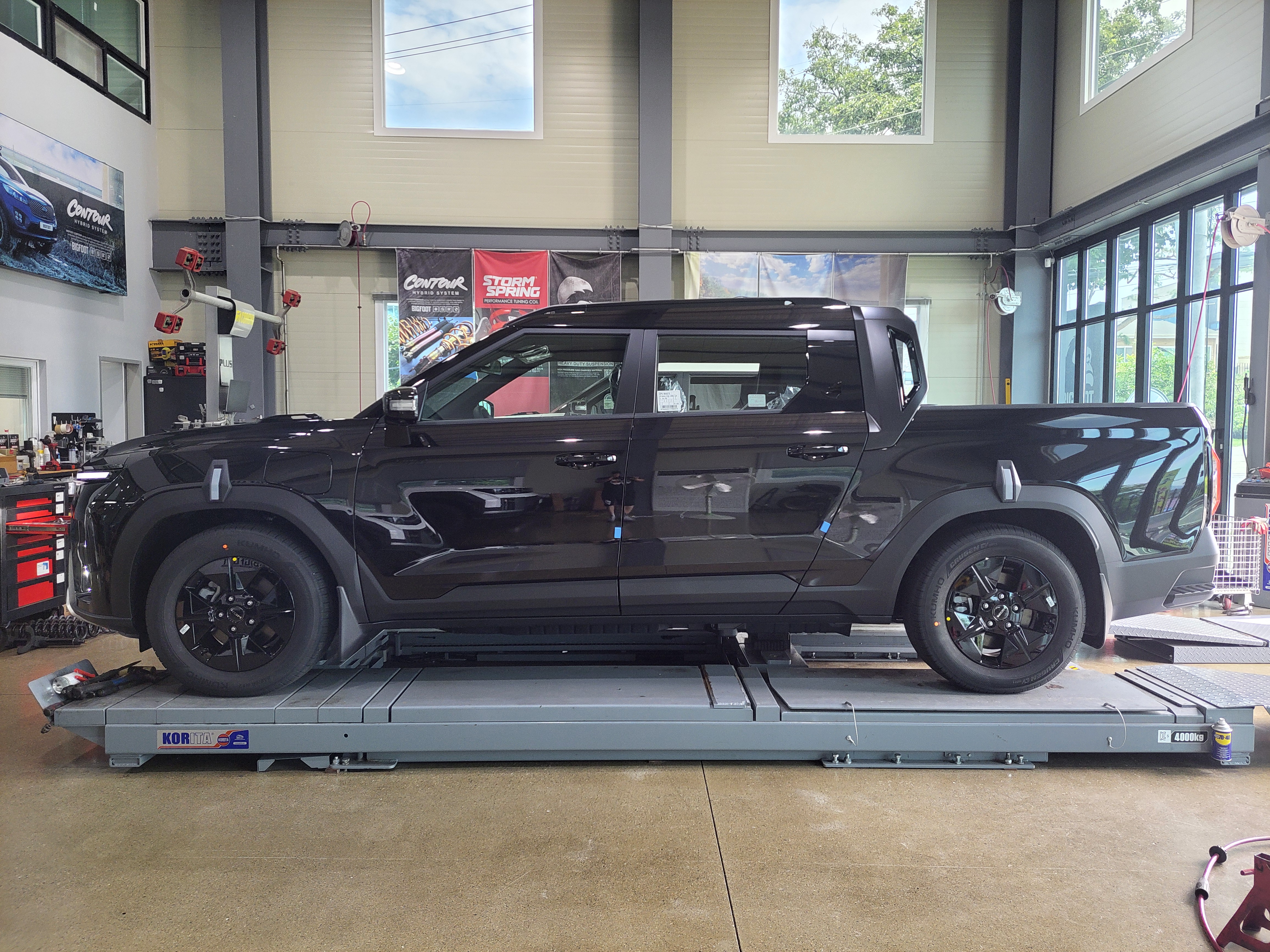 이 차주분께서는 무쏘EV 차량의 차고를 낮춰서 온로드 튜닝스타일로