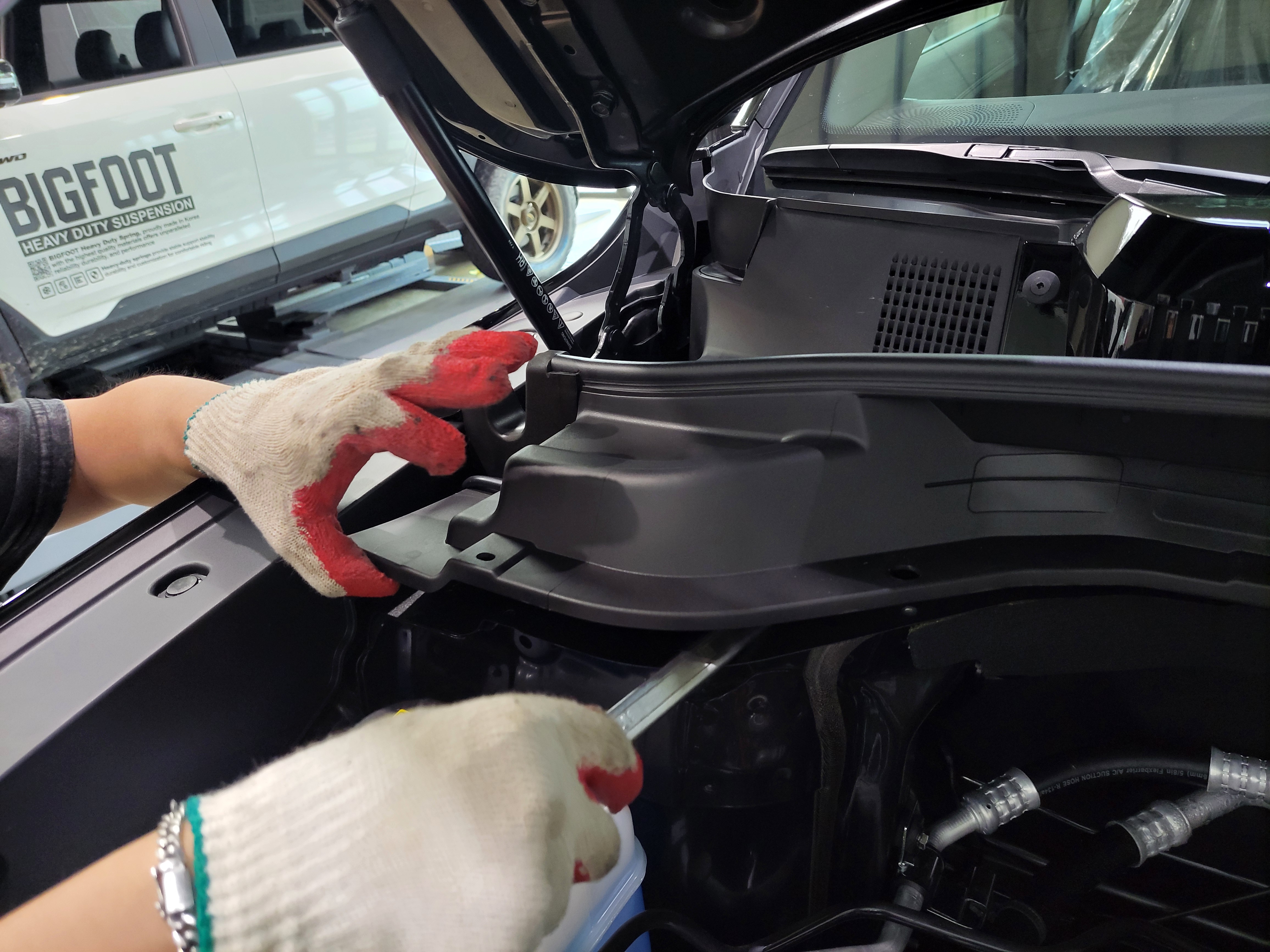 KGM 무쏘EV 4WD 차량의 쇼바마운트를 탈거하기 위해