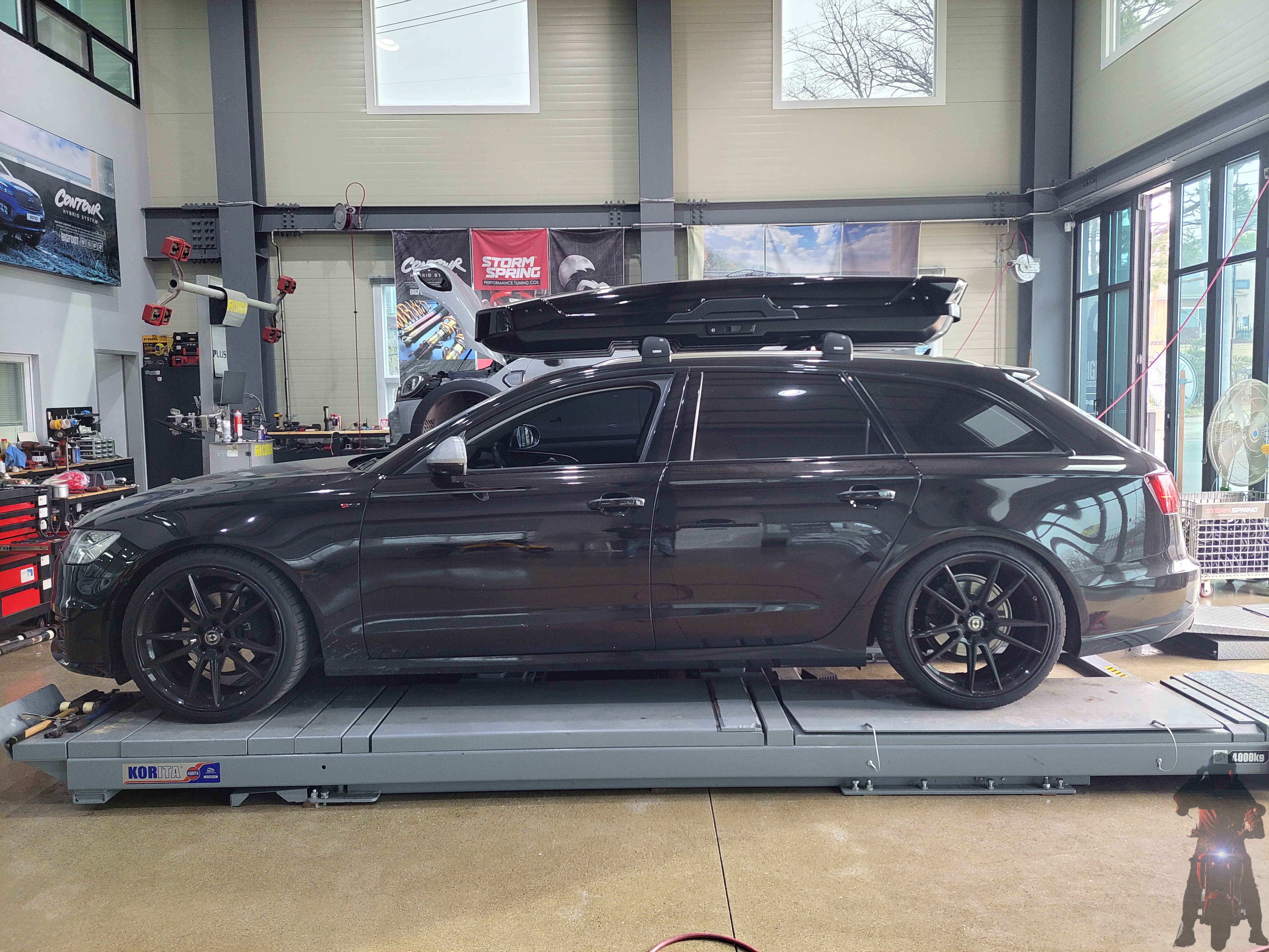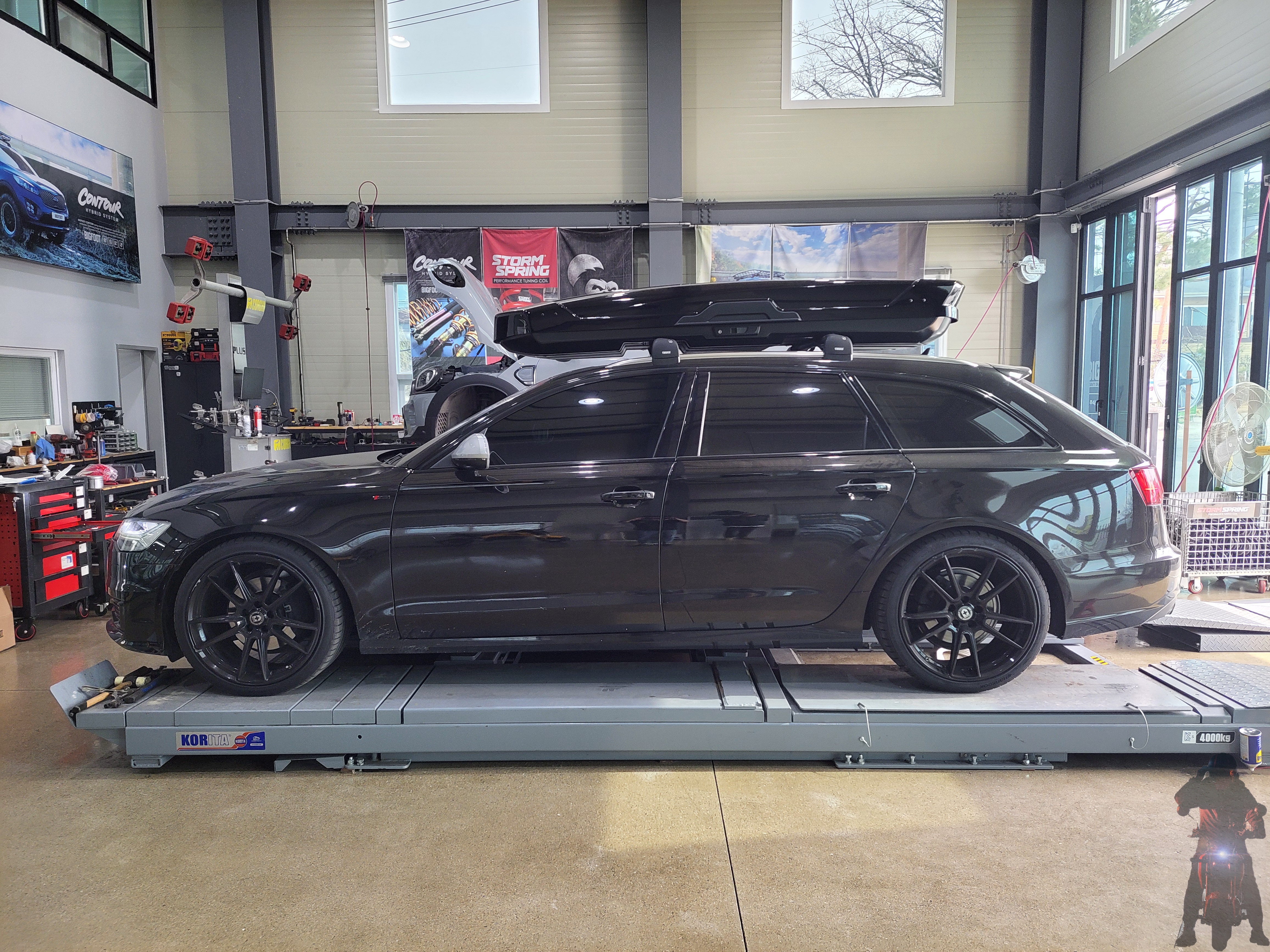 아우디 A6 아반트 웨건 차량의 차고 세팅을 마무리하고