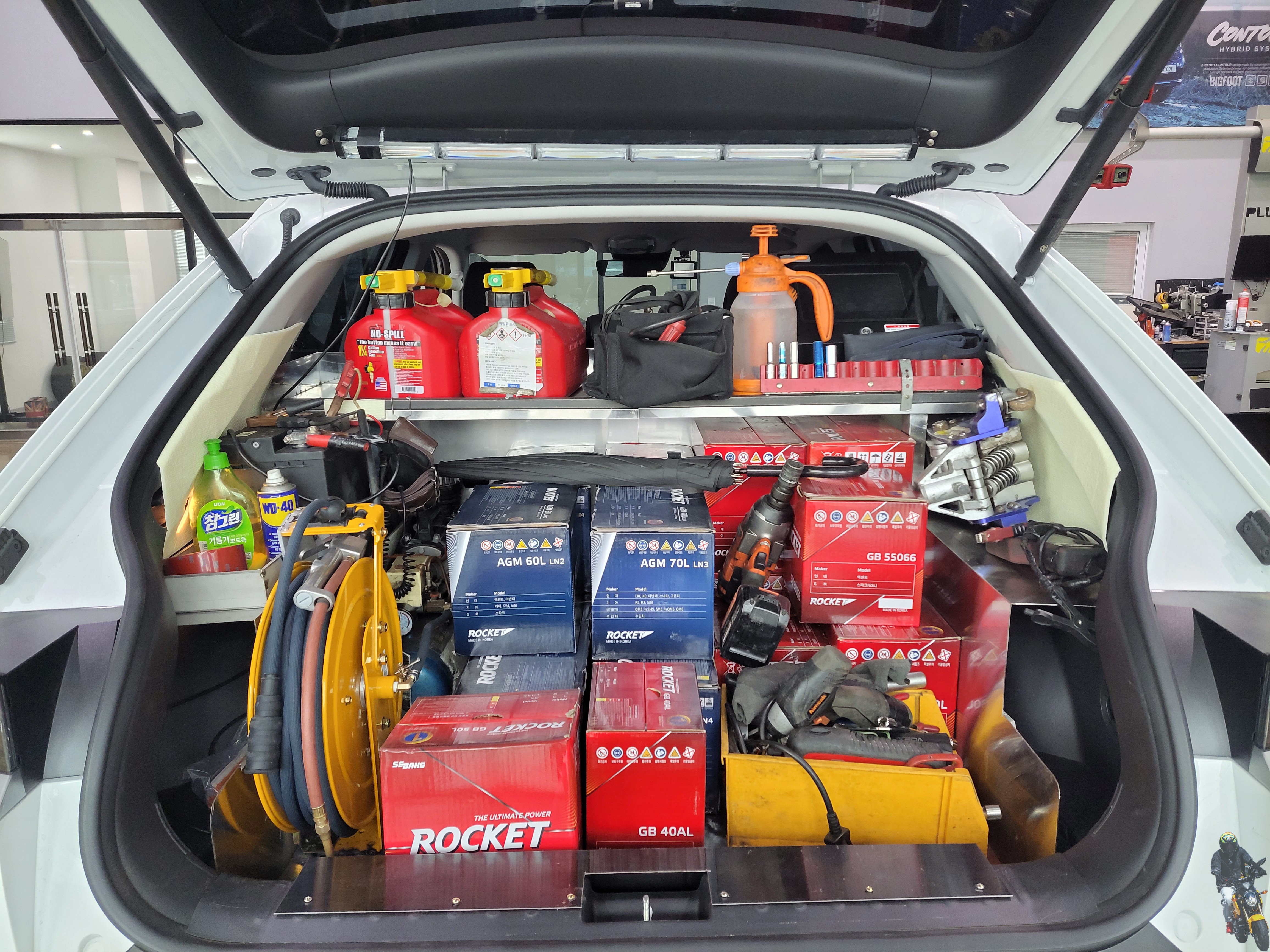 보험 긴급출동 업무상 각종 장비와 무거운 차량용 배터리를