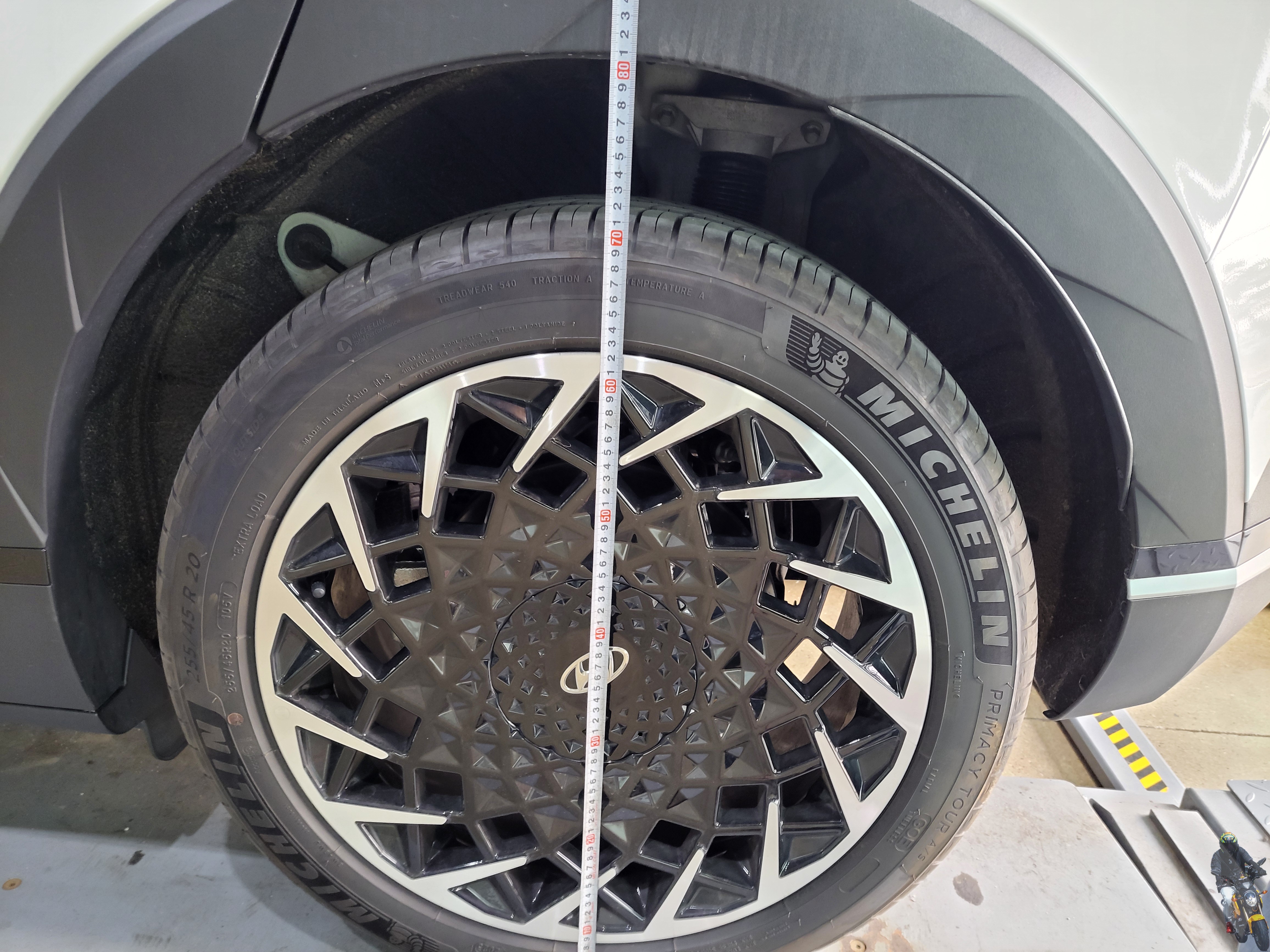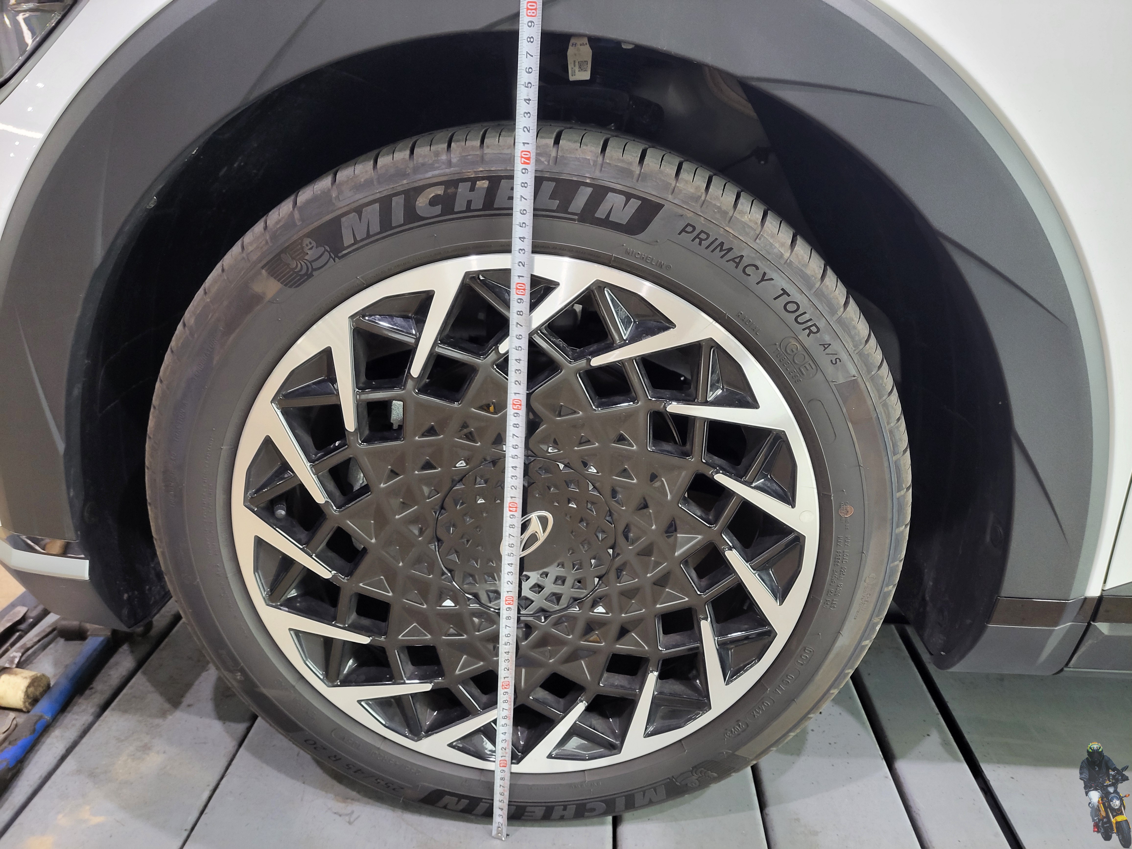 타이어와 휀다의 간격을 보면 프런트 차고와 비교했을때 리어 차고가