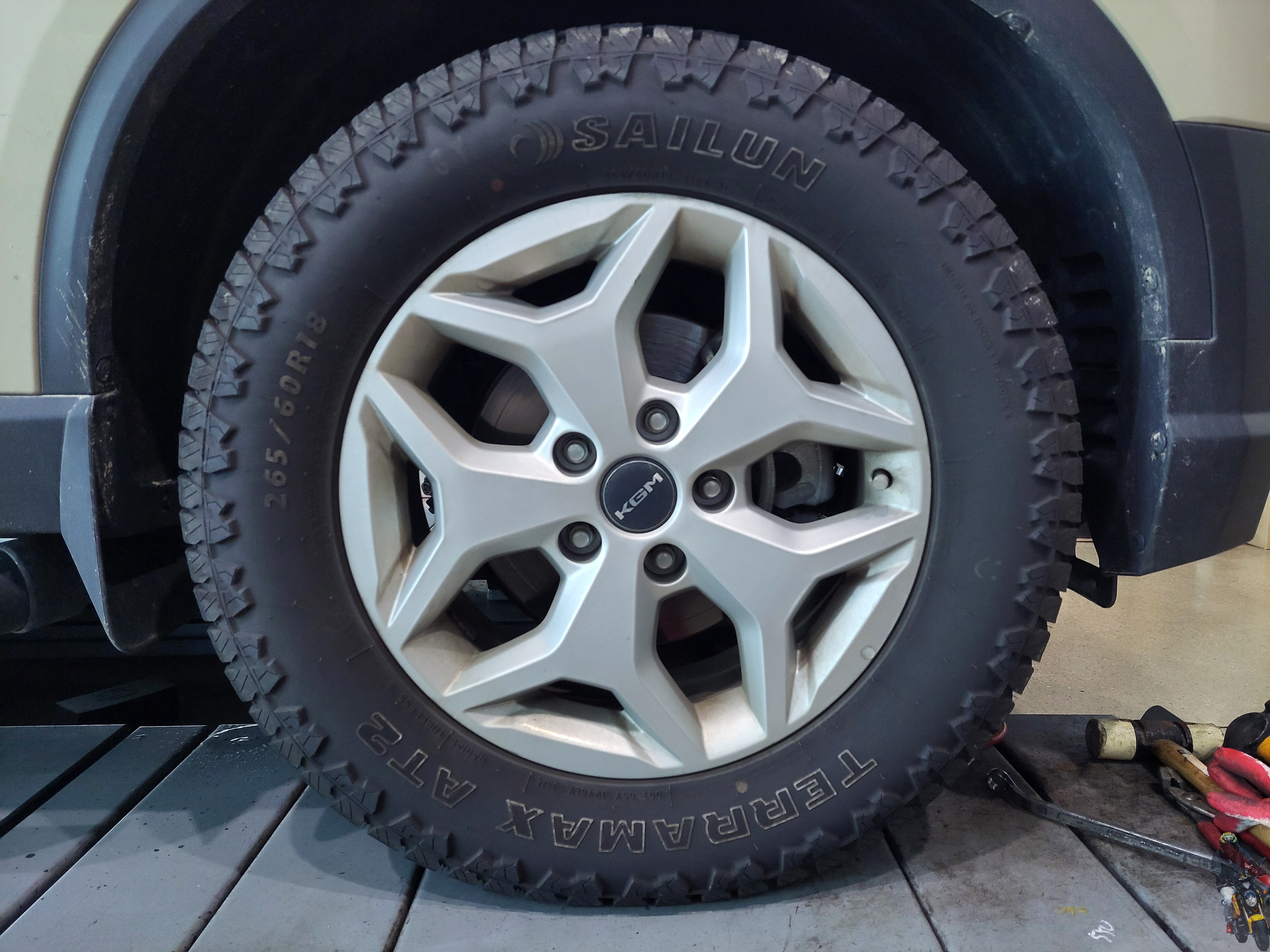 쌍용 KGM 렉스턴 스포츠 차량의 타이어는 사일룬 테라맥스