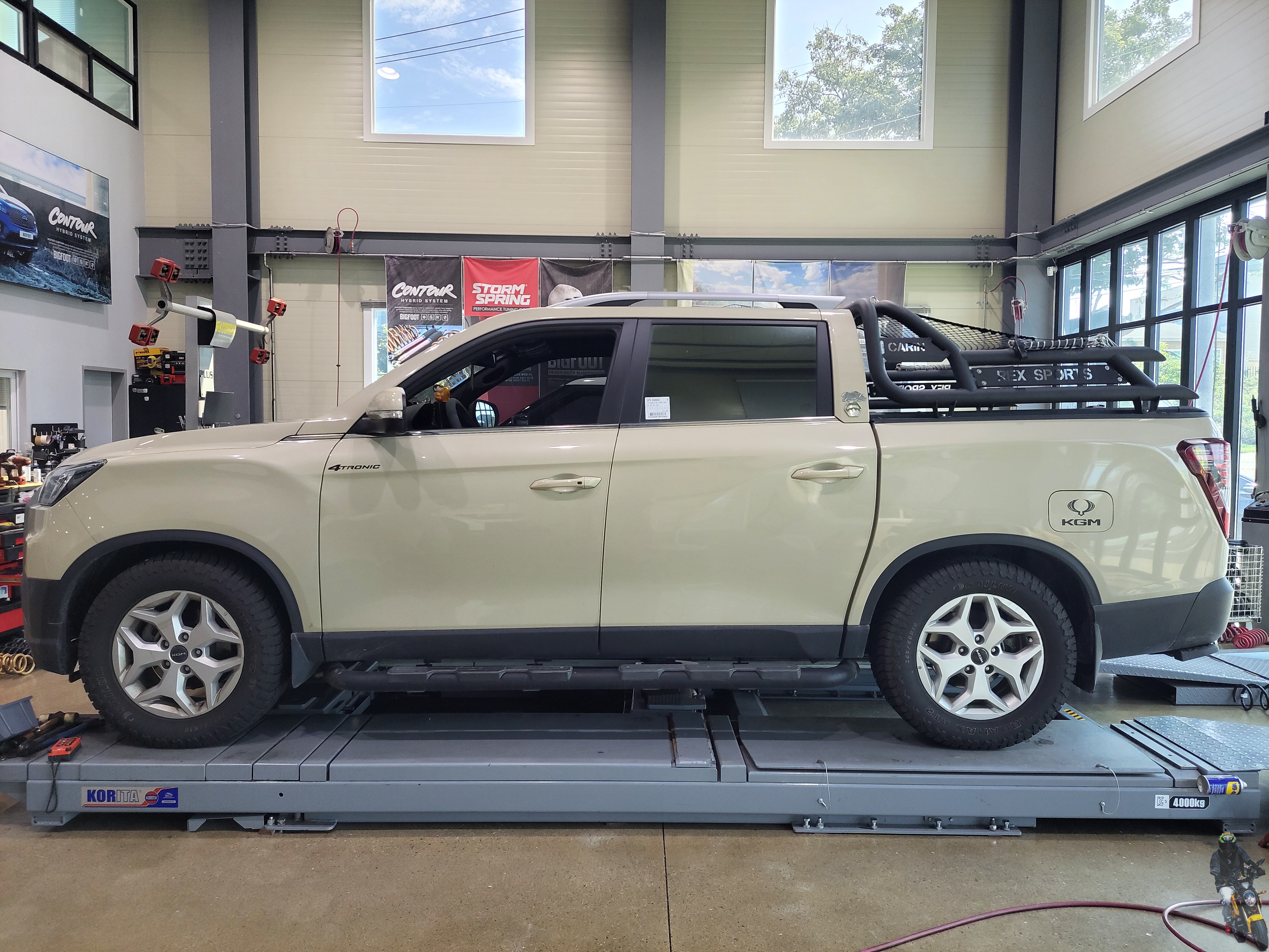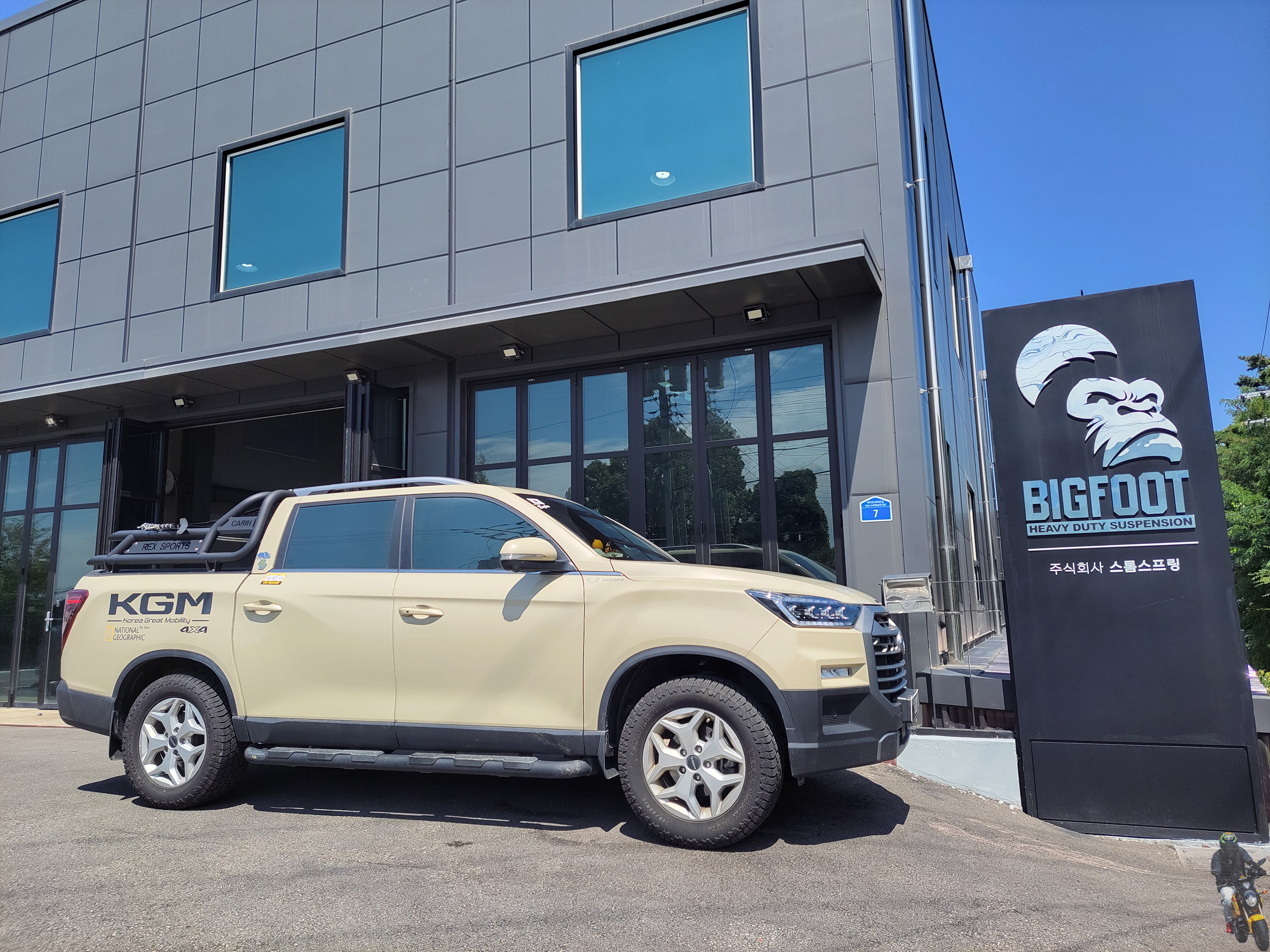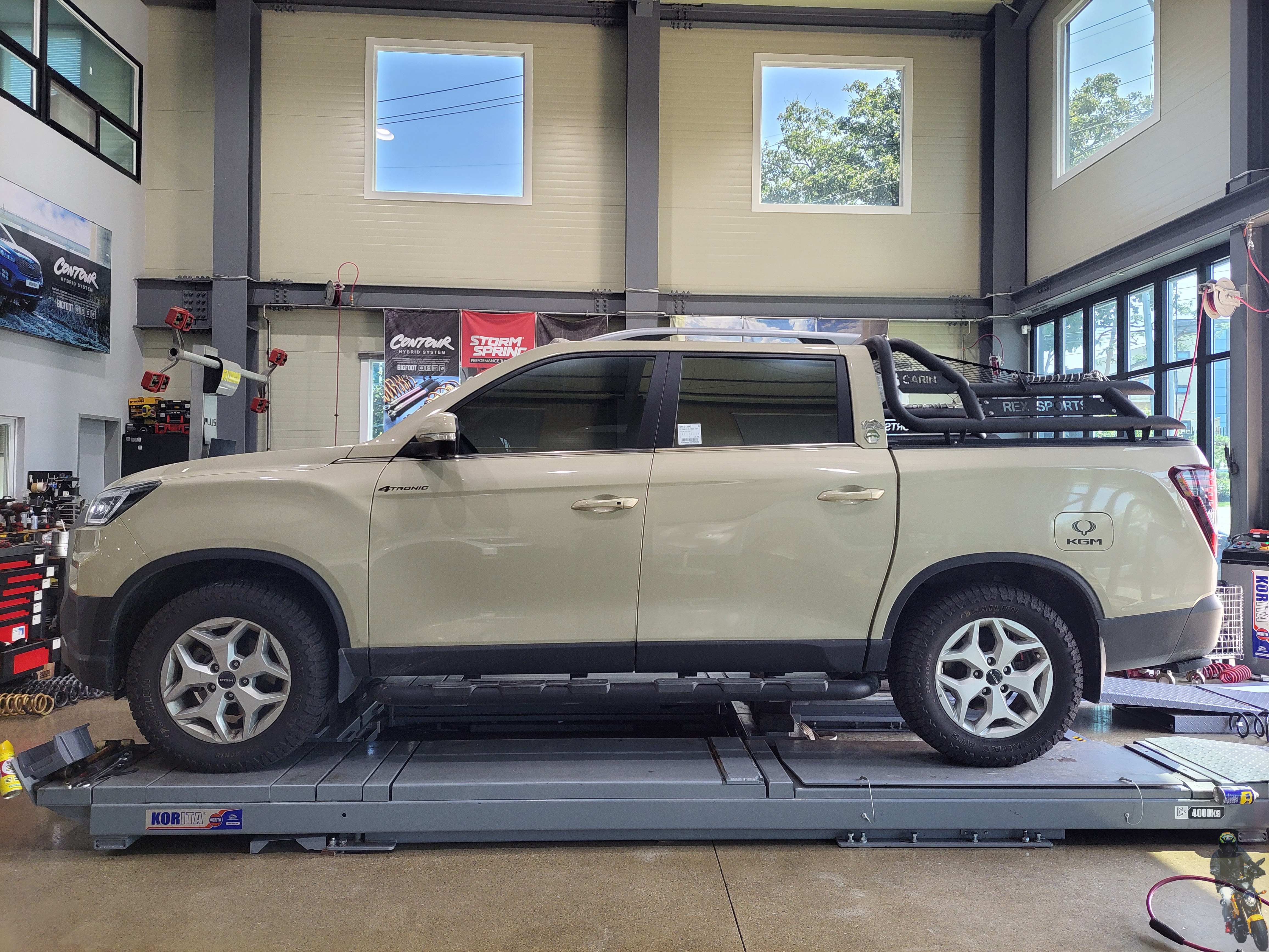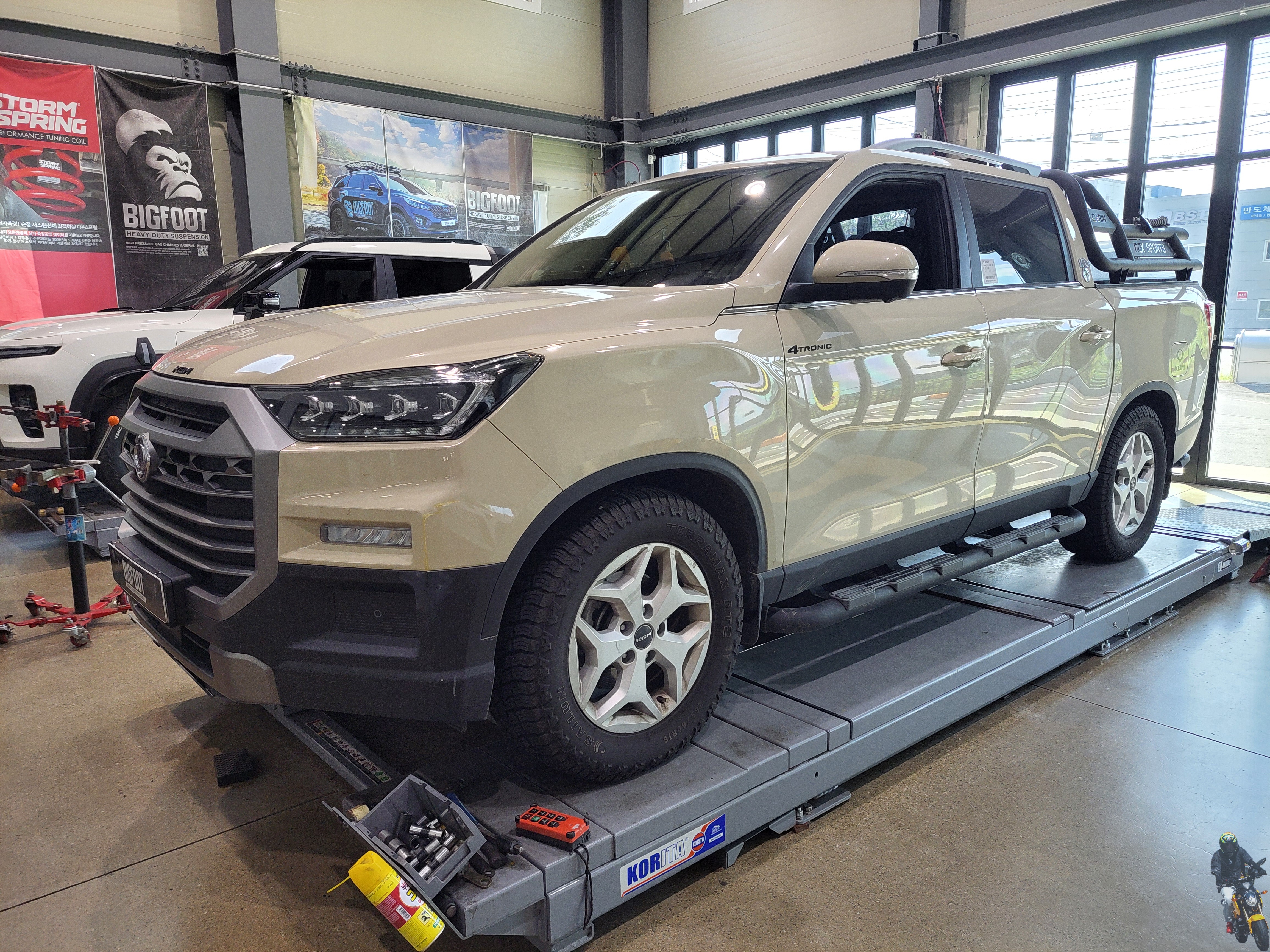 쌍용 KGM 렉스턴 스포츠 차량의 빅풋스프링 장착이 모두 마무리되었습니다
